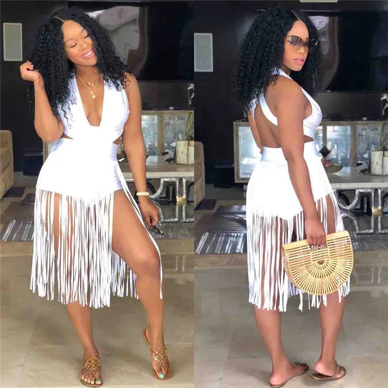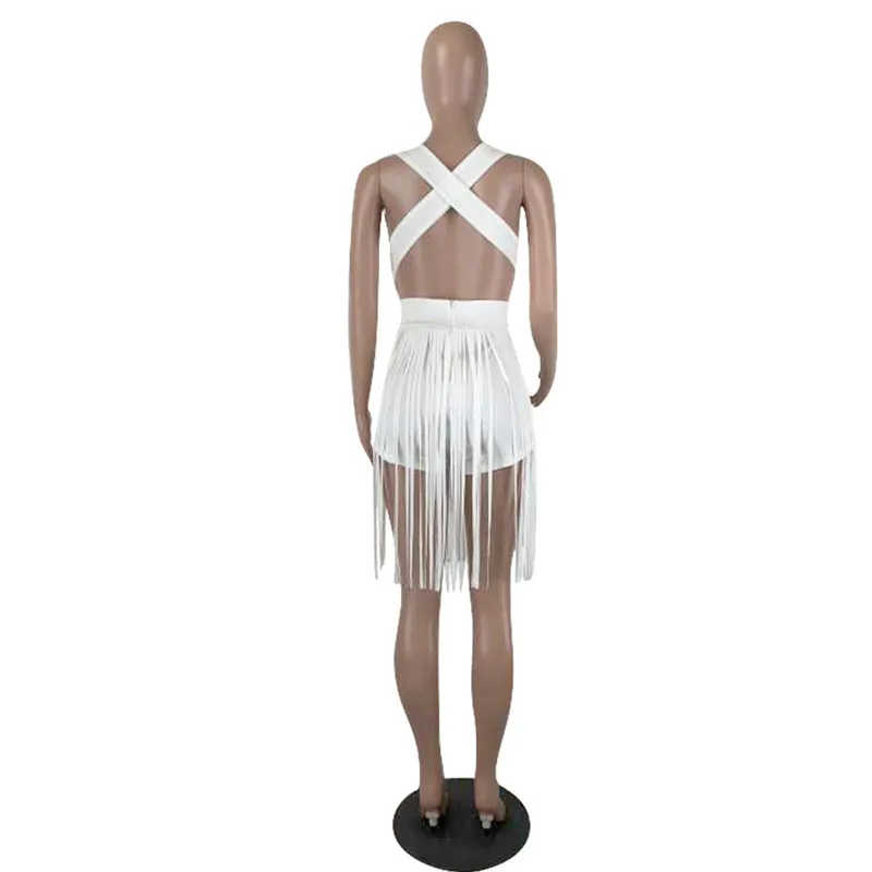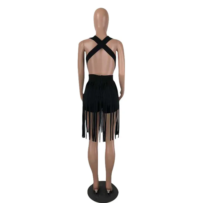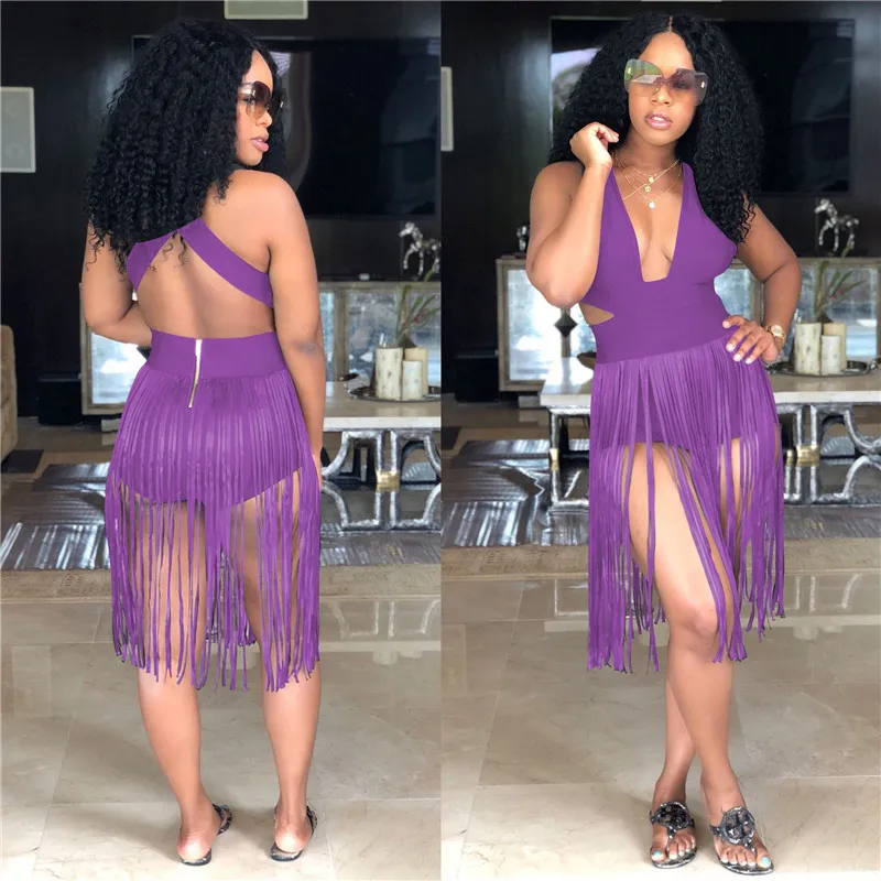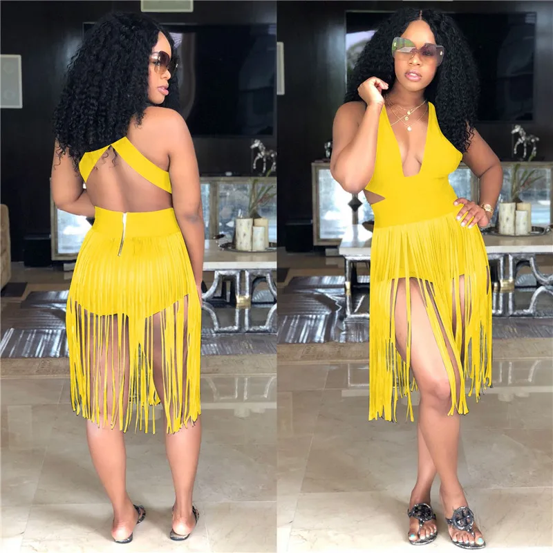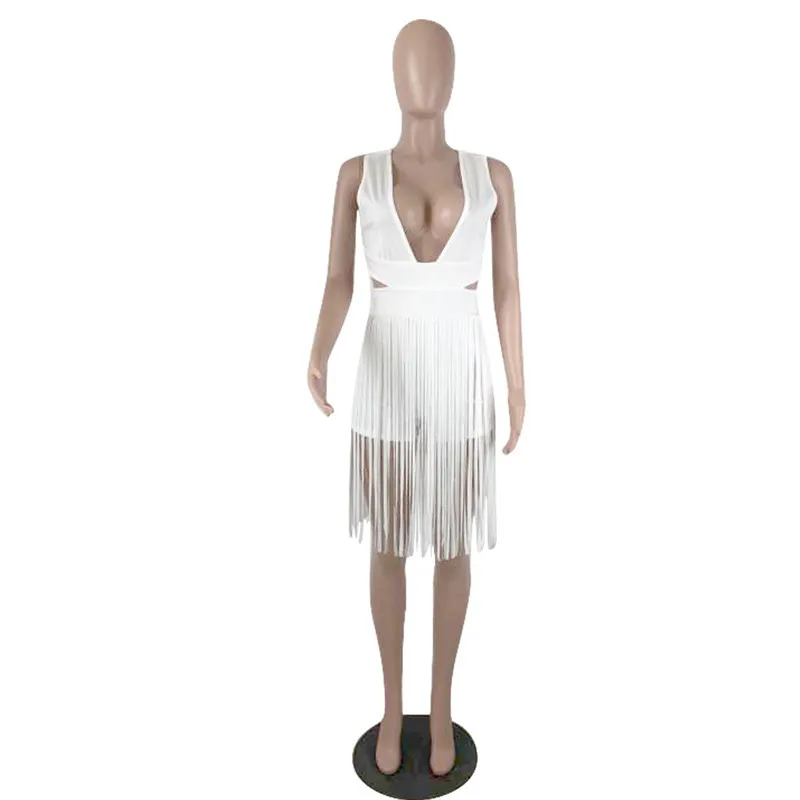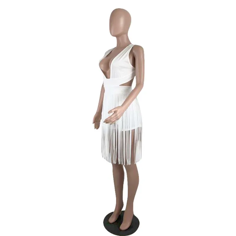 Backless Tassel Sexy Bodycon Bandage Dress Women Deep V-neck Sleeveless Party Night Club Summer Beach Dress XXXL