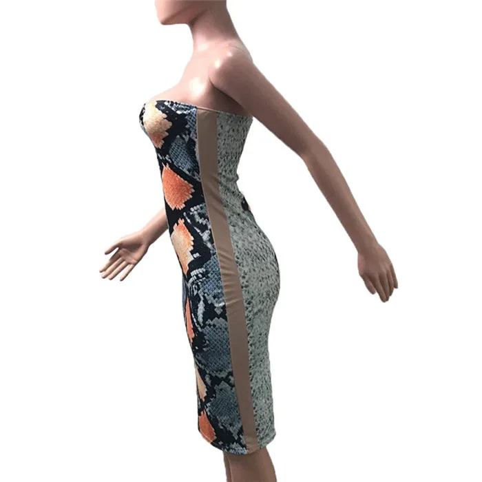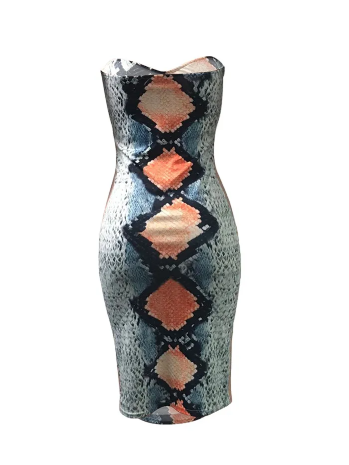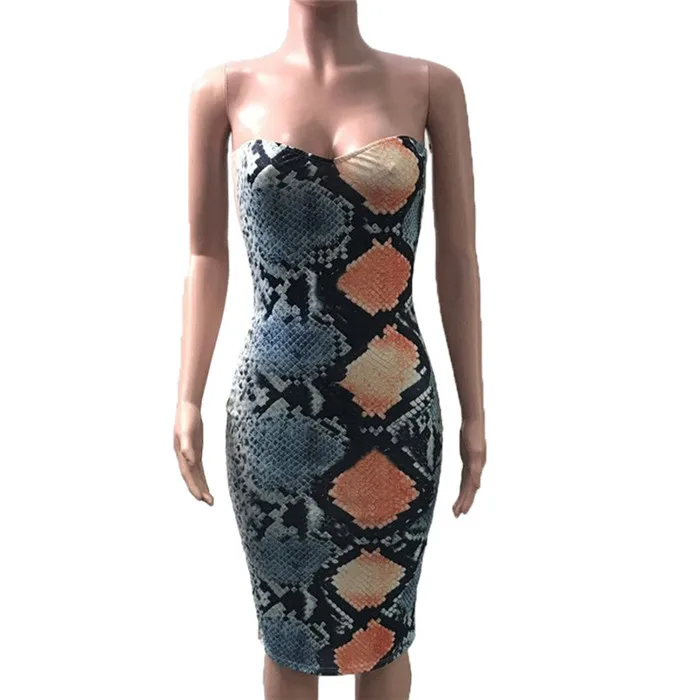 Animal Snake Print Sexy Bodycon Summer Dress Women Sleeveless Strapless Bandage Party Dress Ladies Club Dress Beach Sundresses