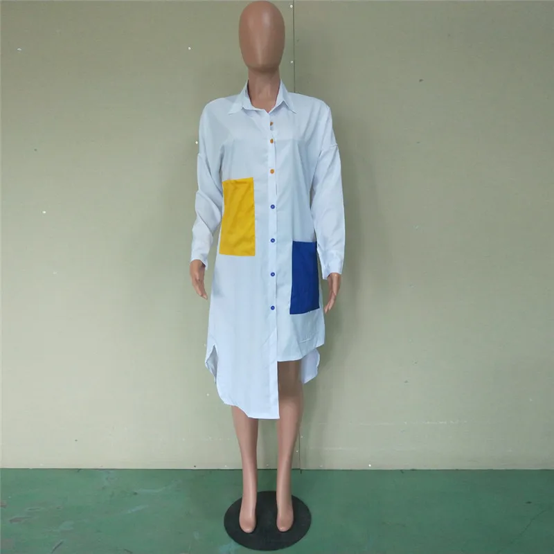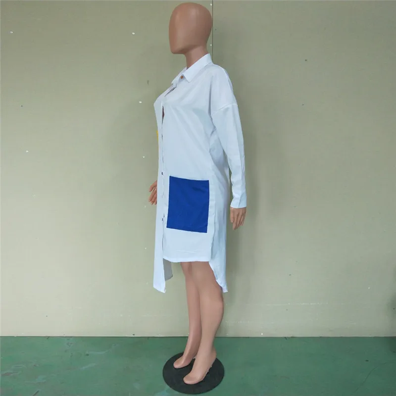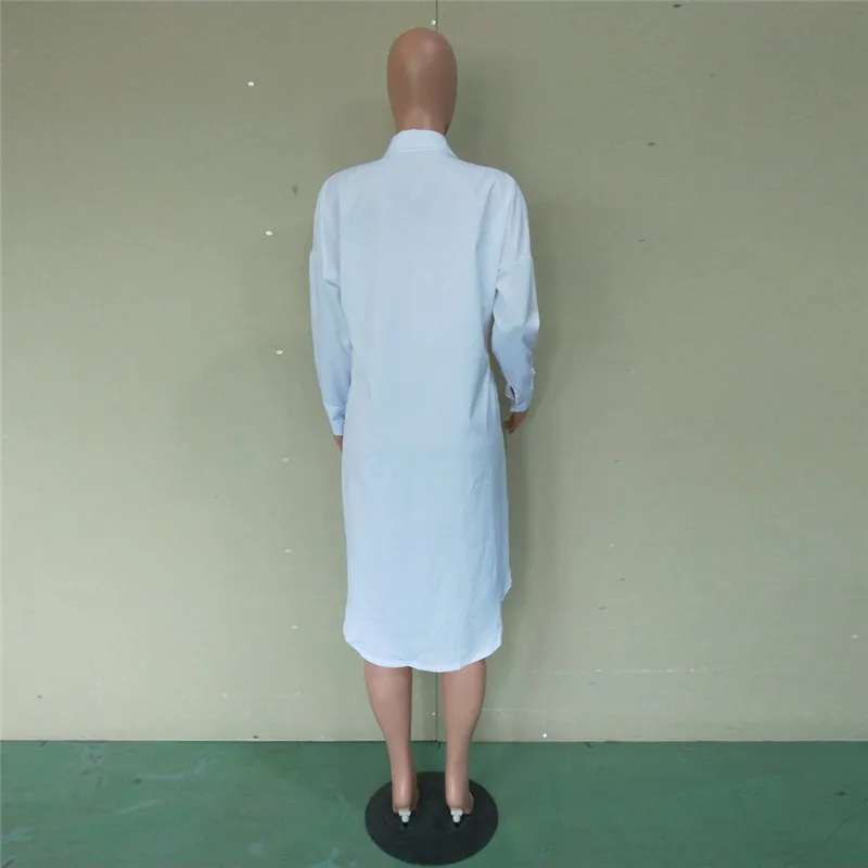 Autumn Long Sleeve White Shirt Dress Women Turn Down Collar Button Up Blouse Dress Oversized Midi Shirt Dress with Pockets