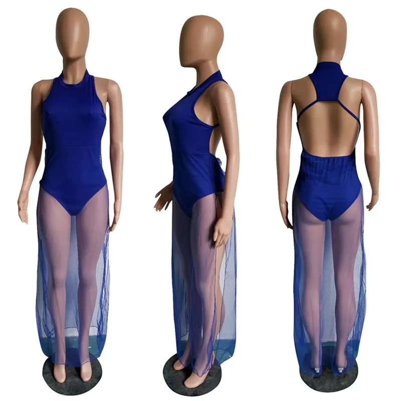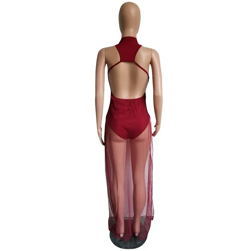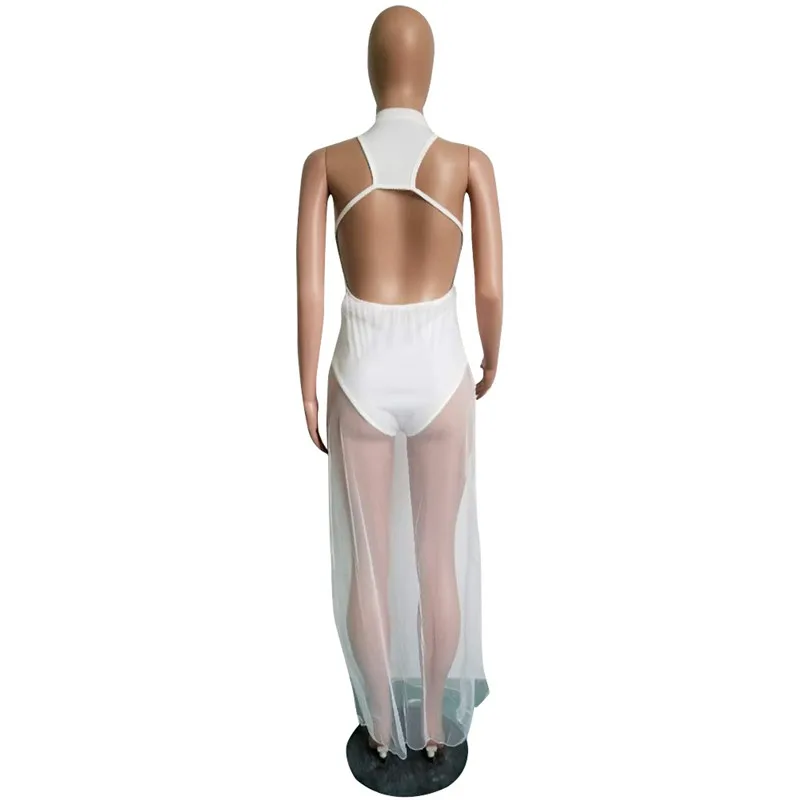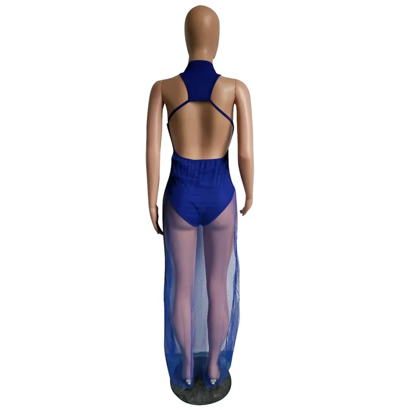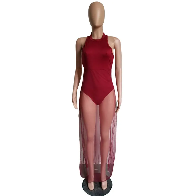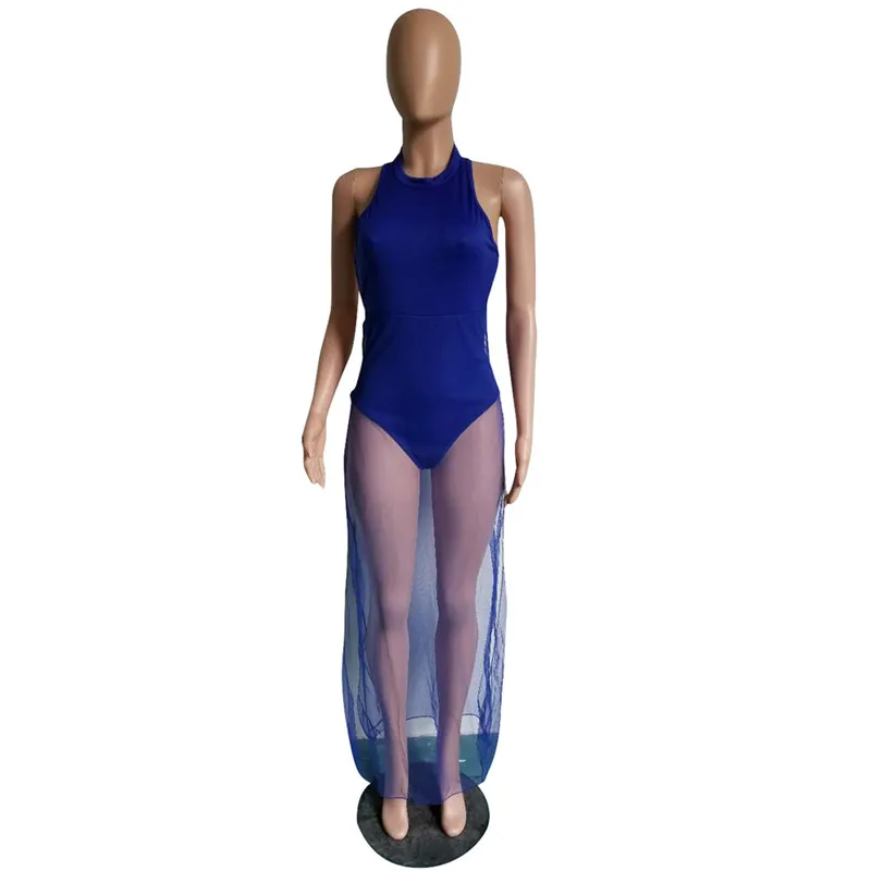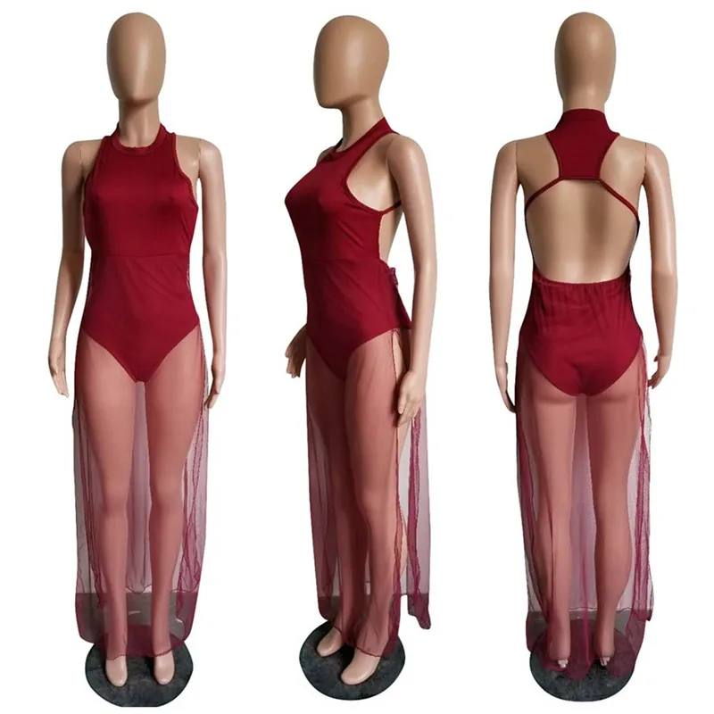 Doyerl Backless Long Black Mesh Dress Women Sexy Sleeveless O-Neck High Split Sheer Maxi Dresses Party Clubwear Outfits Vestidos