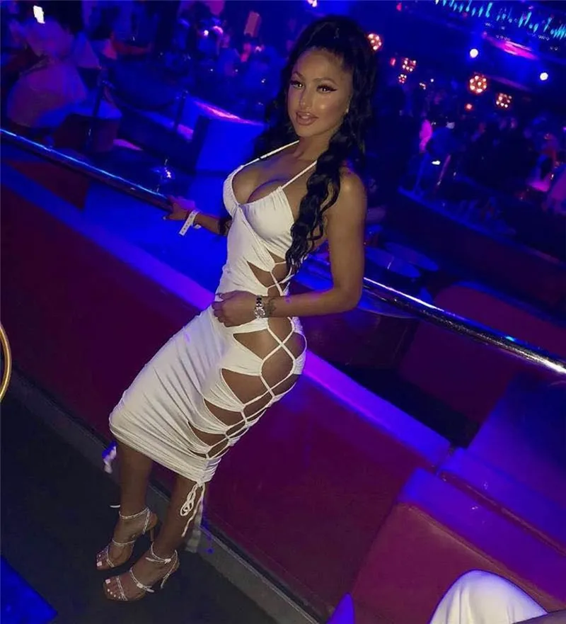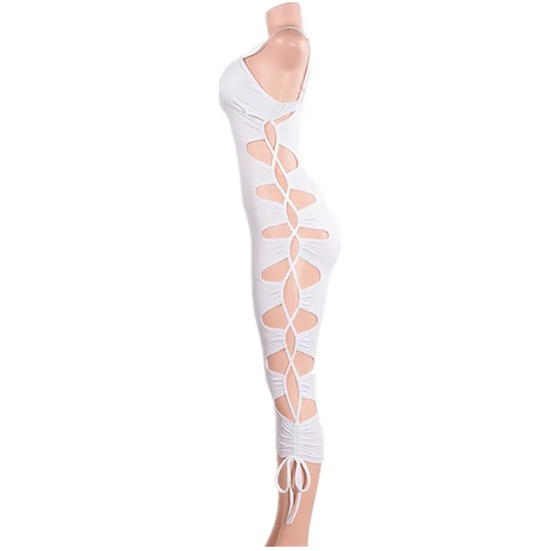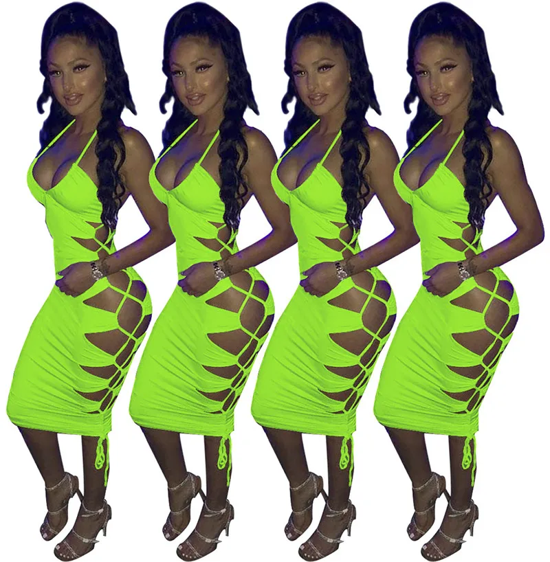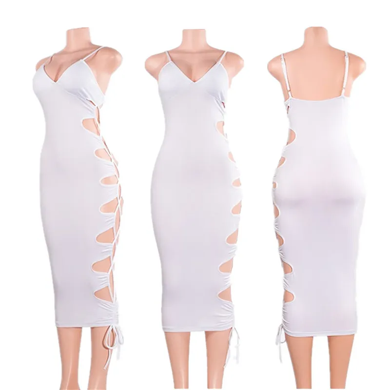 Sexy Celebrity Night Party Bodycon Bandage Dress Women Spaghetti Strap V-neck Side Hollow Out Lace Up Slim Backless Club Dresses