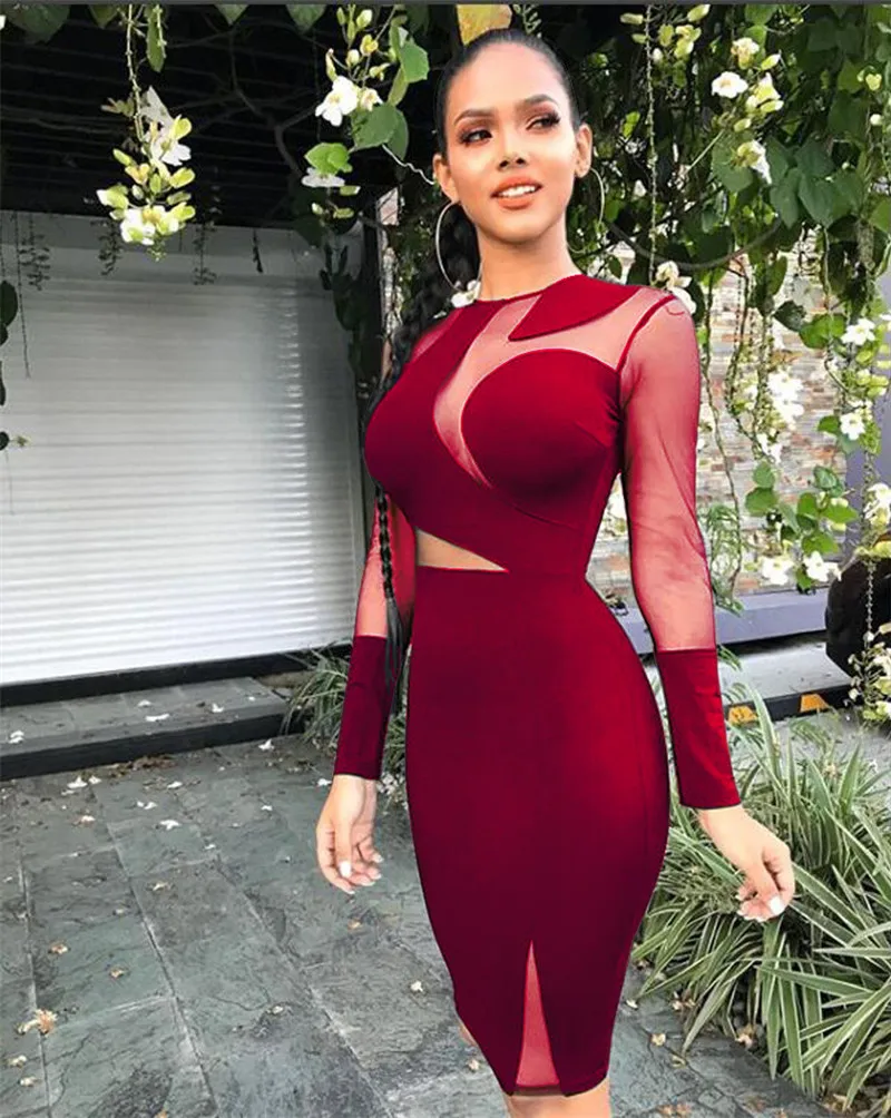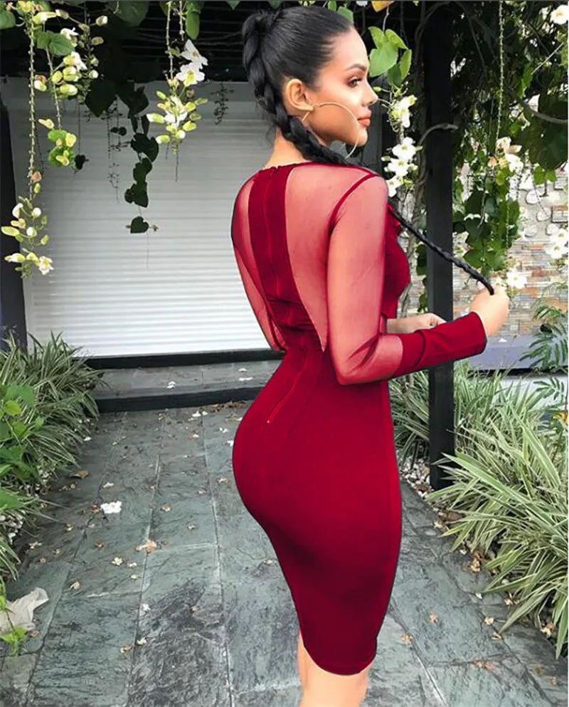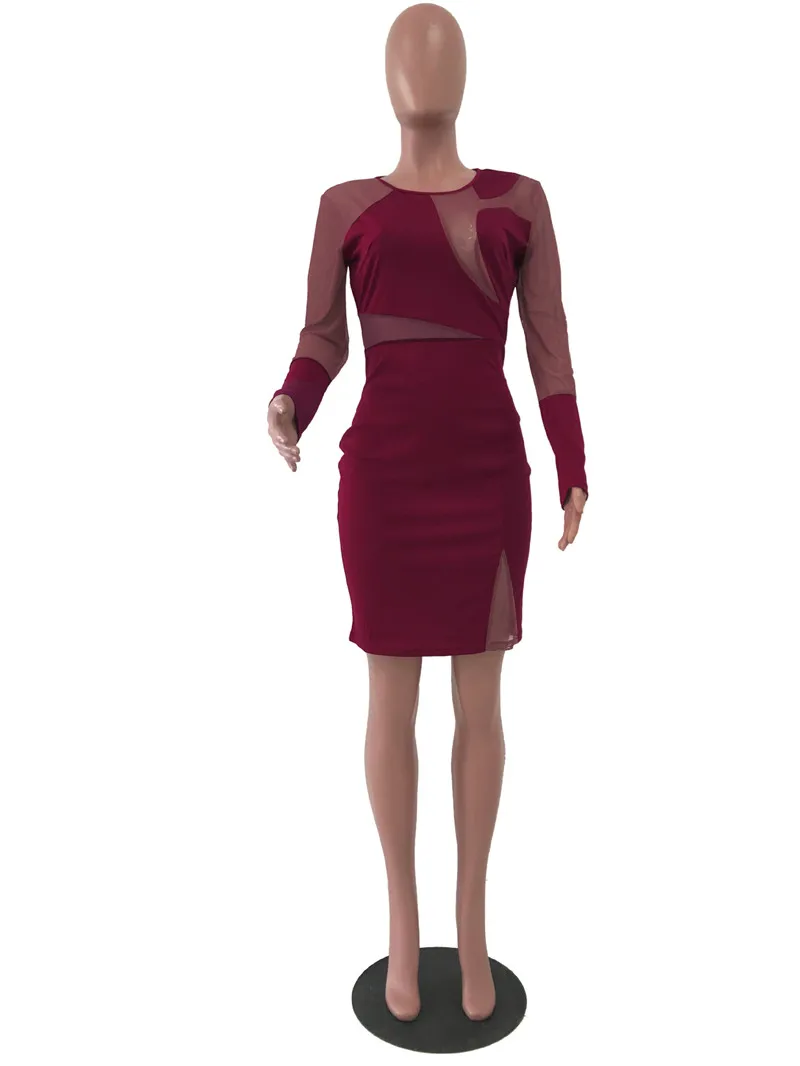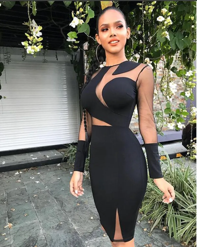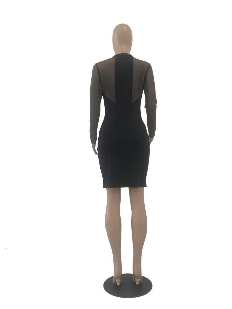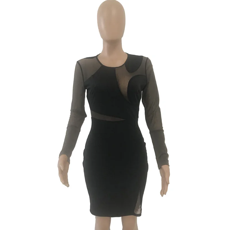 Sexy Mesh Patchwork Sheer Black Bodycon Dress Women O-neck Long Sleeve Elegant Birthday Nightclub Short Party Dresses Vestidos