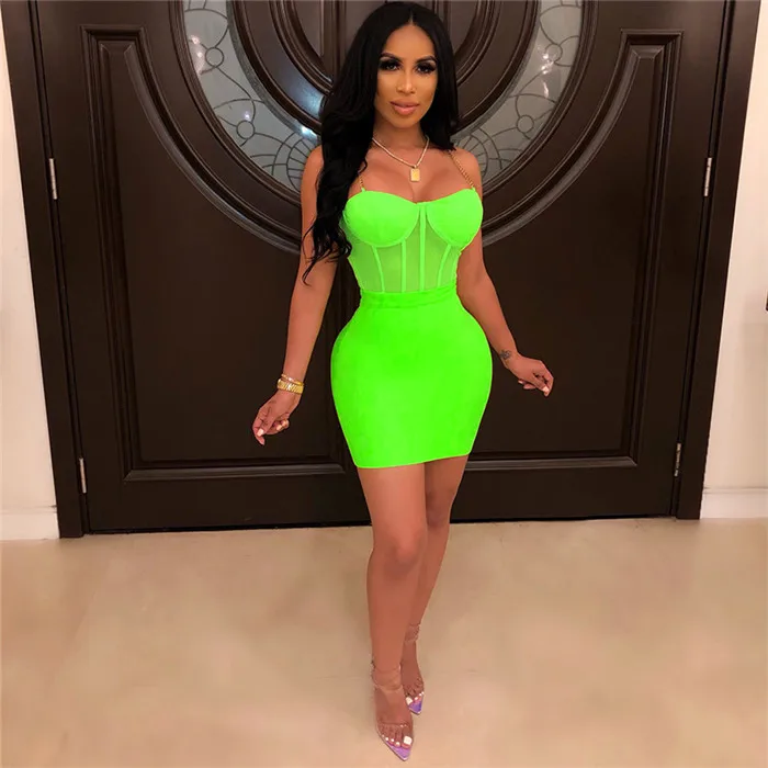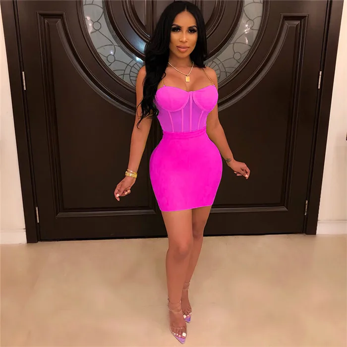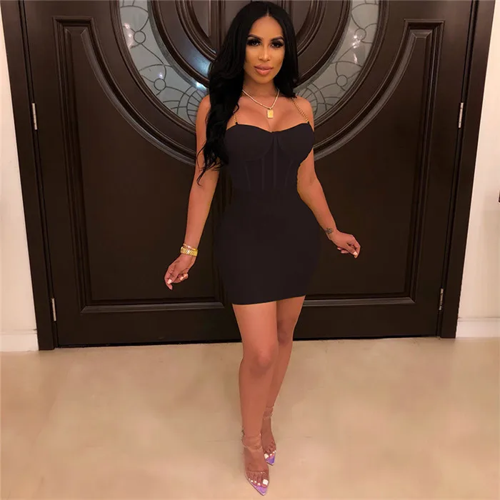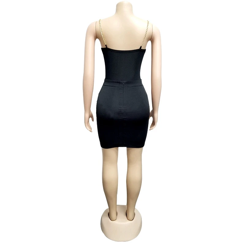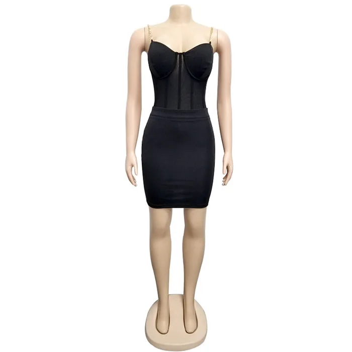 Sexy Mini Summer Bodycon Club Dress Women Slim Chain Strap Strapless Black Elegant Short Party Dress Ladies 2 Piece Dress Set