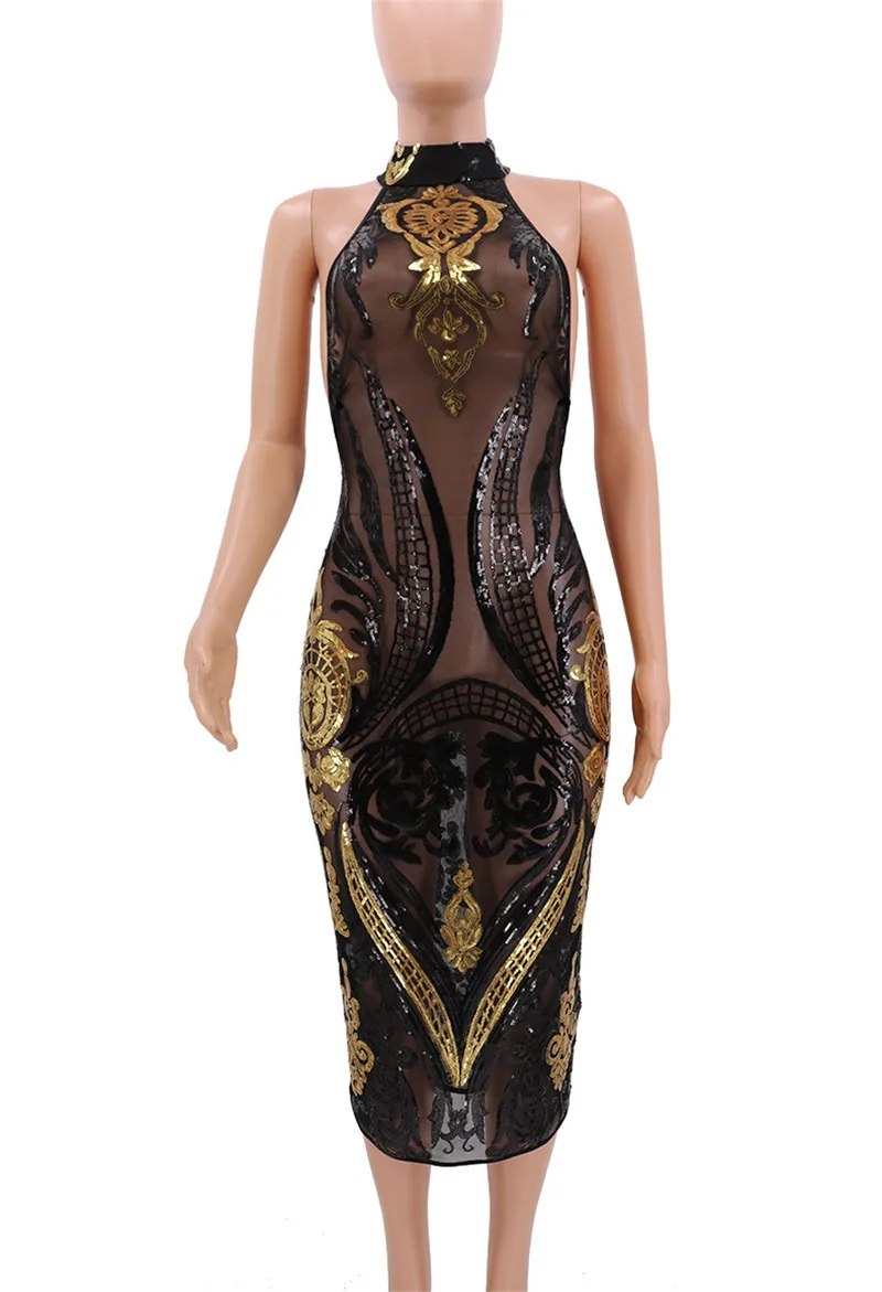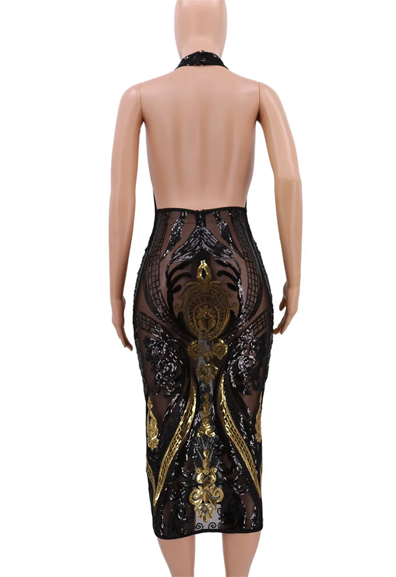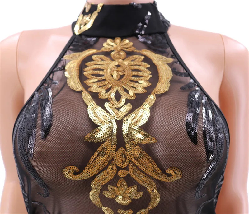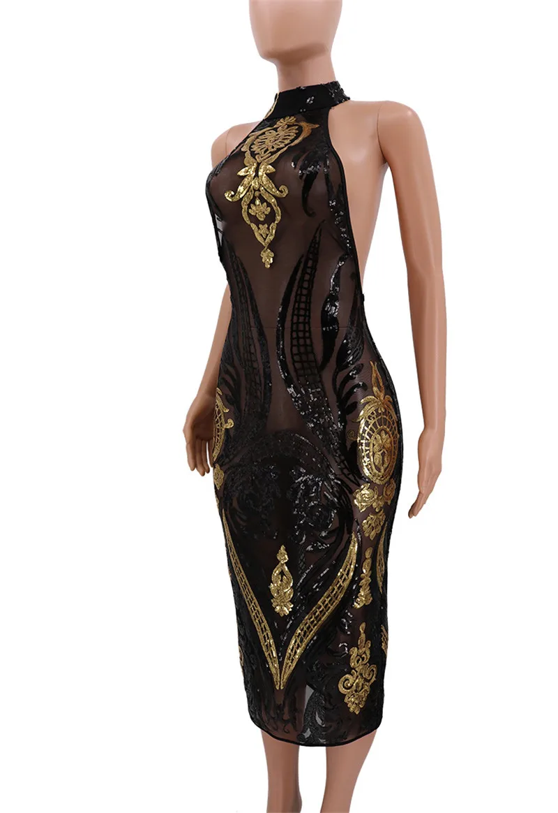 Sexy Sheer Mesh Black Sequin Dress Women Elegant Open Back Night Club See Through Dress Backless Sparkly Bodycon Party Dresses