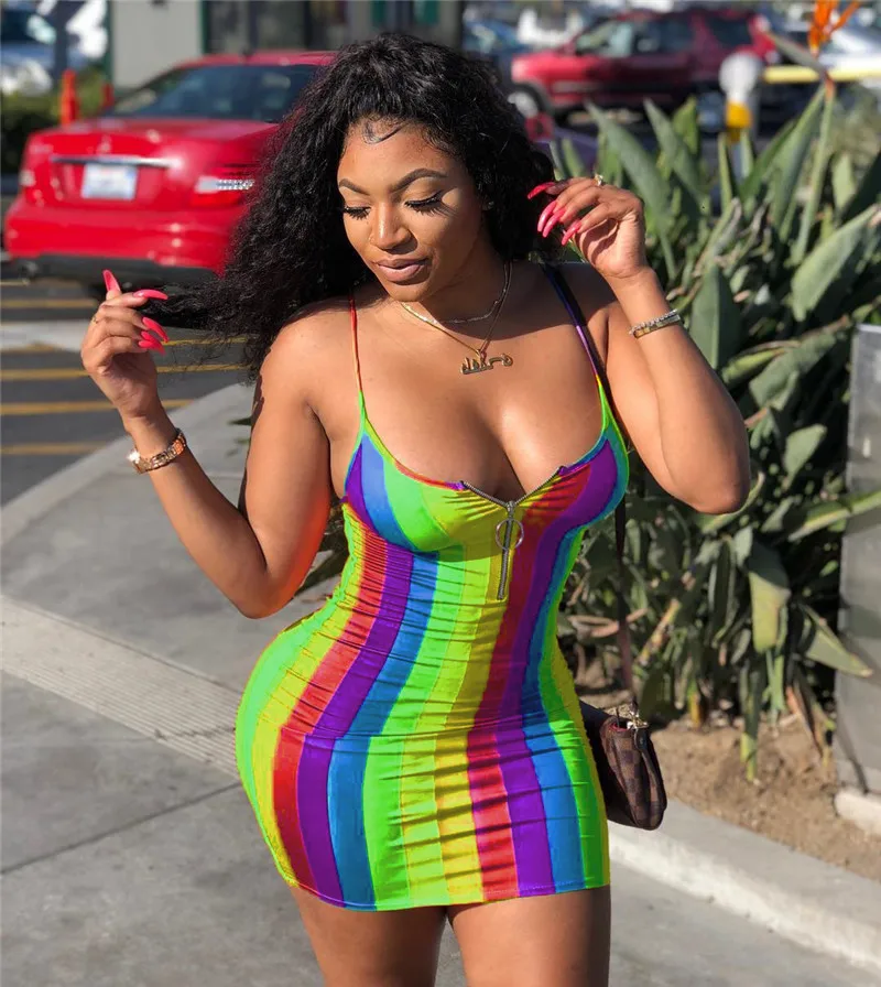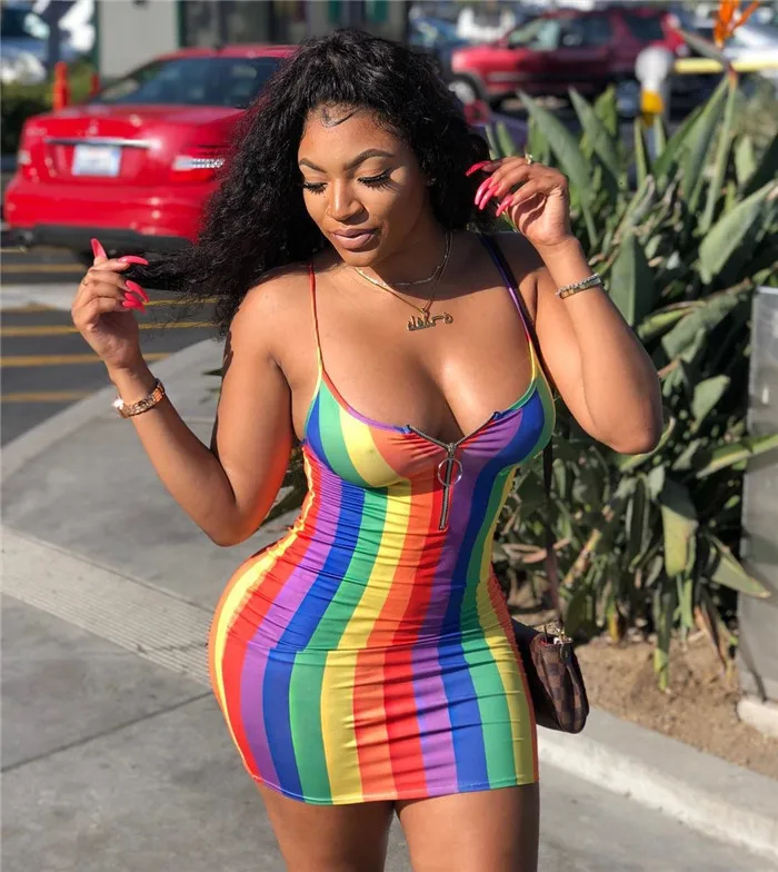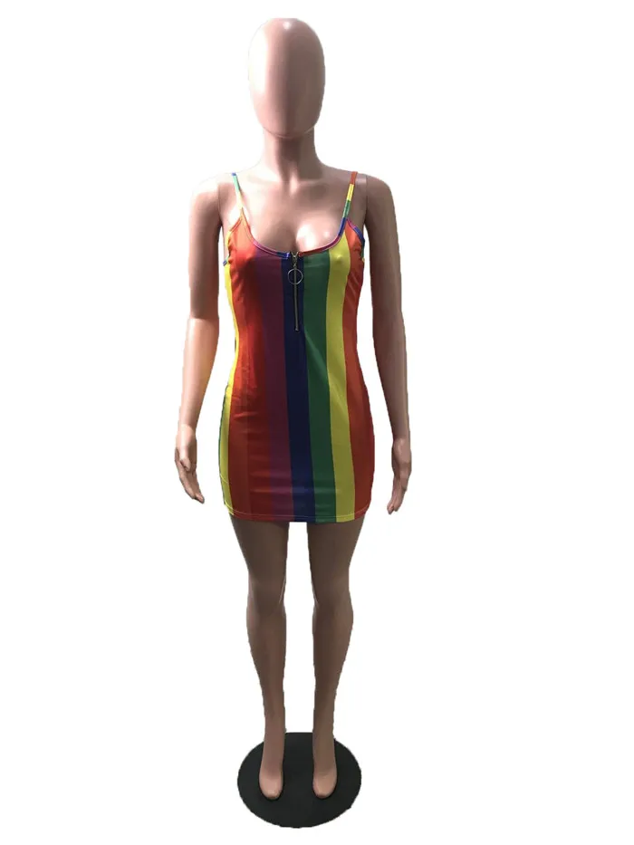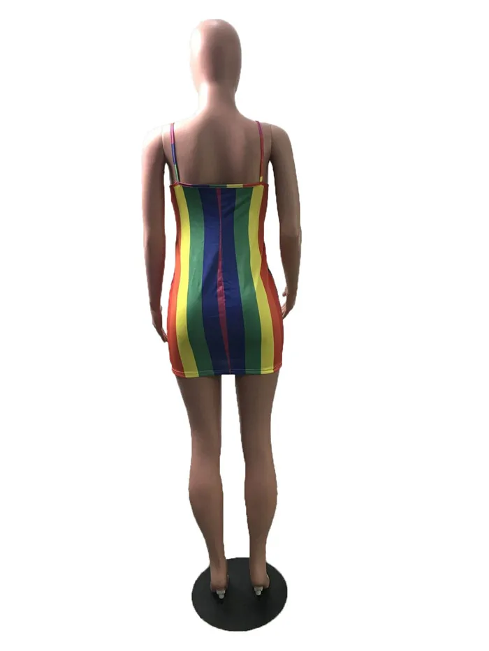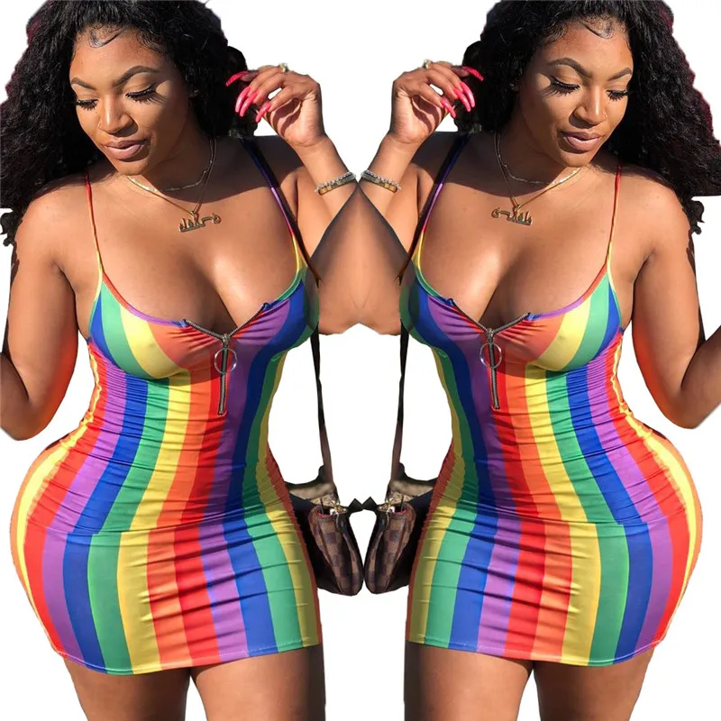 Sexy Summer Bandage Bodycon Mini Dress Women Sleeveless Spaghetti Strap Zipper Striped Clubwear Dress Beach Party Dresses Short
