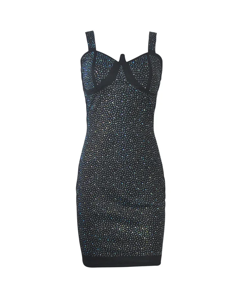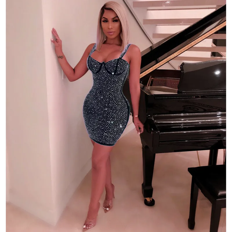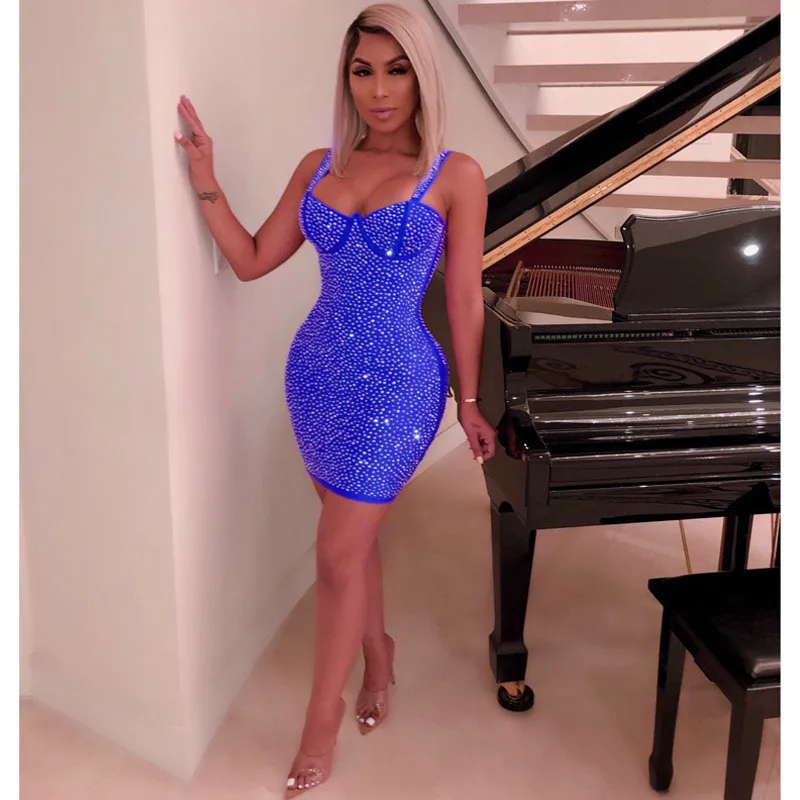Sparkly Rhinestone Sexy Night Club Party Dress Women Spaghetti Strap Backless Bodycon Mini Dress Elegant Festival Glitter Dress