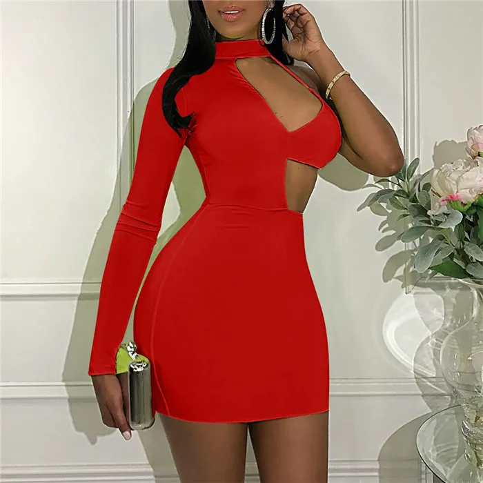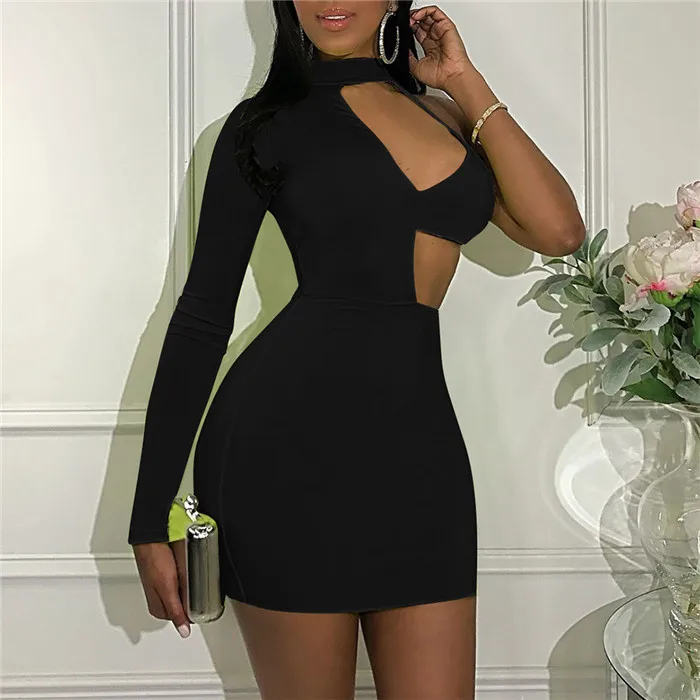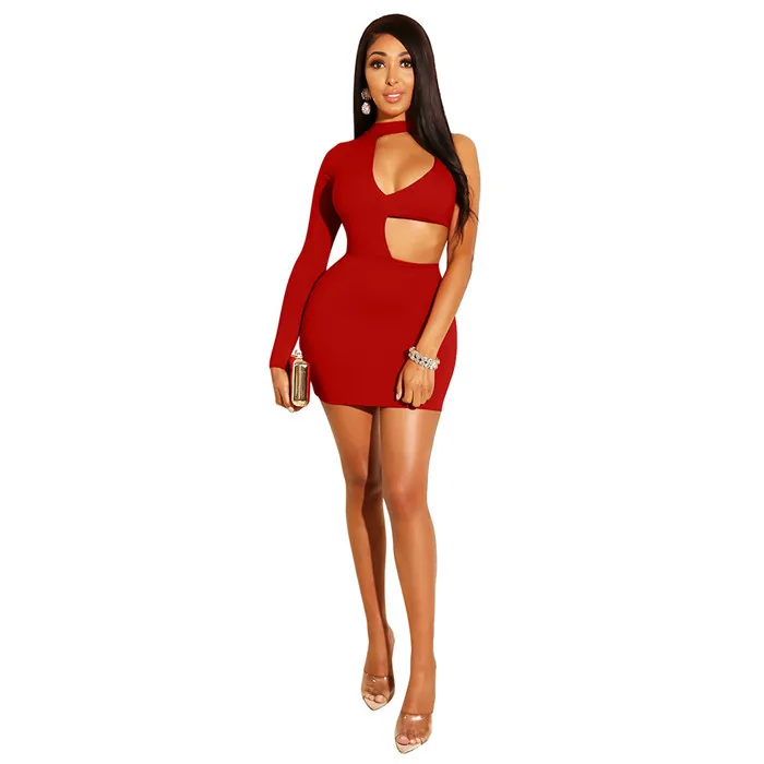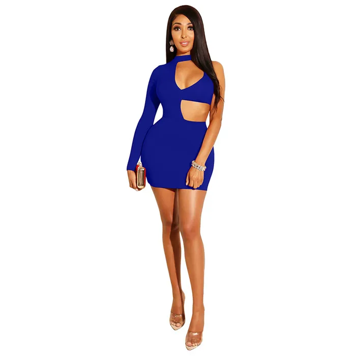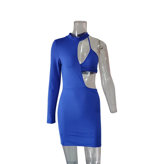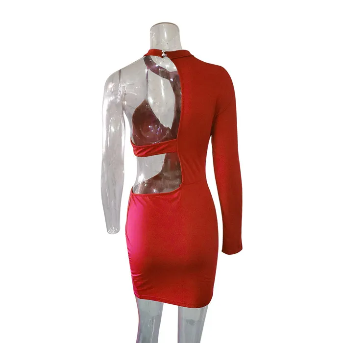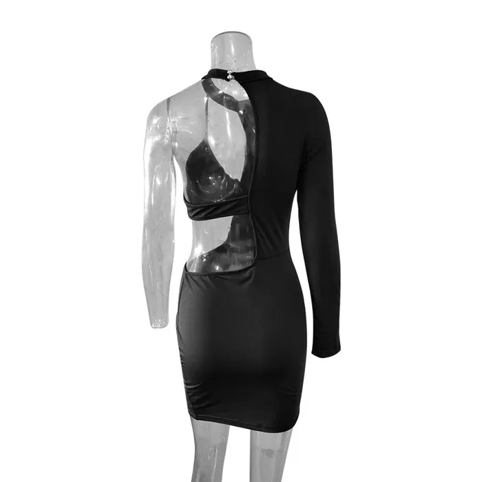 Women Sexy Mini Summer Bodycon Dress Elegant Slim One Shoulder Long Sleeve Party Club Dress Backless Hollow Out Mini Short Dress