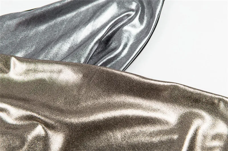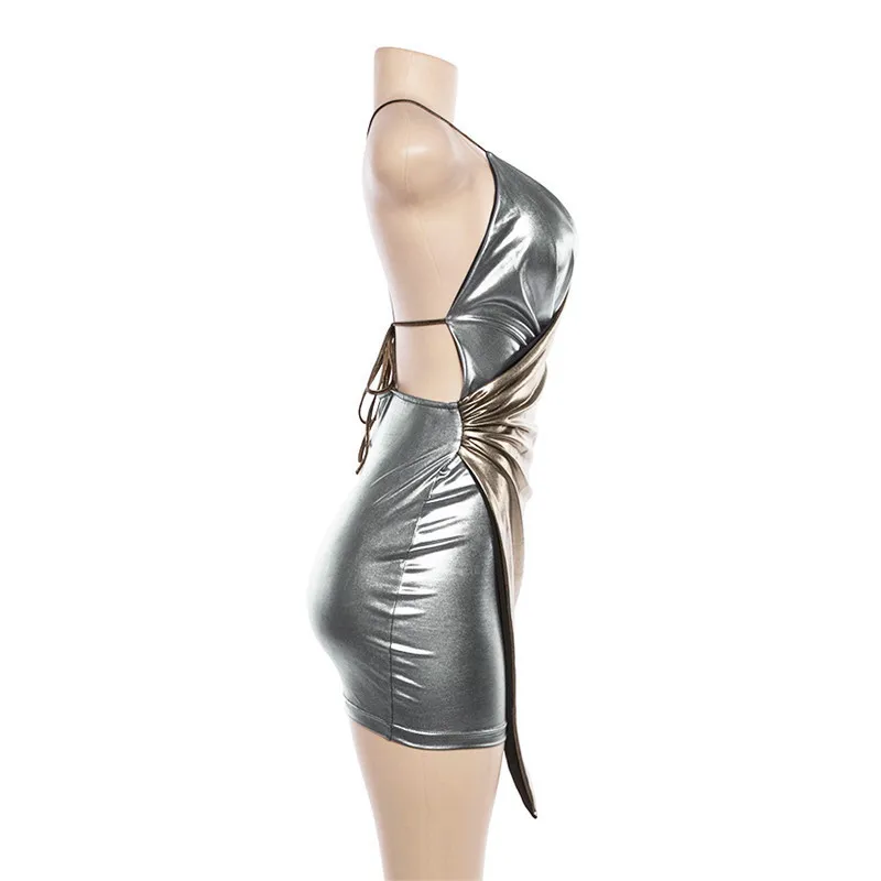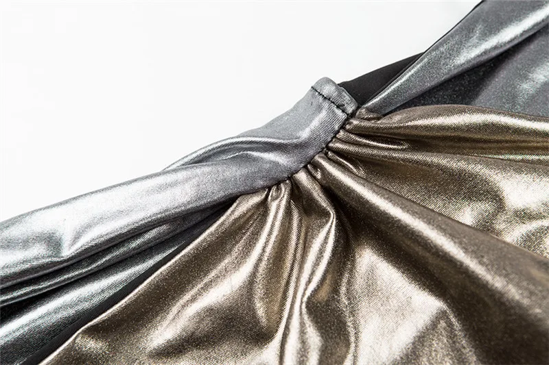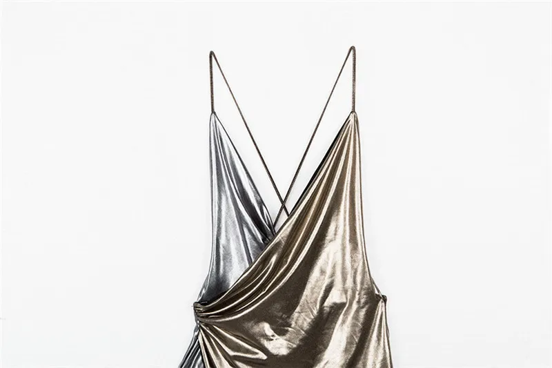 Women Summer Party Dress Sexy Straps Sleeveless Ruched Silver Gold Metallic High Low Bodycon Wrap Dress Mini Night Club Dress
