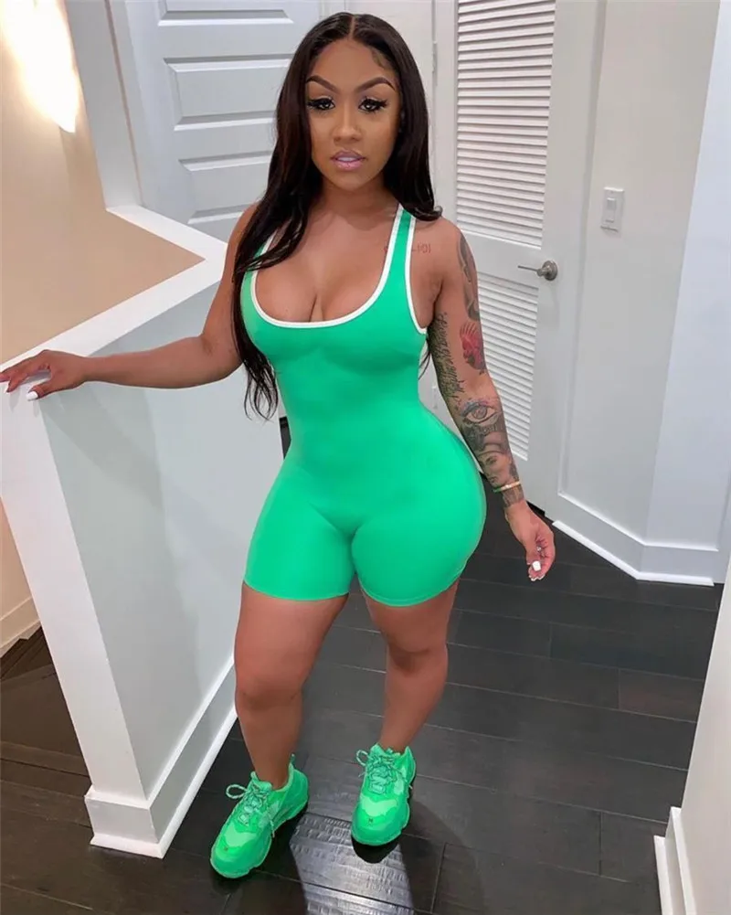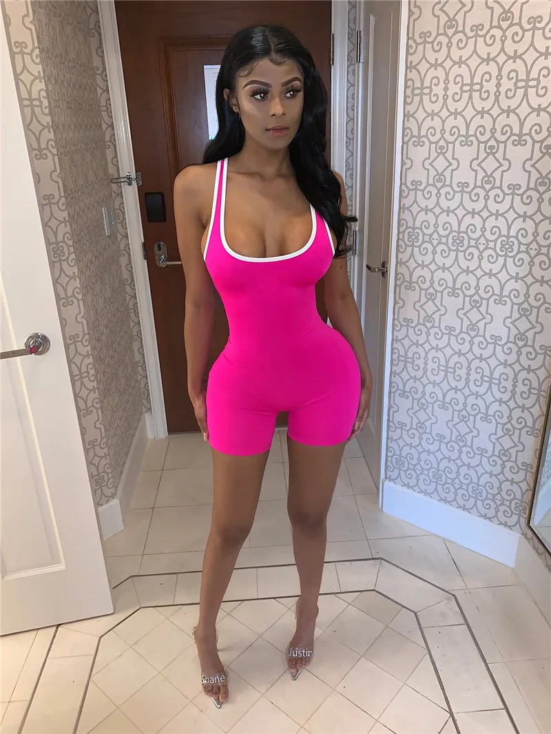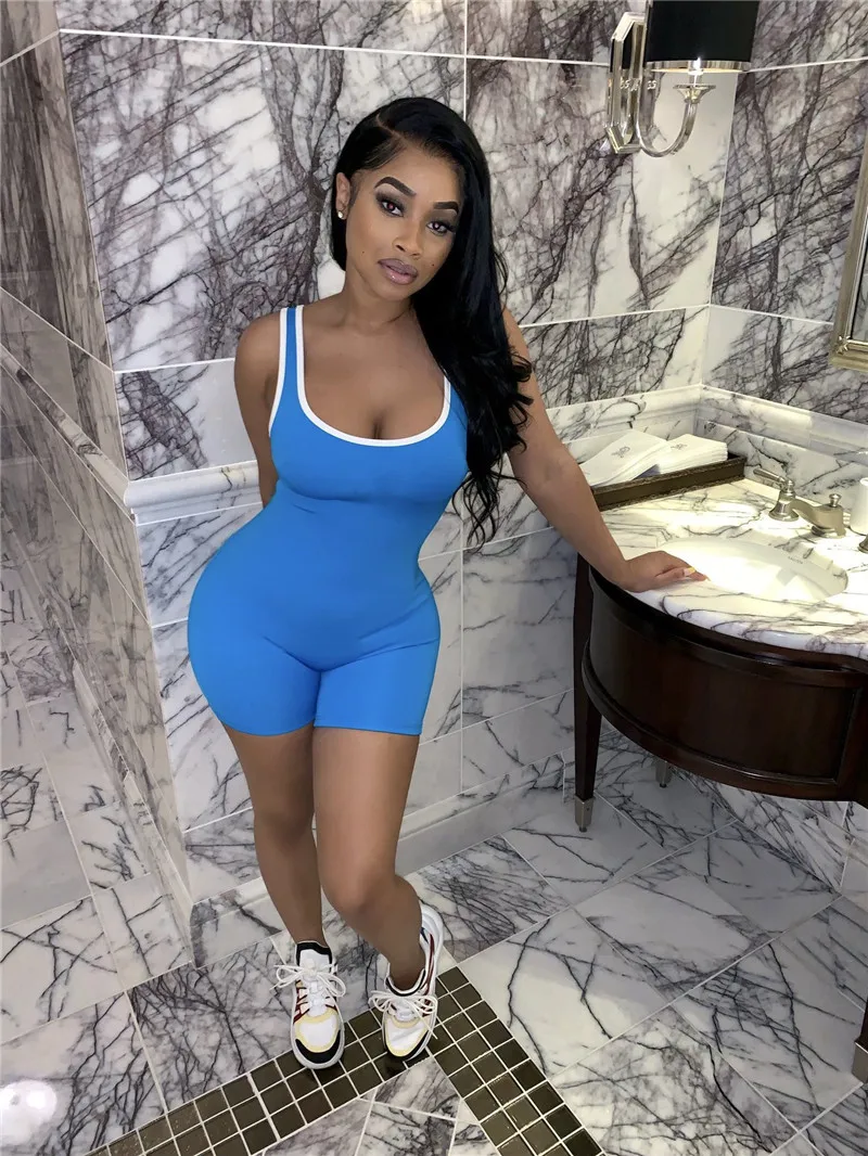Fitness Casual Sporty Biker Playsuit Women Sleeveless Bodycon Rompers Womens Jumpsuit Shorts Jogging Suit Sportswear