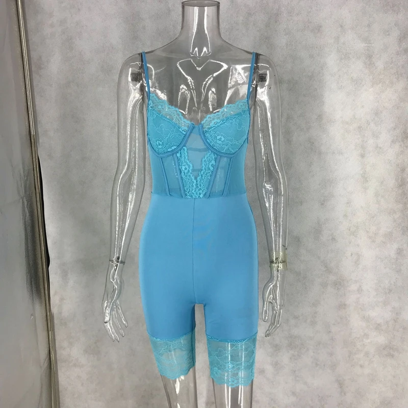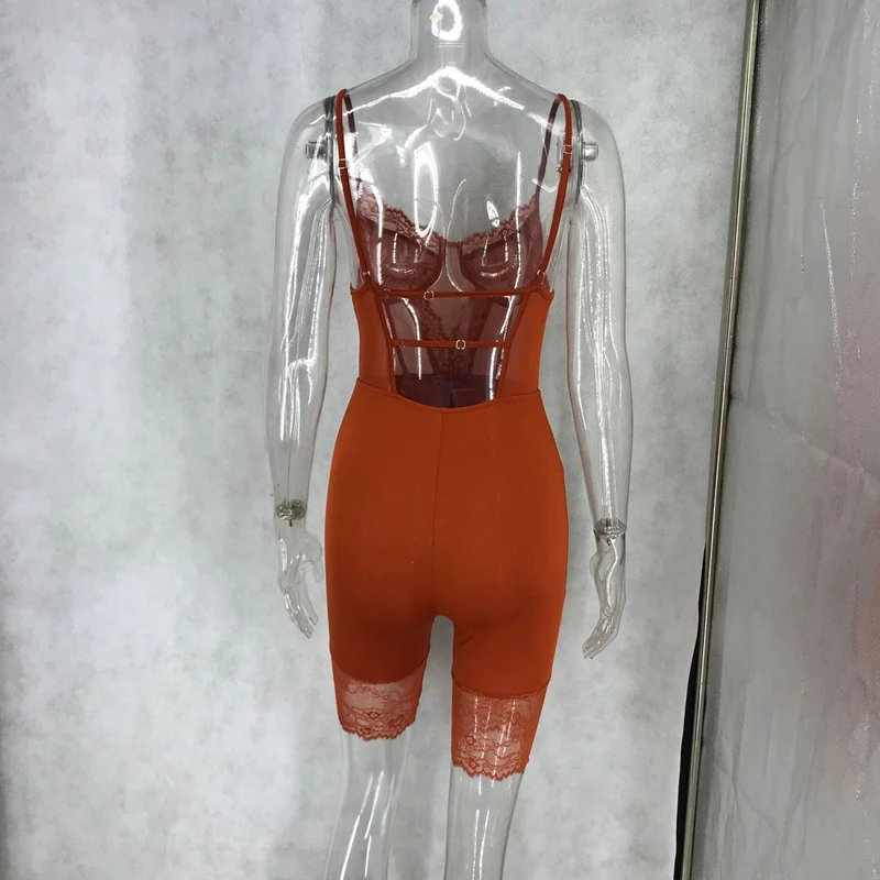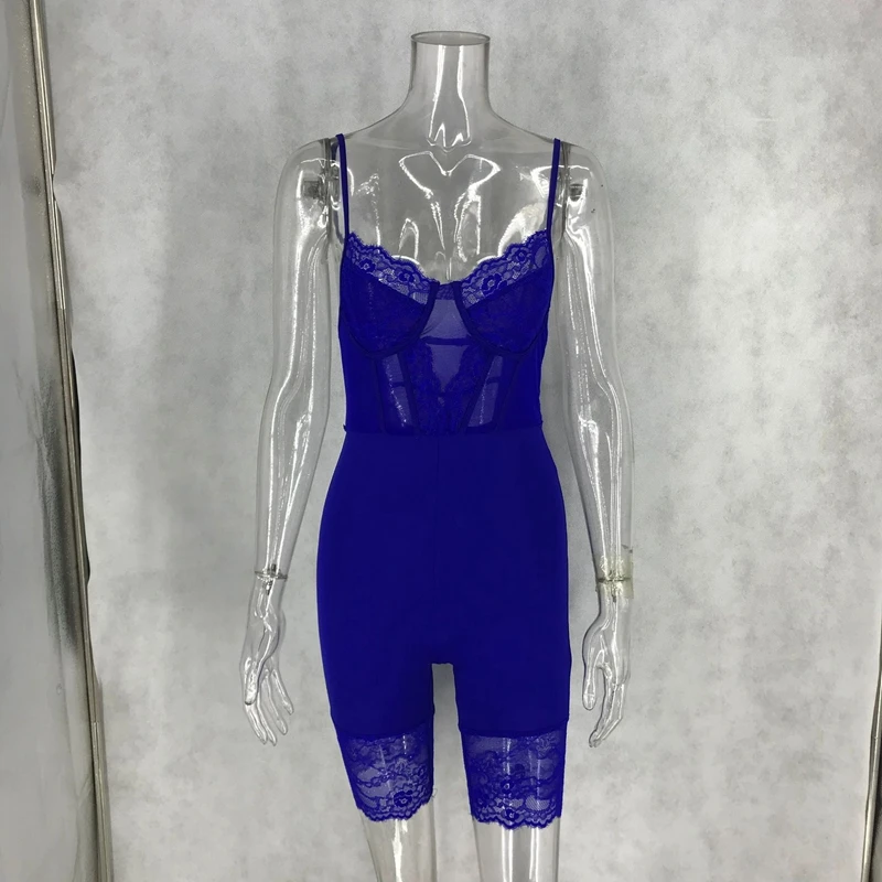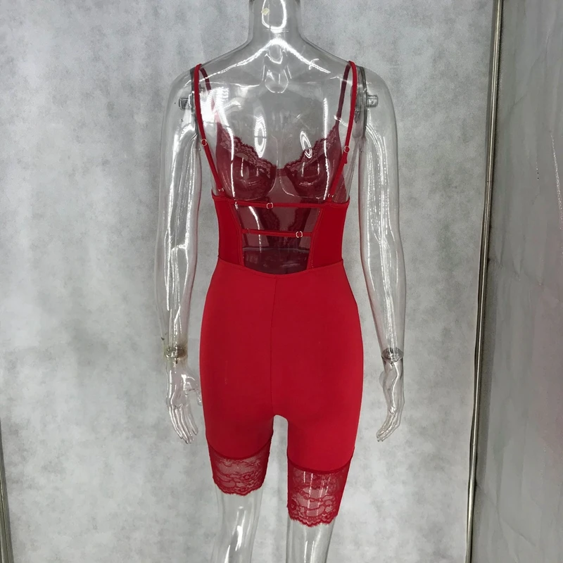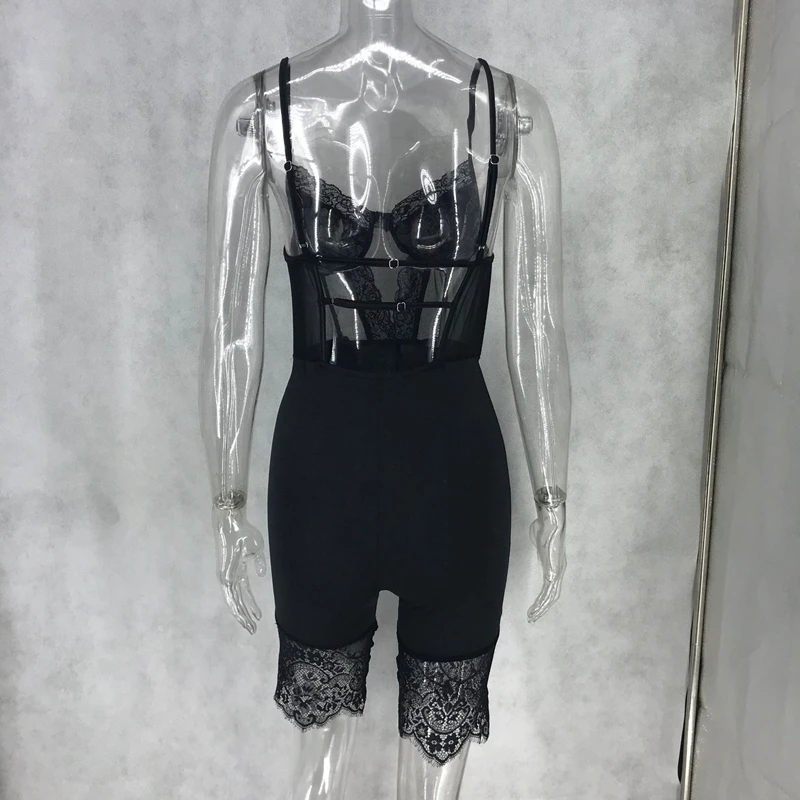 Sexy Lace Bodysuit Women Backless Romper Black Bodycon Jumpsuit Overalls Elegant Skinny Party Club Bodysuit Short Playsuit