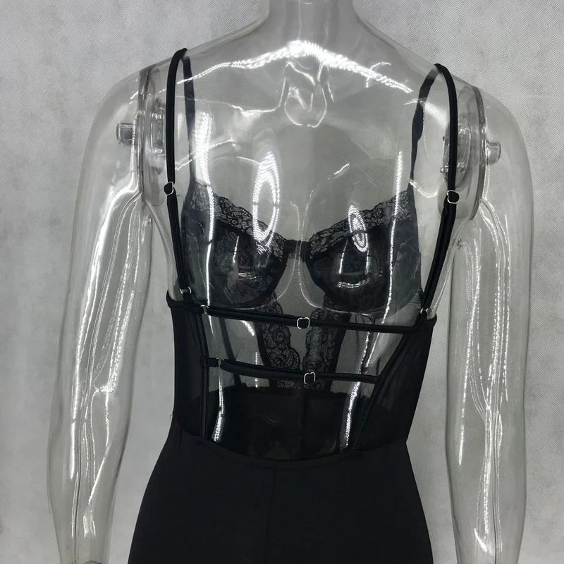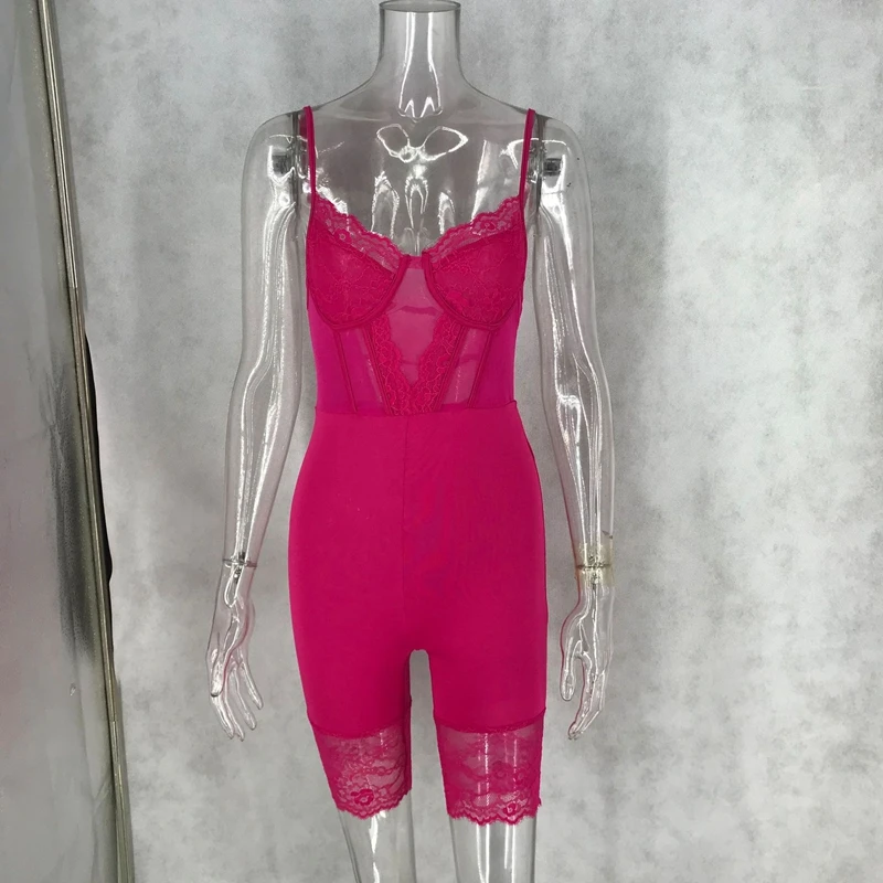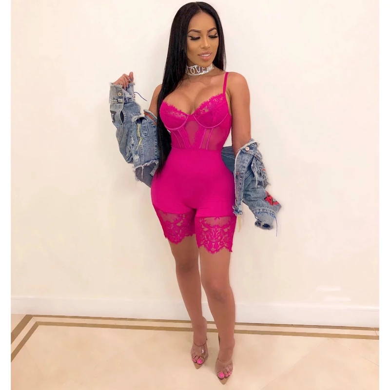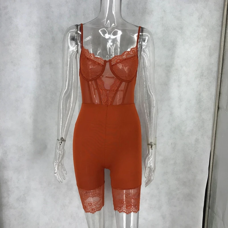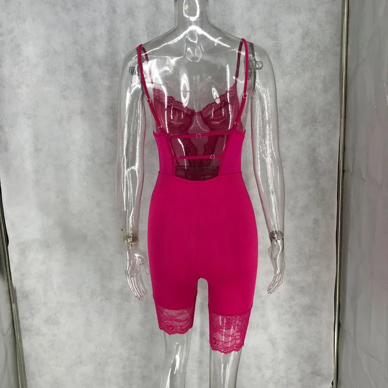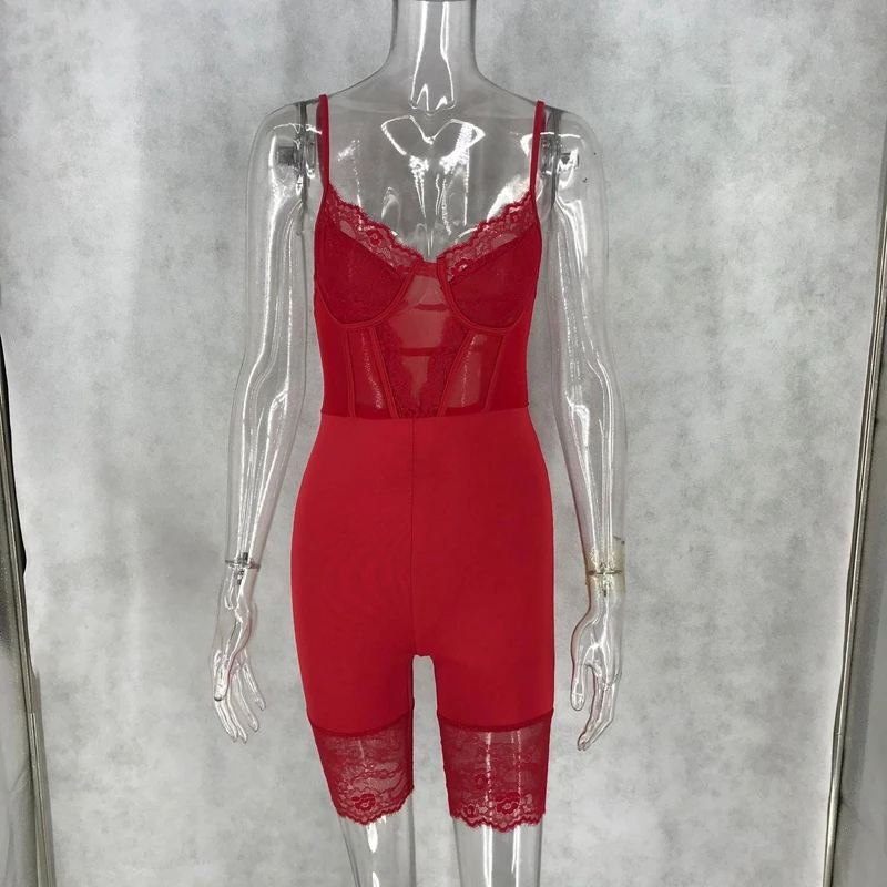 Sexy Lace Bodysuit Women Backless Romper Black Bodycon Jumpsuit Overalls Elegant Skinny Party Club Bodysuit Short Playsuit