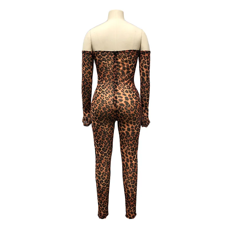 Autumn Sexy Club Rompers Womens Jumpsuit Long Trousers Pants Romper Off Shoulder Leopard Print Party Bodycon Jumpsuit Overalls