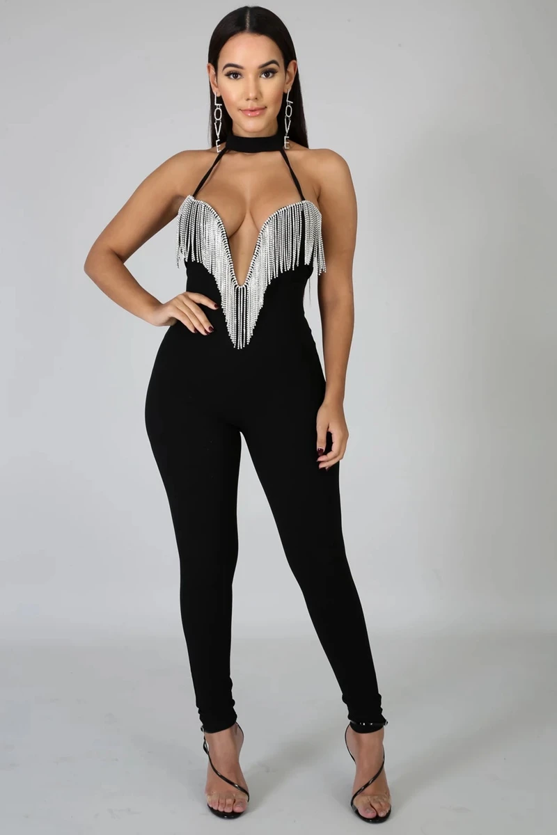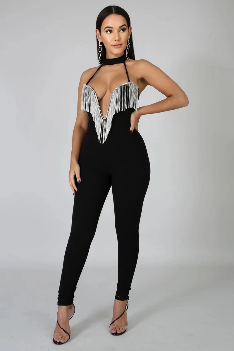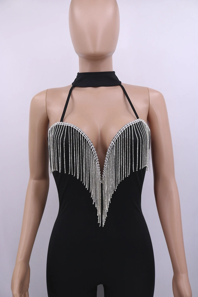 Sexy Club Jumpsuits Women Fringe Tassel Bodycon Bandage Jumpsuit Elegant Romper Pants Skinny Backless Party Festival Jumpsuit