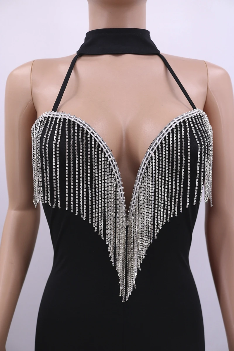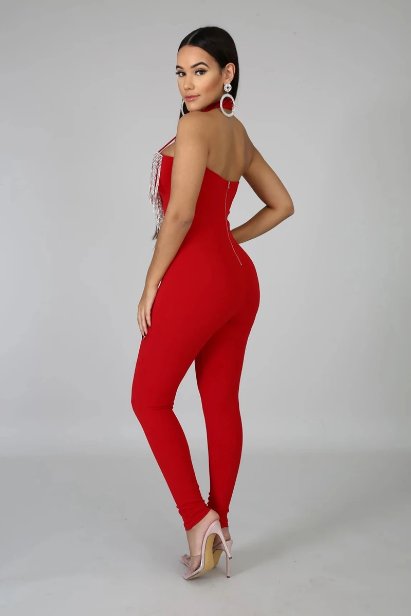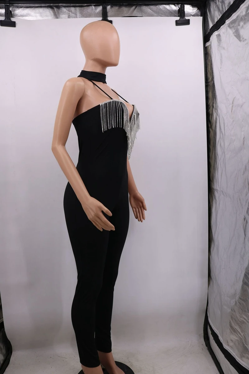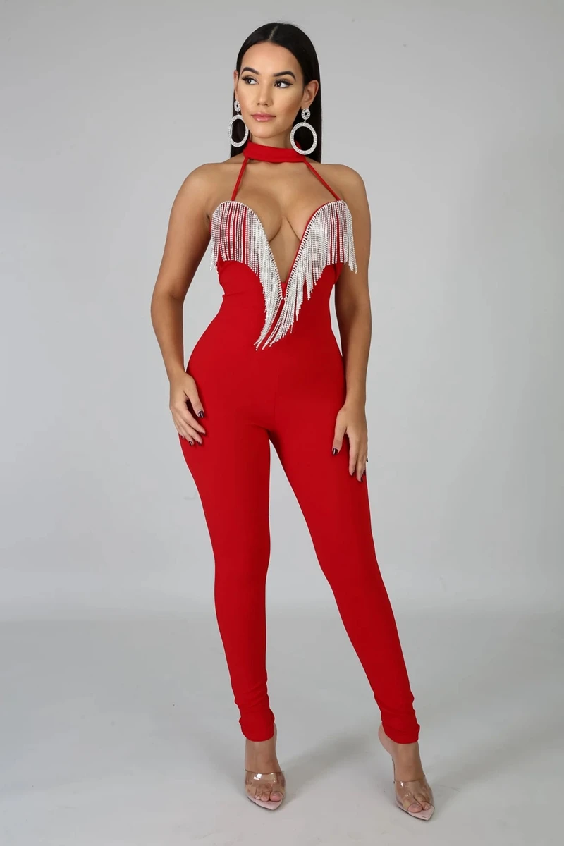 Sexy Club Jumpsuits Women Fringe Tassel Bodycon Bandage Jumpsuit Elegant Romper Pants Skinny Backless Party Festival Jumpsuit