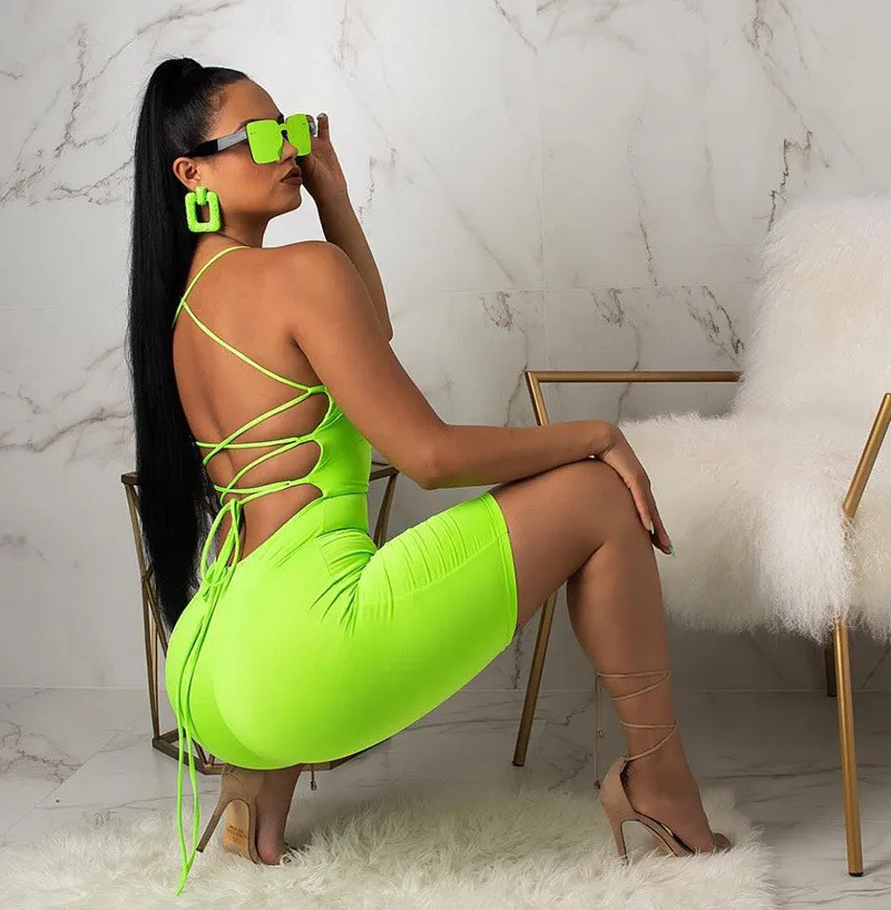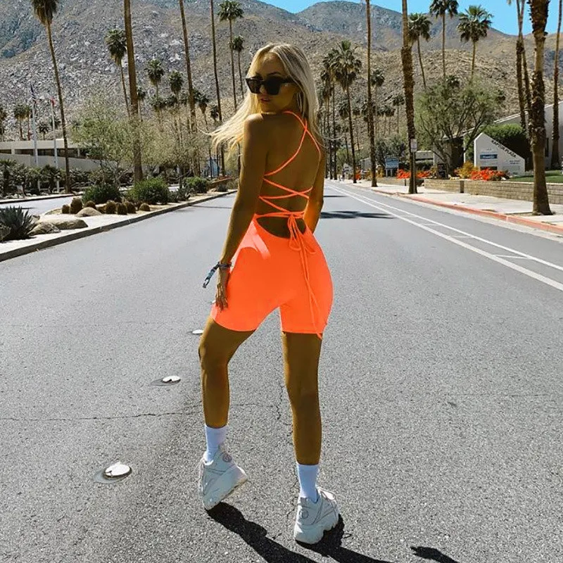 Sexy Rompers Womens Jumpsuit Neon Green Club Bodycon Bandage Jumpsuit Short Lace Up Backless Bodysuit Ladies Summer Playsuit