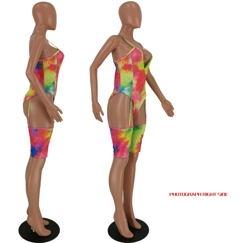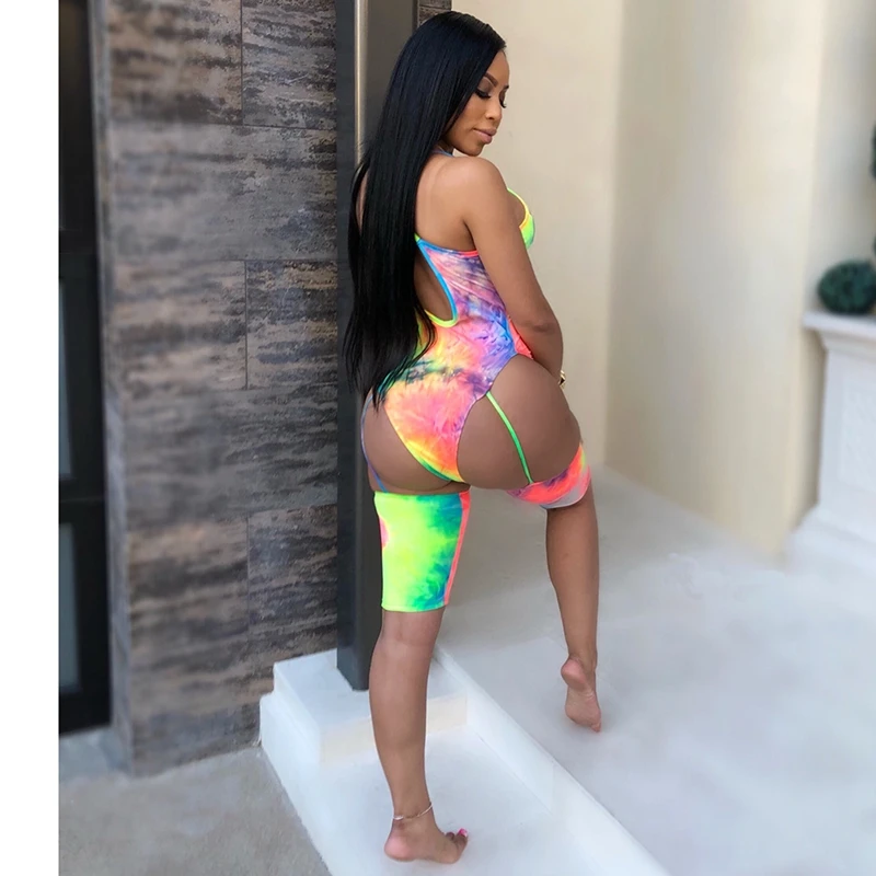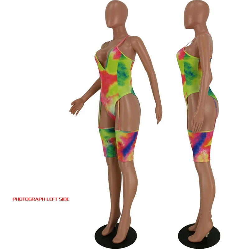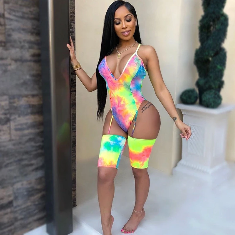 Sexy Summer Beach Jumpsuit Romper Women Short Playsuit Tie Dye Print High Cut Bodysuit Clubwear Summer Clothes Women Overalls