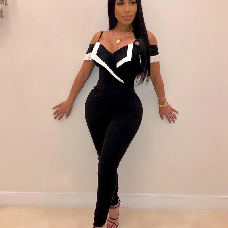 Women Off Shoulder Bodycon Jumpsuit Romper Black Deep V Neck Sexy Jumpsuit Elegant Party Club Summer Rompers Womens Jumpsuit