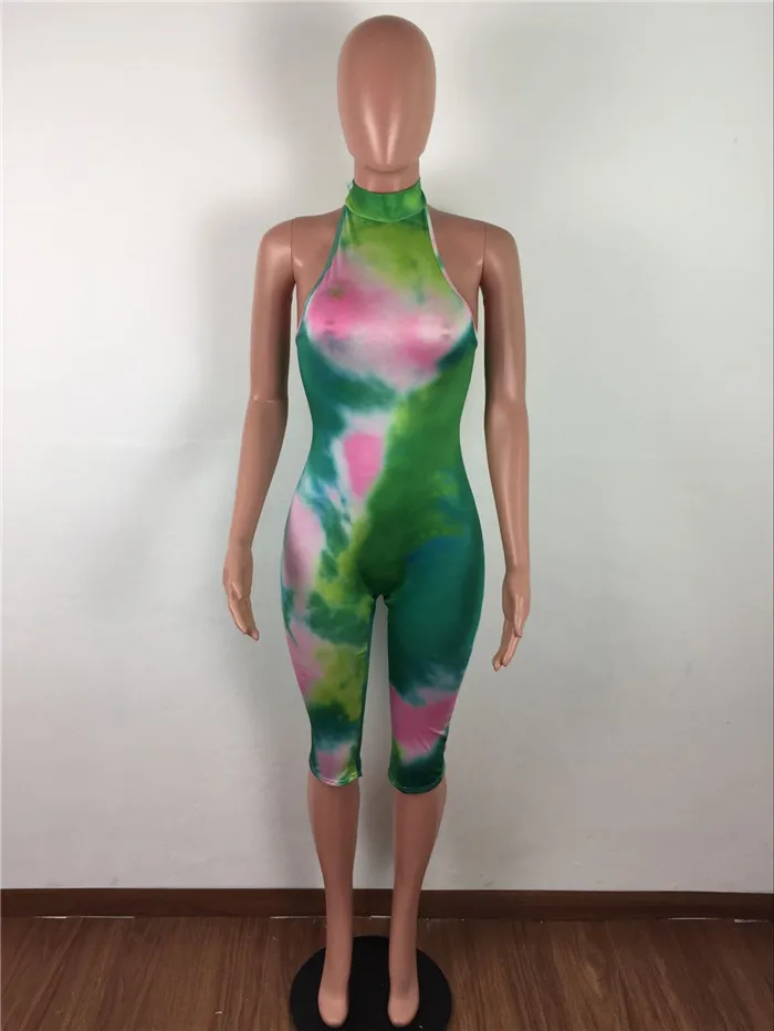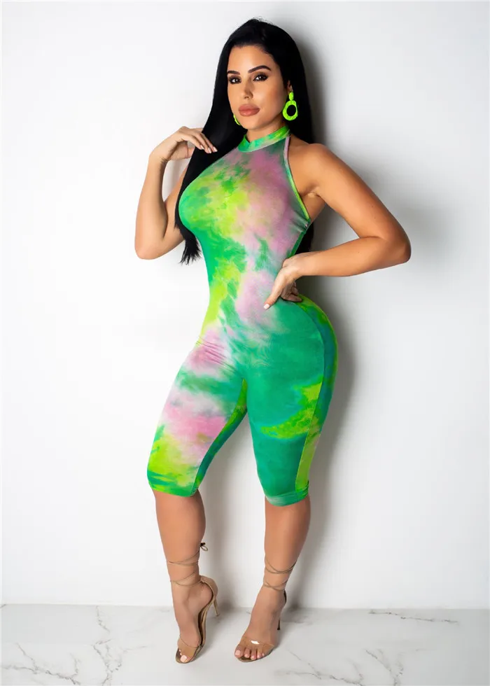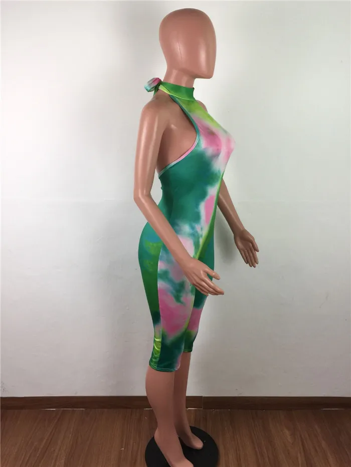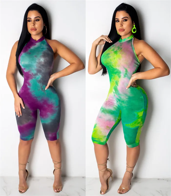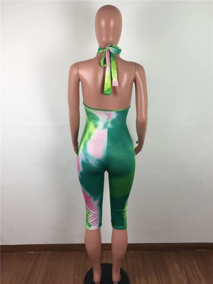 Womens Sexy Playsuit Romper Summer Short Jumpsuit Women Tie Dye Print Backless Bodycon Skinny Club Party Casual Romper Jumpsuit