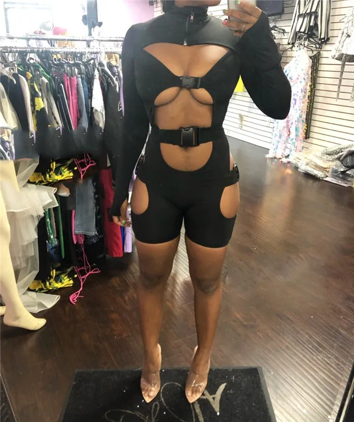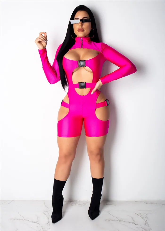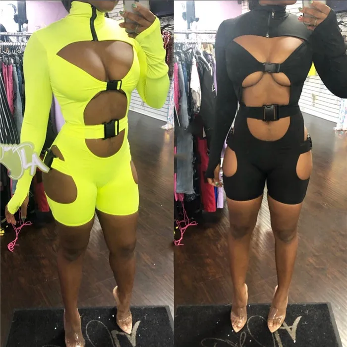 Womens Sexy Playsuit Summer Short Jumpsuit Romper Bodysuit Long Sleeve Neon Gothic Casual Hollow Out Bodycon Romper Jumpsuit