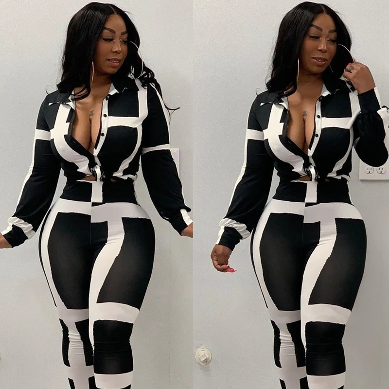 Autumn 2 Piece Set Women Tracksuit Casual Print Long Sleeve Shirt Top and Pants Sweat Suits Women Two Piece Matching Sets Outfit