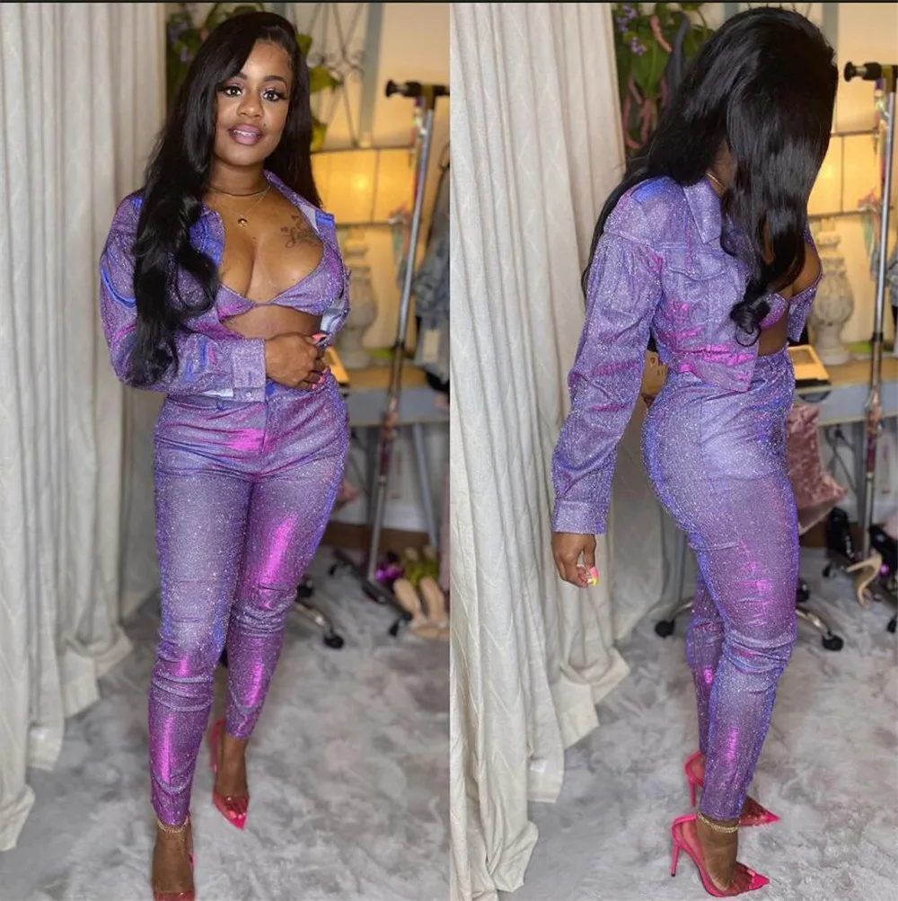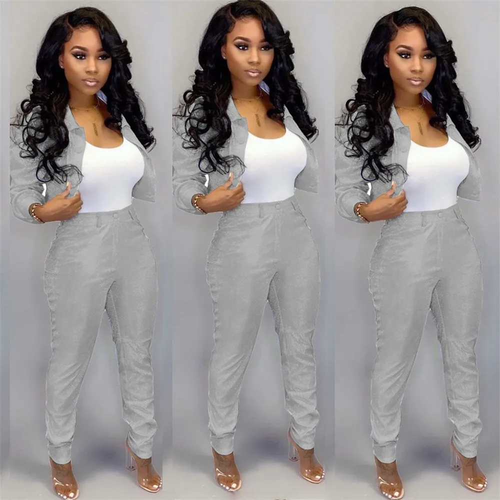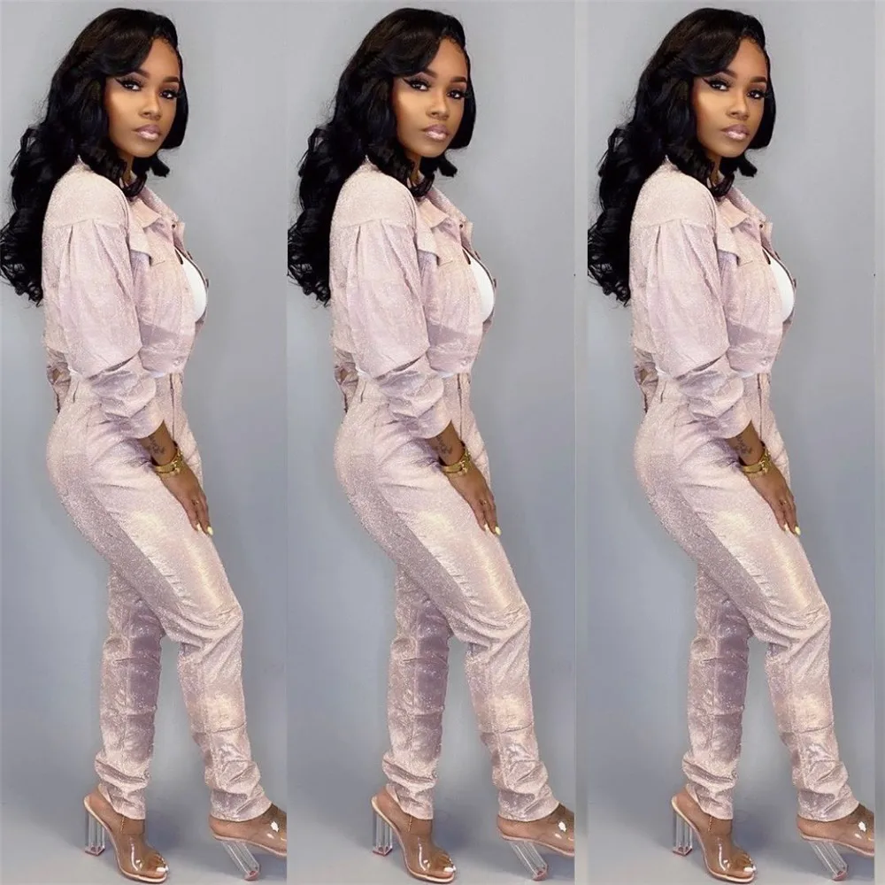 Sequin Glitter 2 Piece Set Women's Suit Single-breasted Jacket Top and Long Pants Sexy Club Outfits Matching Sets Ensemble Femme