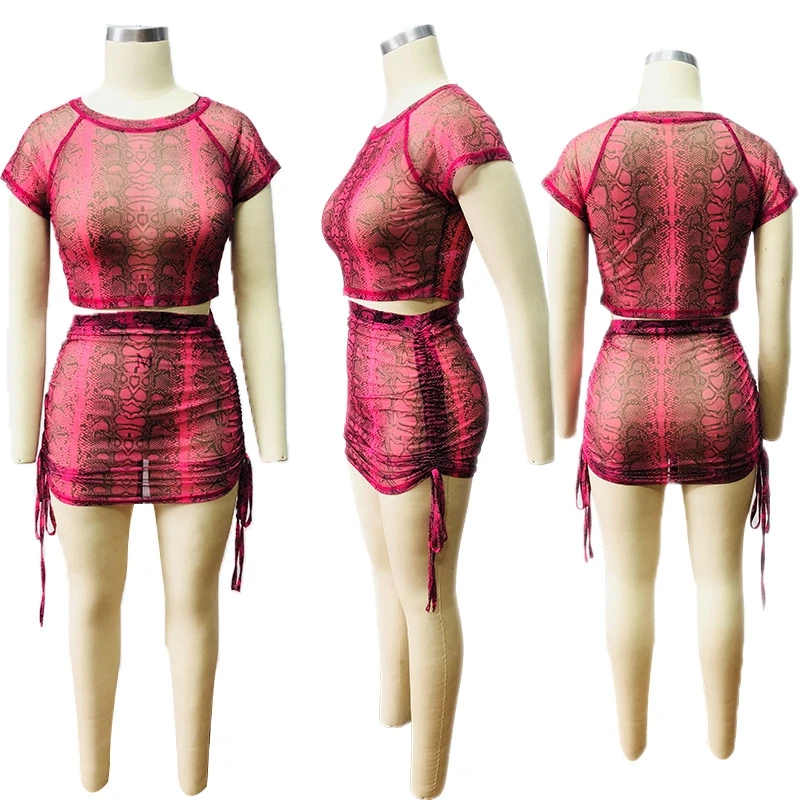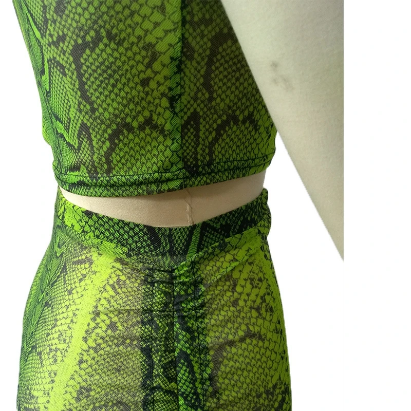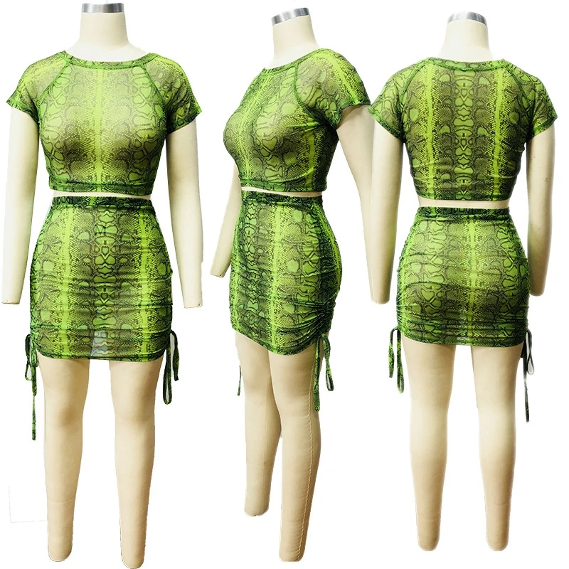 Snake Print Sexy Two Piece Set Women Festival Clothing Bodycon 2 Piece Crop Top and Skirt Set Summer Matching Sets Club Outfits