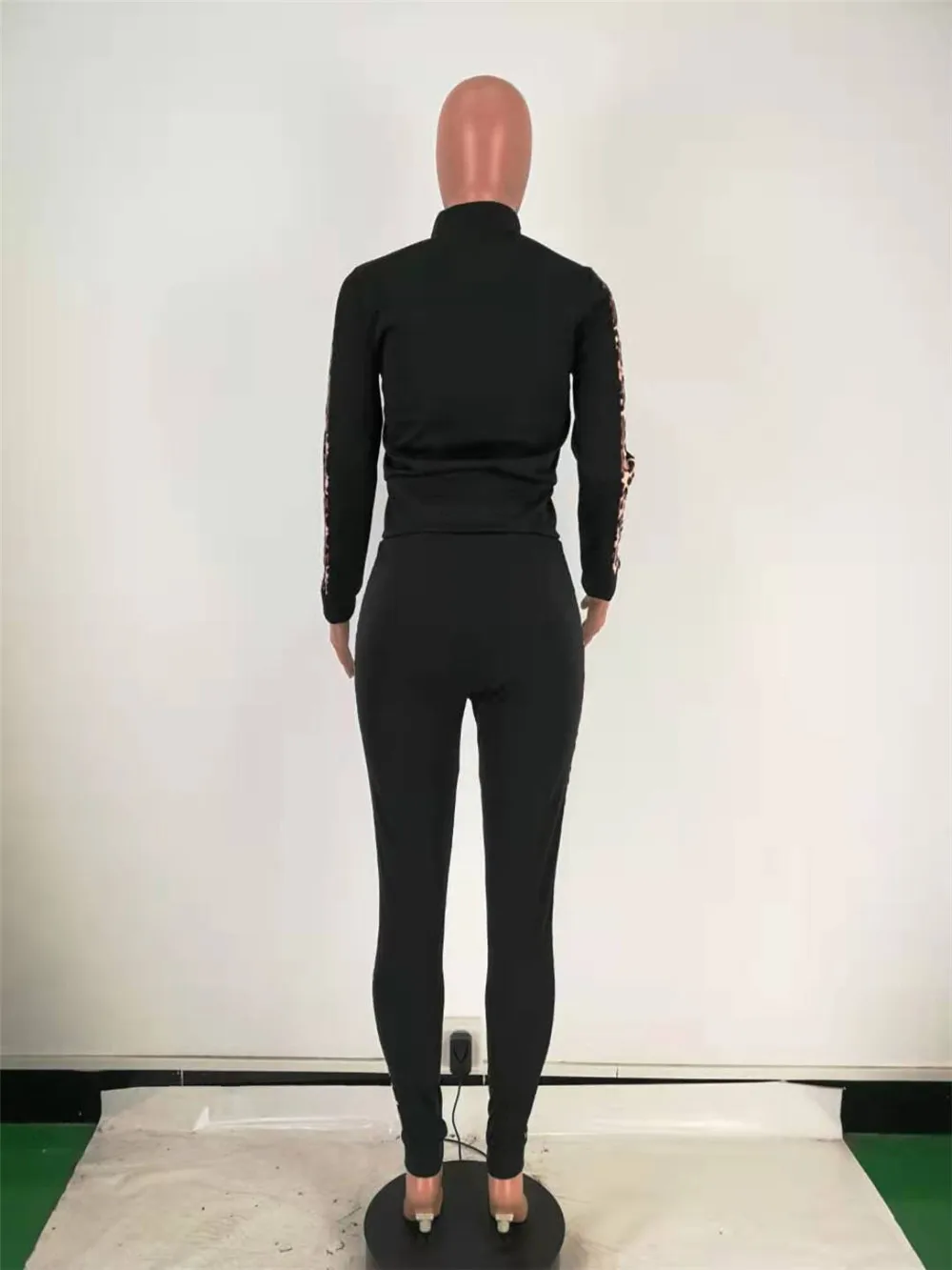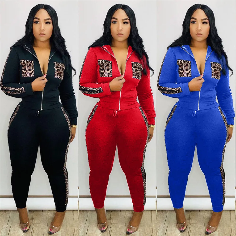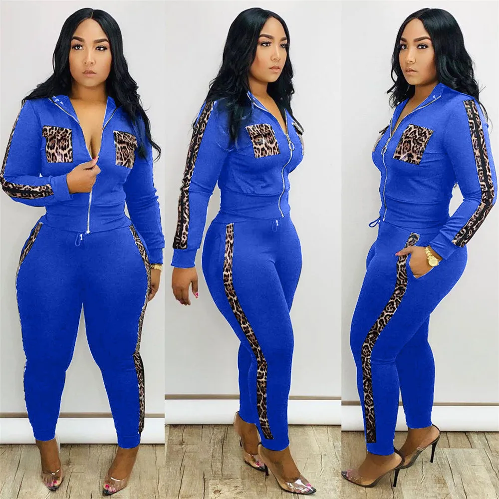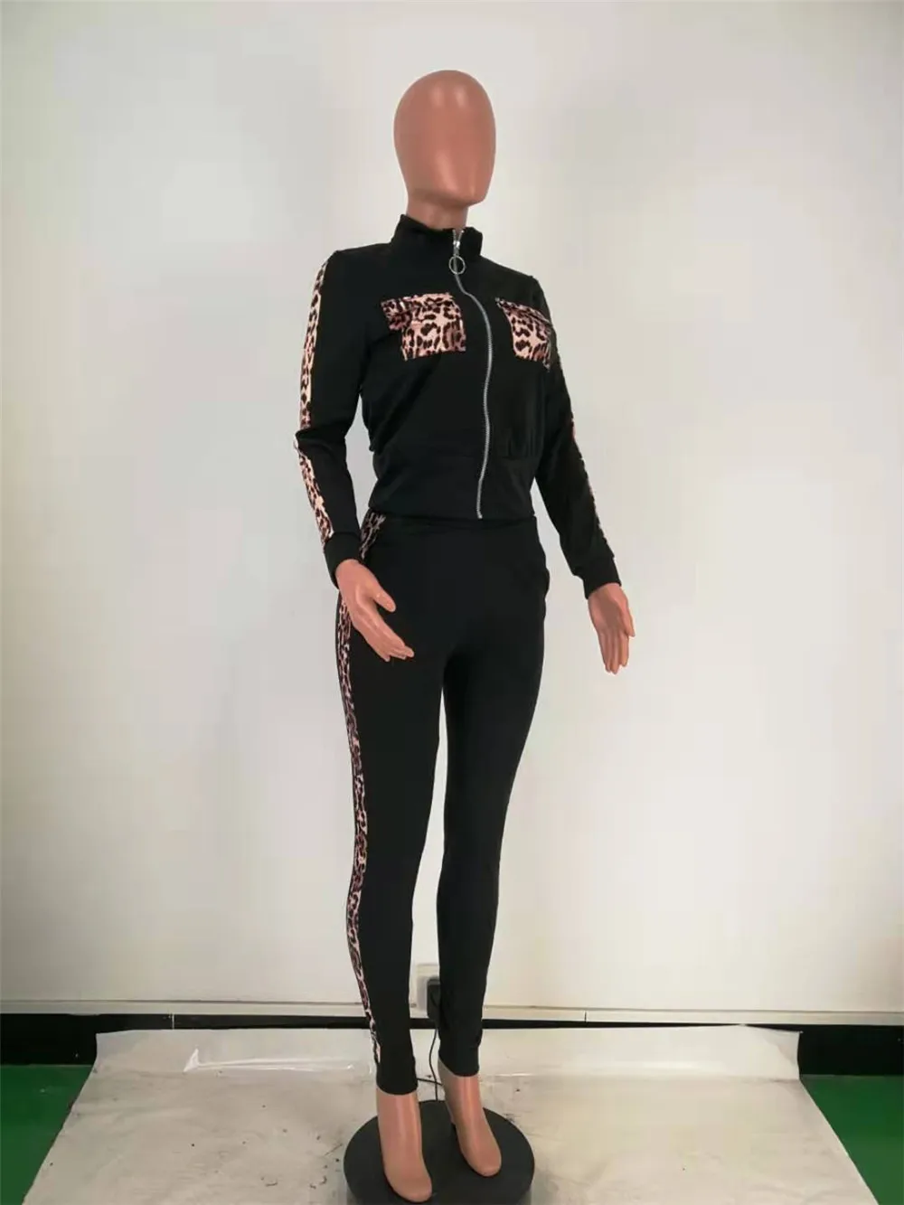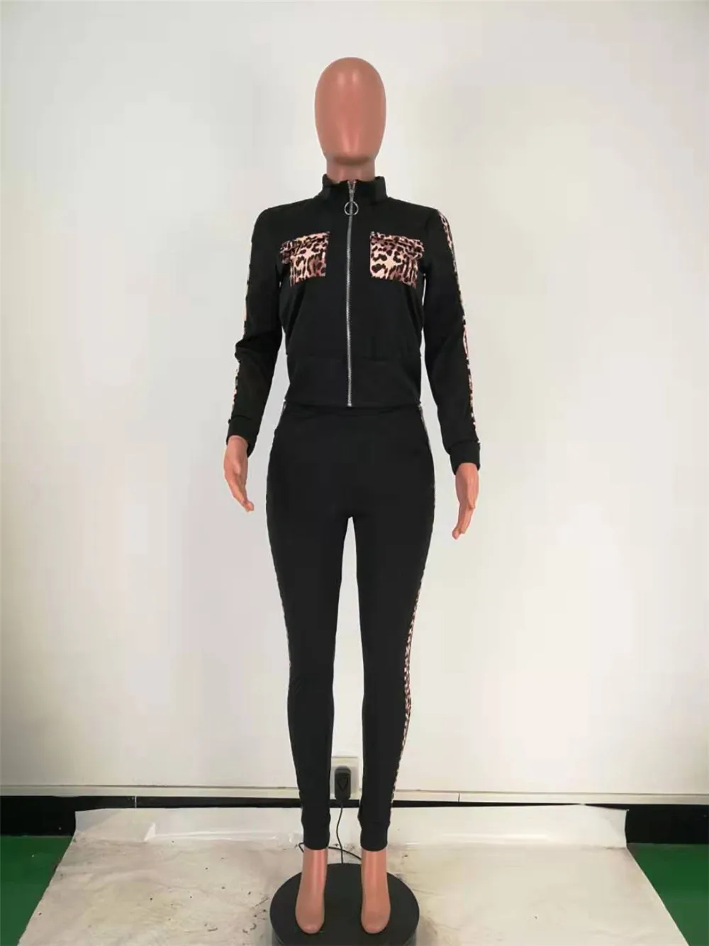 Tracksuit Women Leopard Print Splice Lounge Wear Two Piece Set Top and Pants Sweat Suits Streetwear Jogging Femme Chandal Mujer