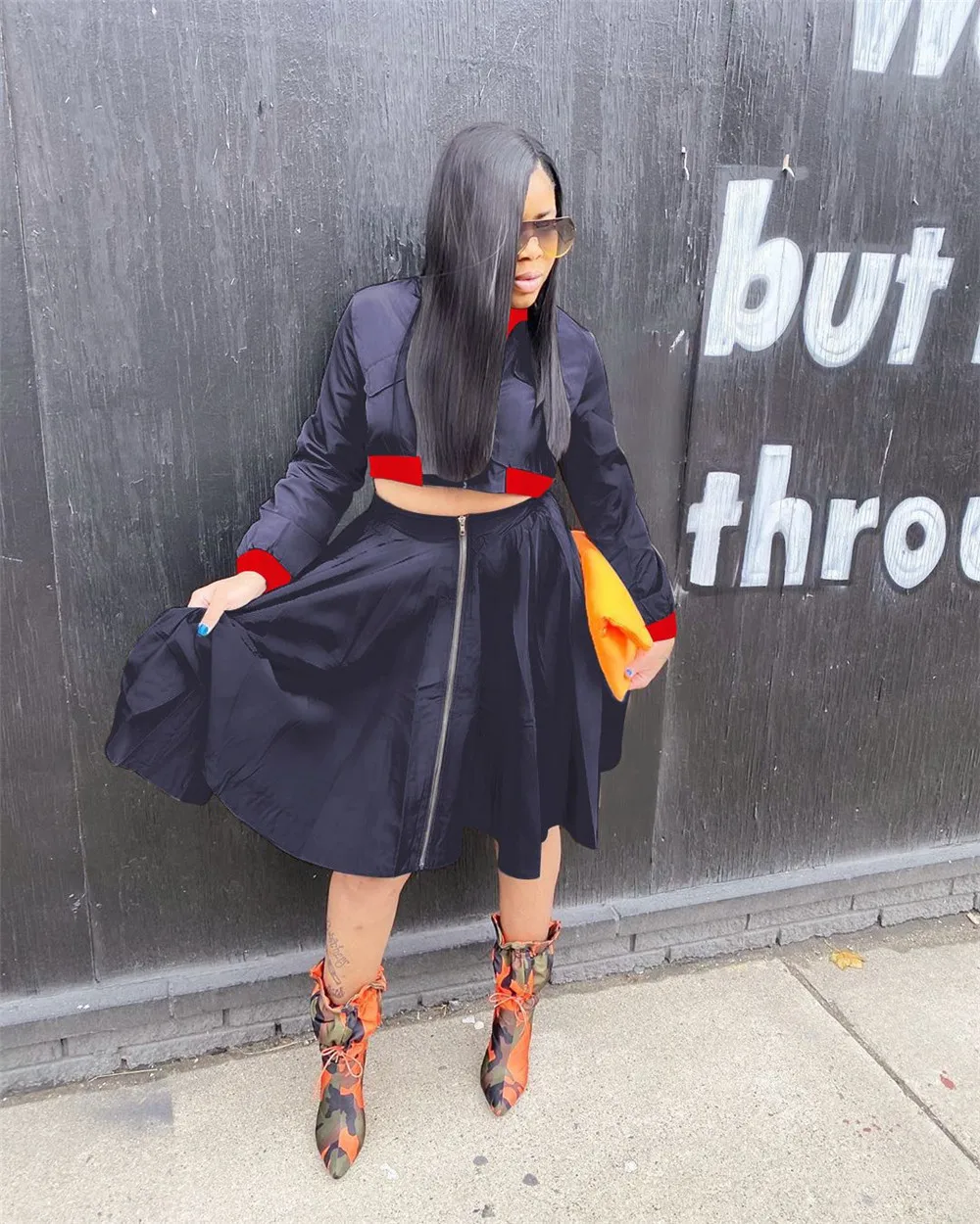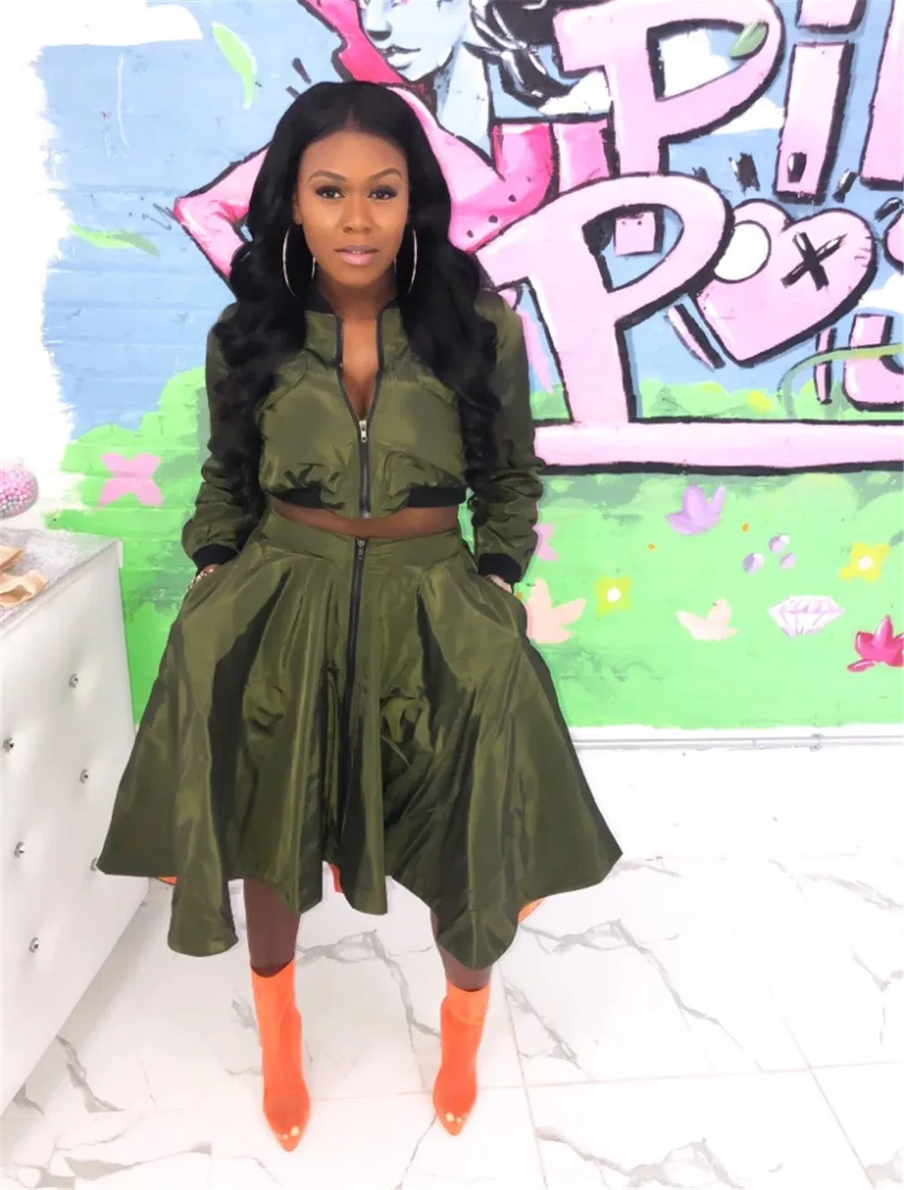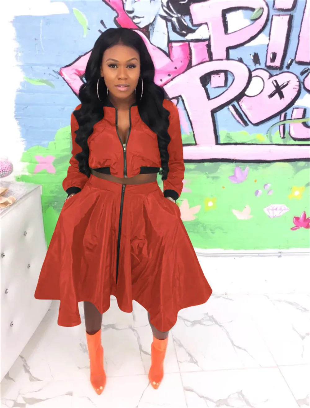 Women Two Piece Outfits A-line Midi Skirt and Jacket Set Autumn Winter Casual 2 Piece Dress Matching Sets Conjunto Feminino