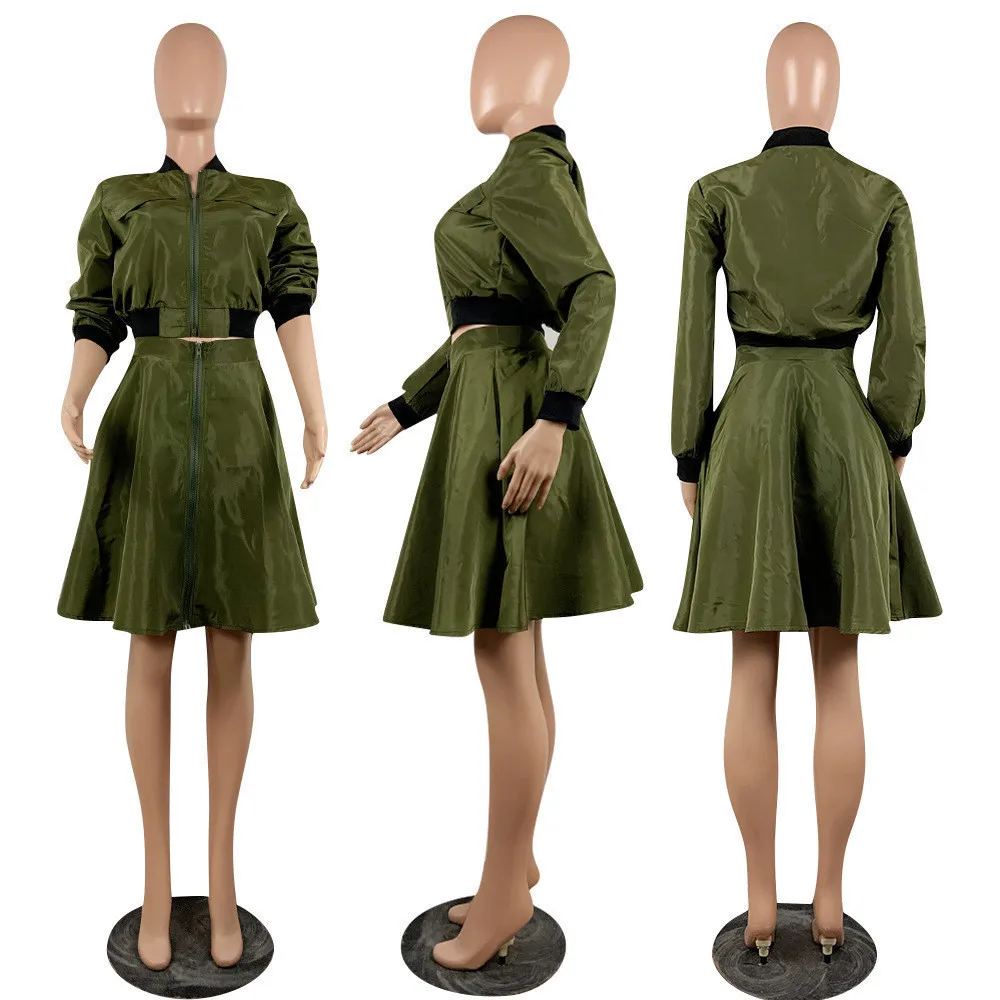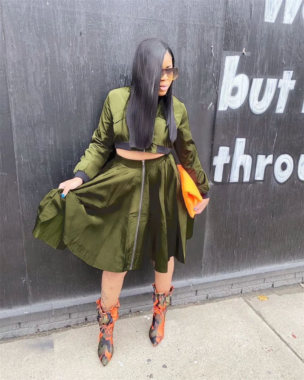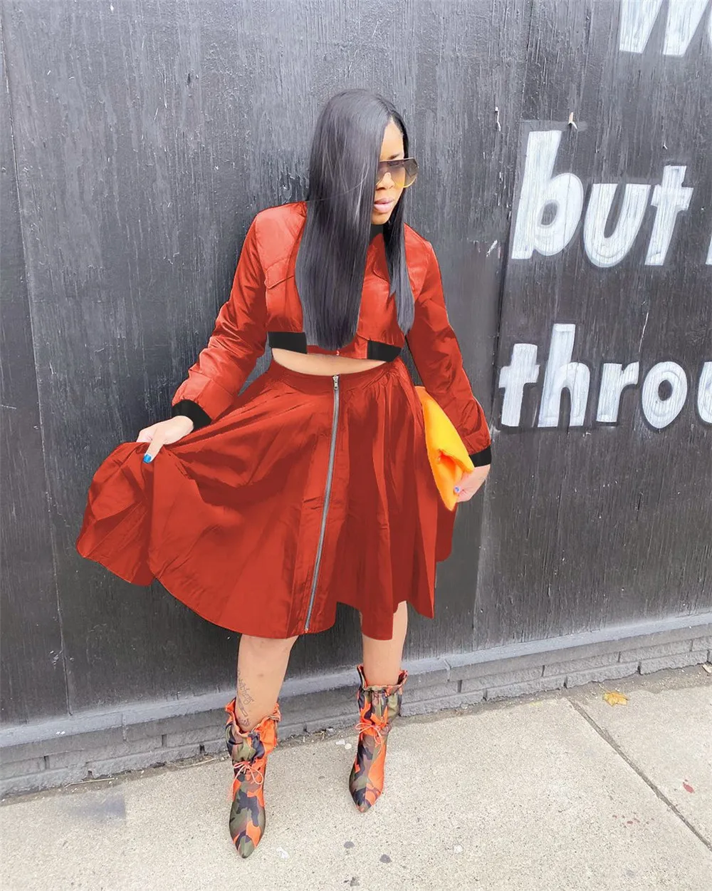 Women Two Piece Outfits A-line Midi Skirt and Jacket Set Autumn Winter Casual 2 Piece Dress Matching Sets Conjunto Feminino
