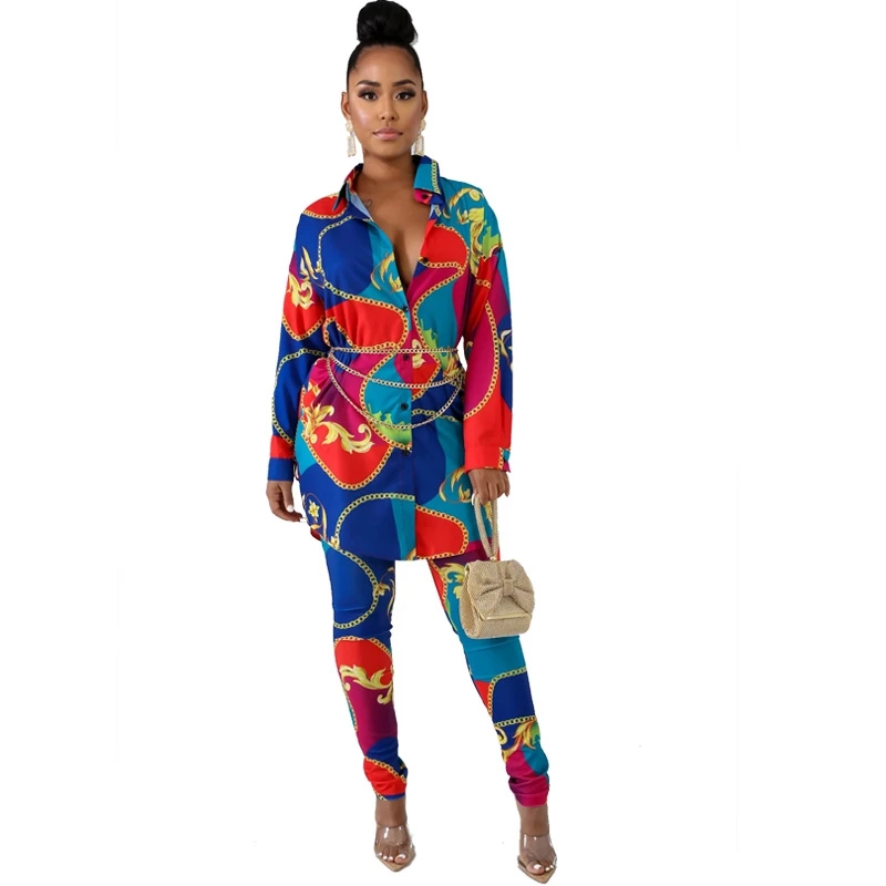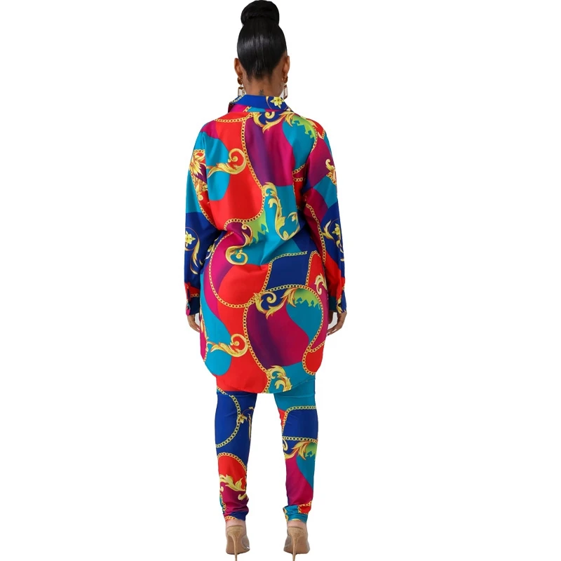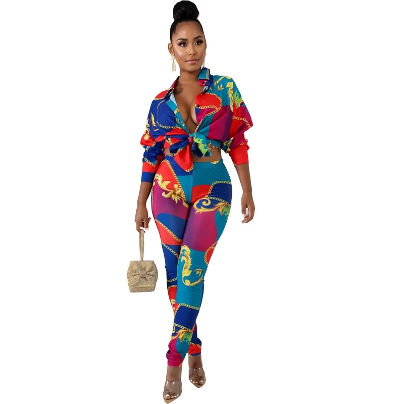 Sexy 2 Piece Set Women Tracksuit Print Long Sleeve Top and Pants Set Leisure Suit Autumn Two Piece Casual Women Set Clothes