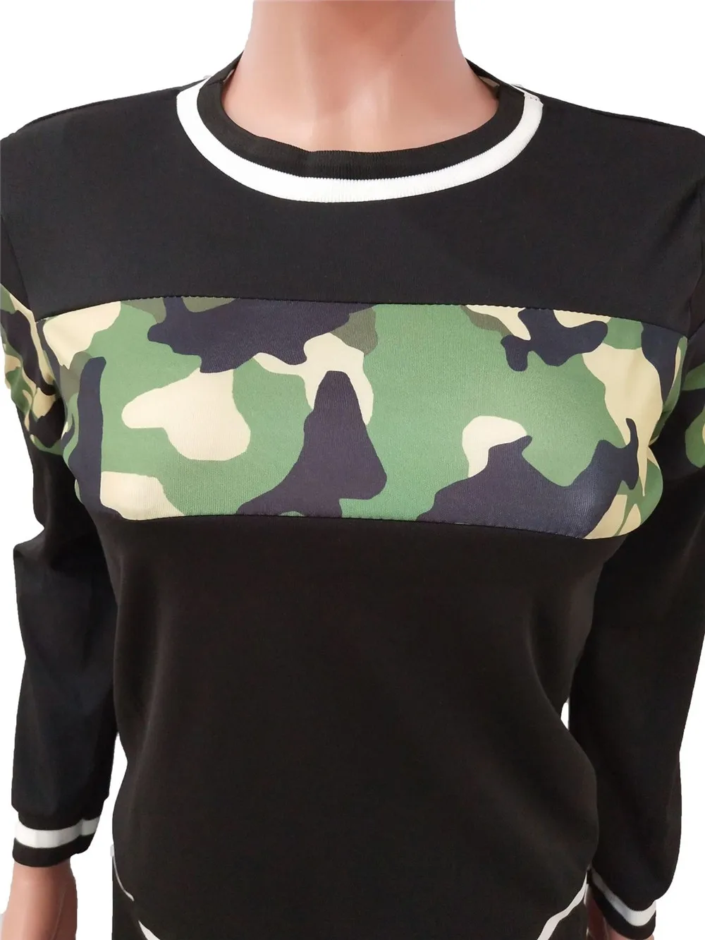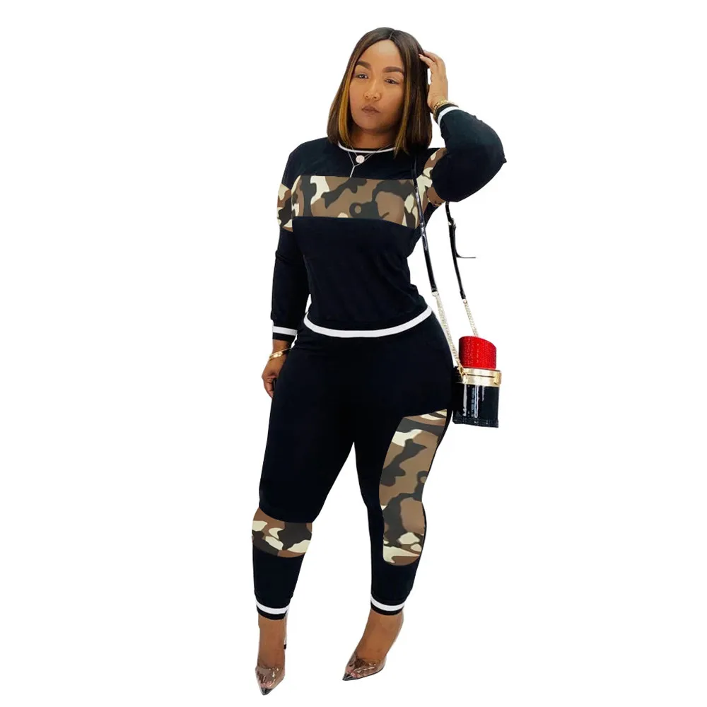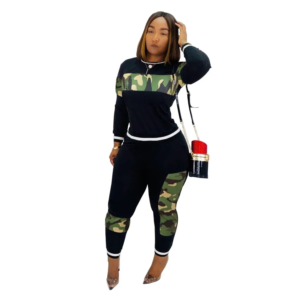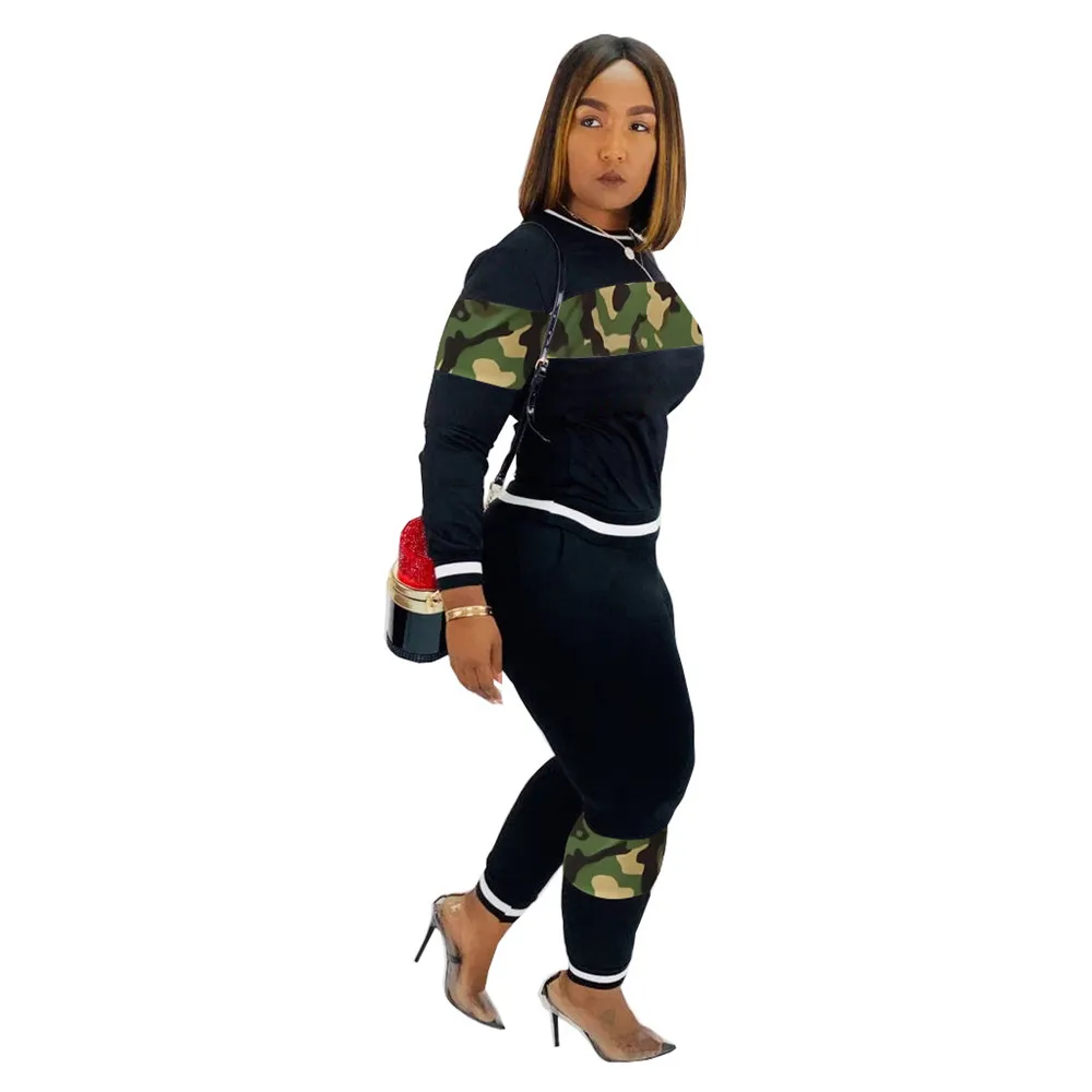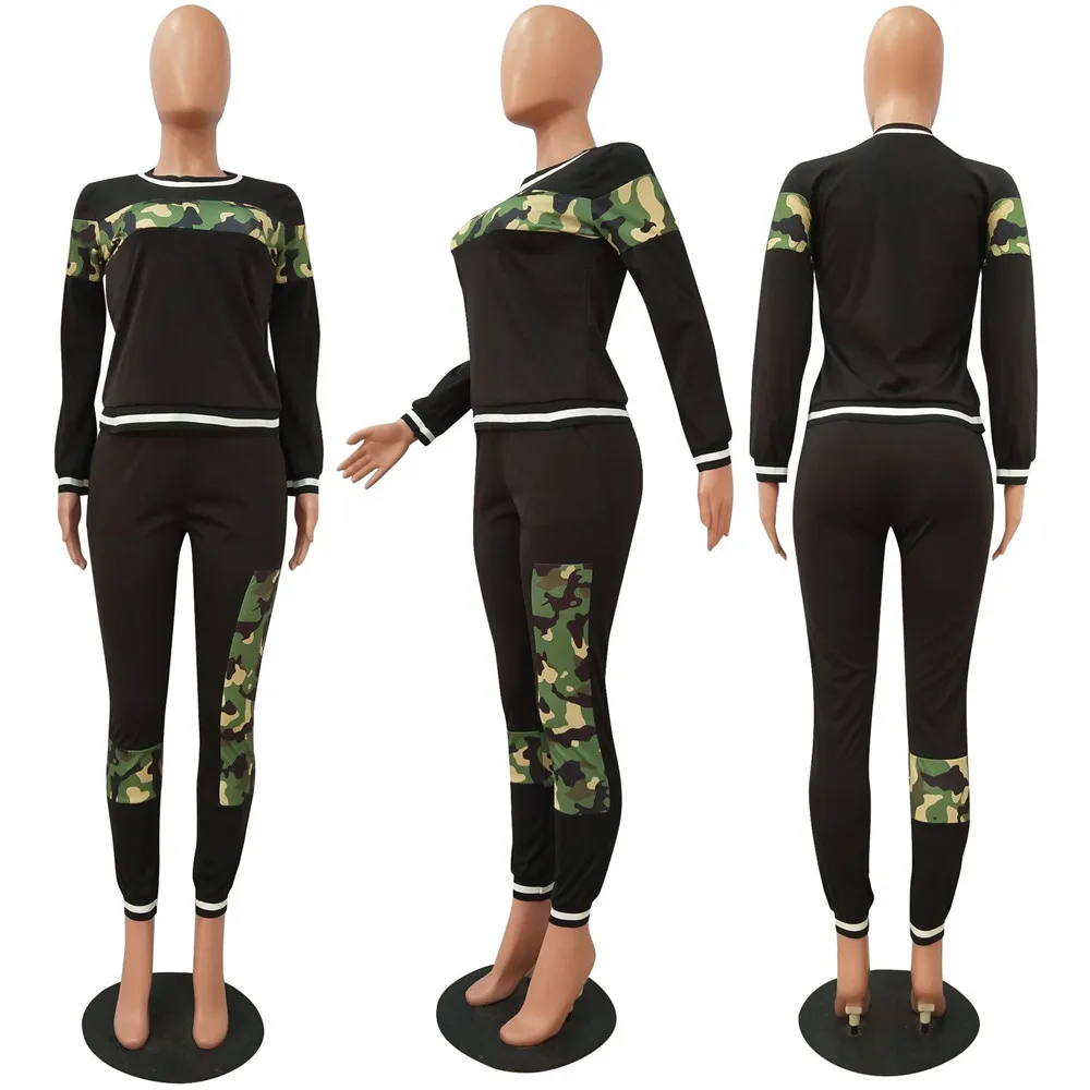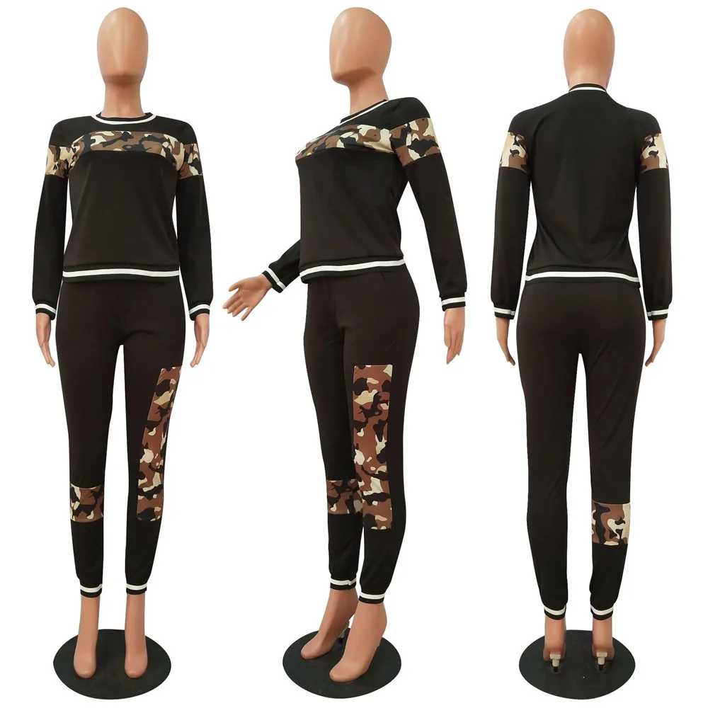 Leopard Camouflage Two Pieces Set Women's Sports Suit Long Sleeve Sweatshirt and Sweatpants Casual Tracksuit Jogging Femme