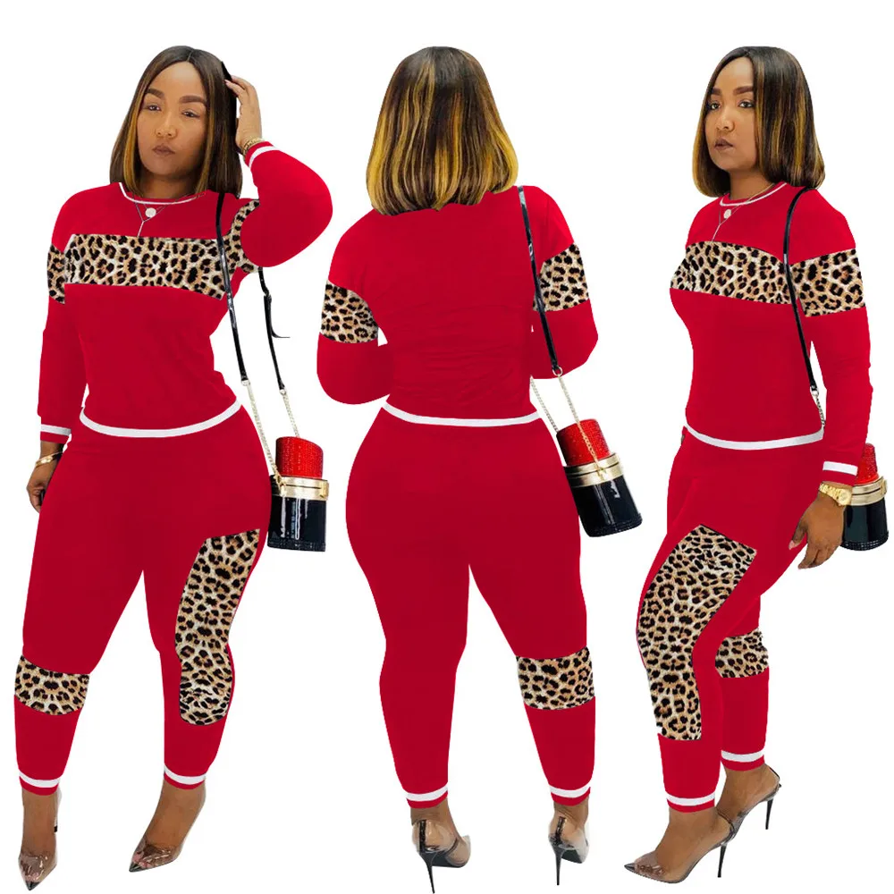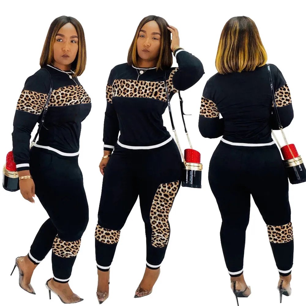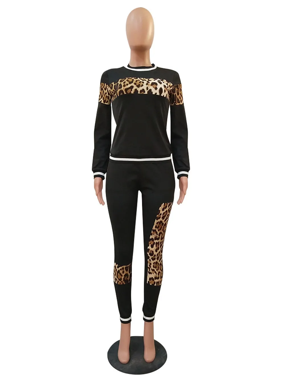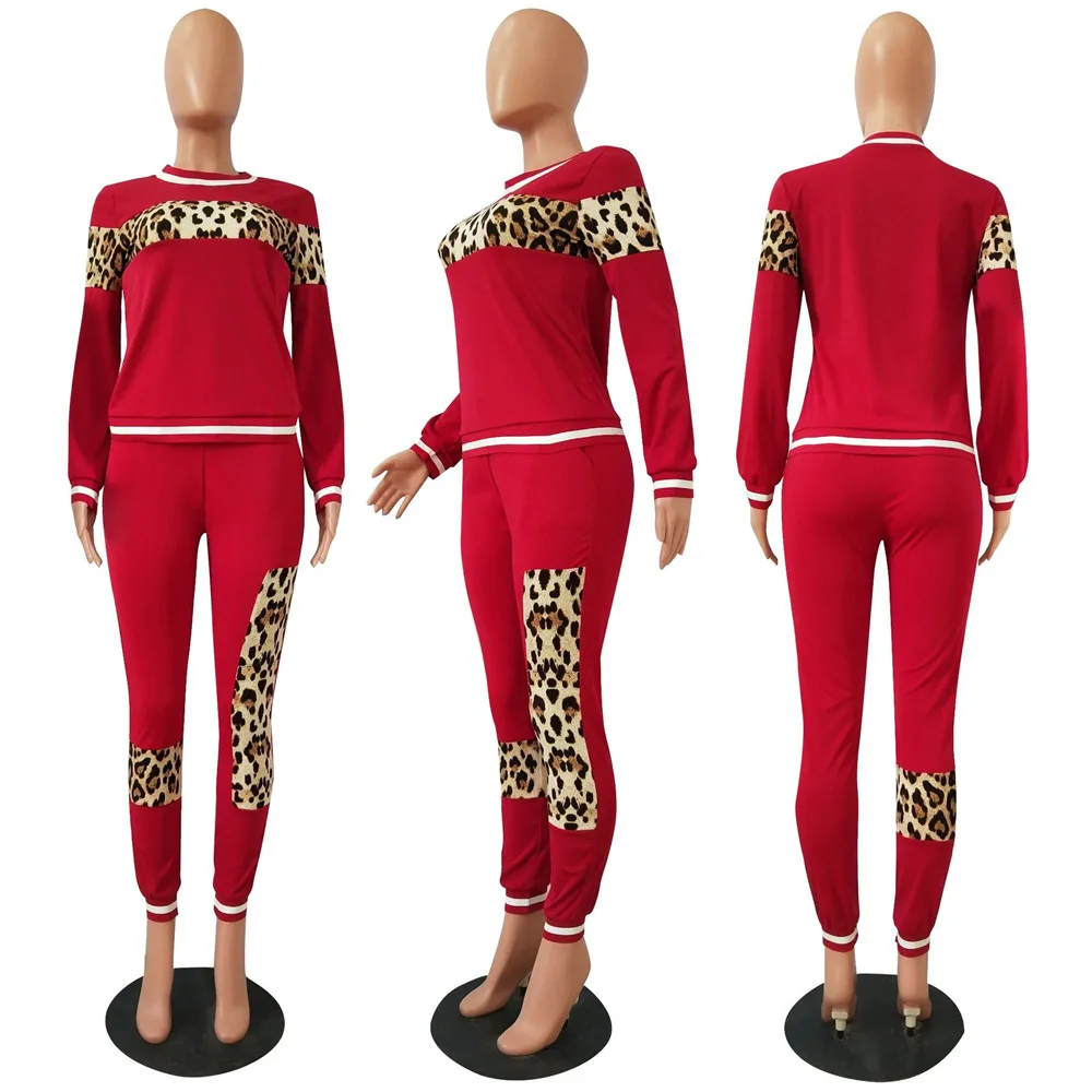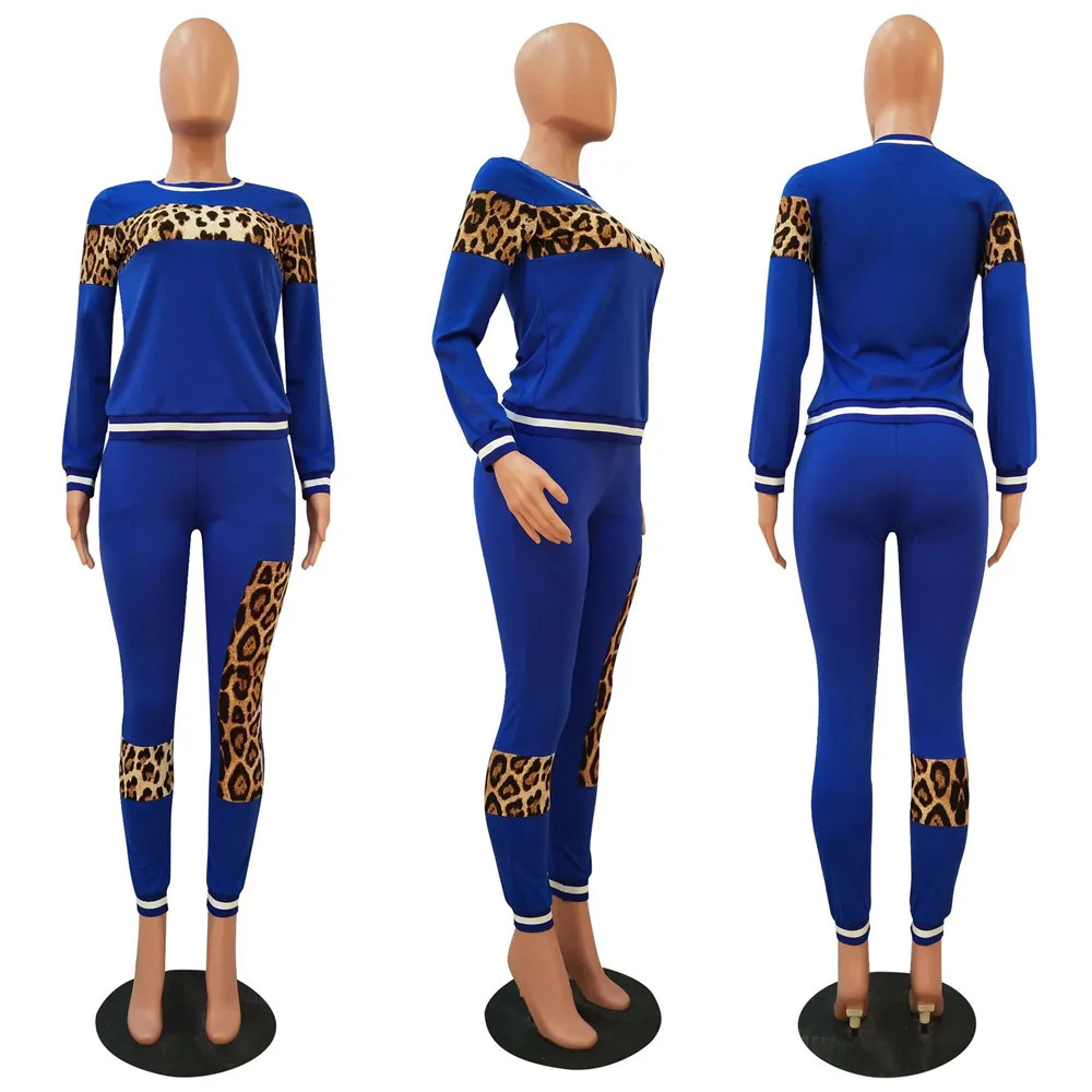 Leopard Camouflage Two Pieces Set Women's Sports Suit Long Sleeve Sweatshirt and Sweatpants Casual Tracksuit Jogging Femme