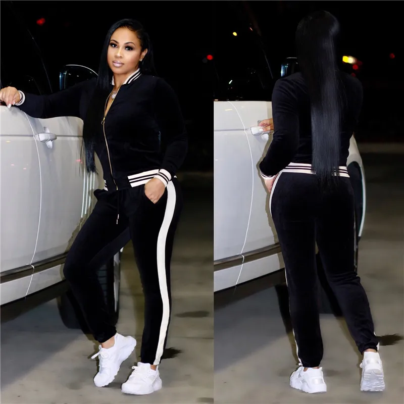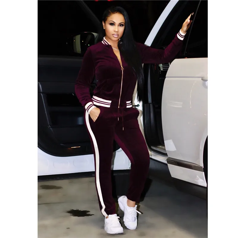 Velvet Tracksuit Women Two Piece Set Zipper Jacket Top and Pants Leisure Suit Sportswear Pink Sweat Suits