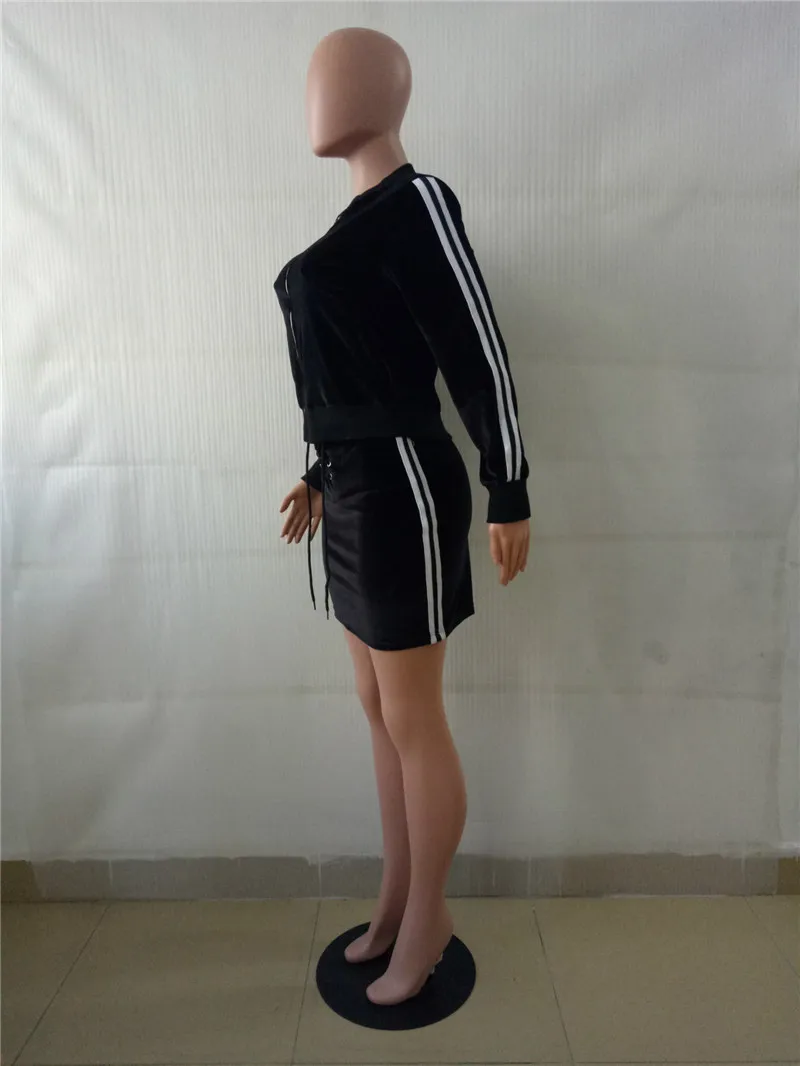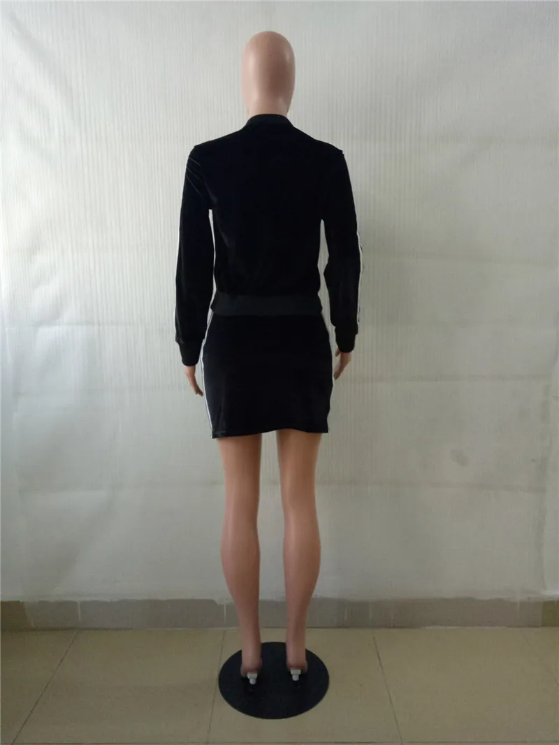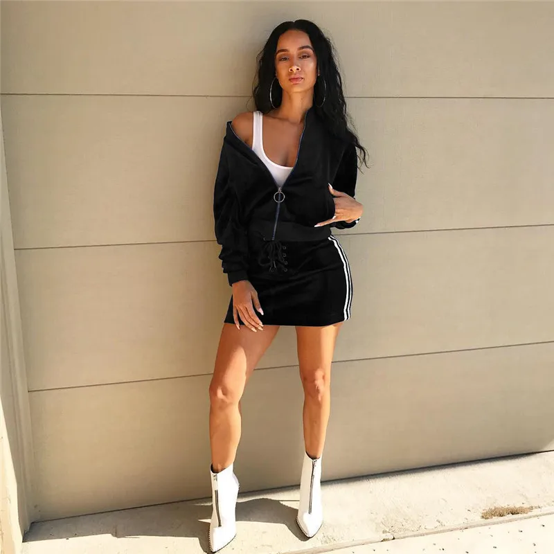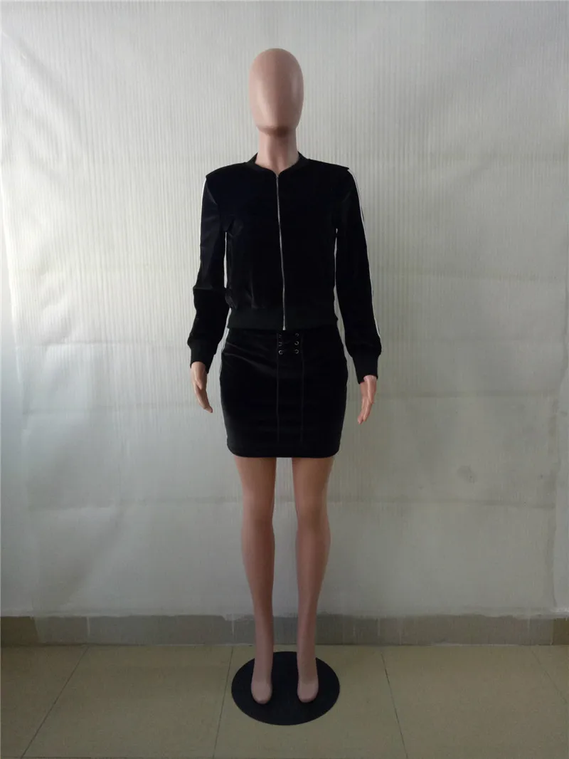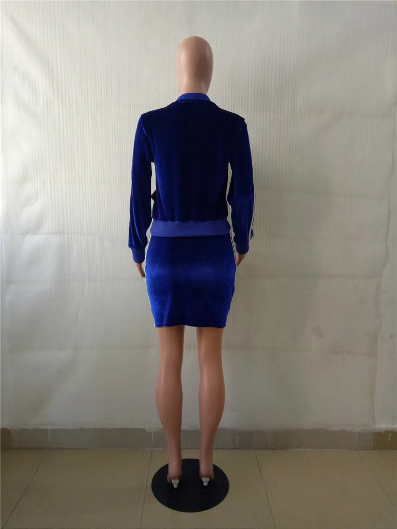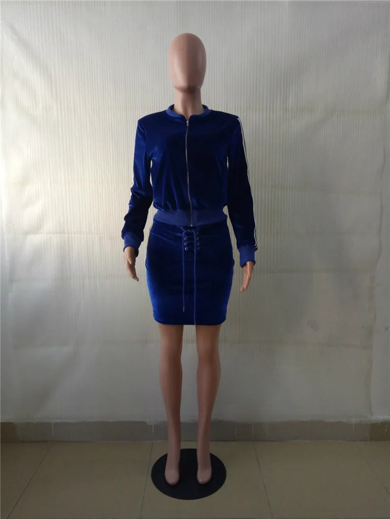 Blue Velvet Tracksuit Women Autumn Winter Two Piece Skirt Set Zipper Jacket Top and Mini Skirt Jogger Sportwear Leisure Suit