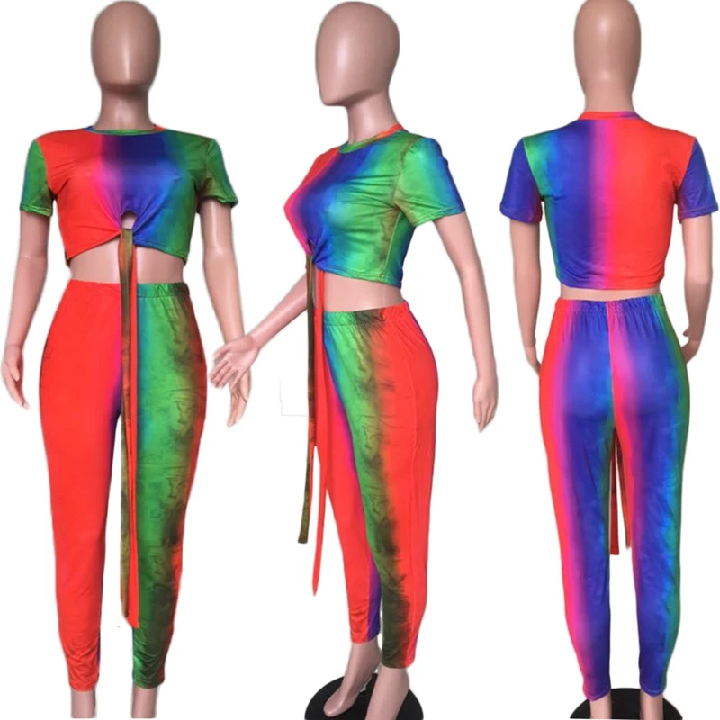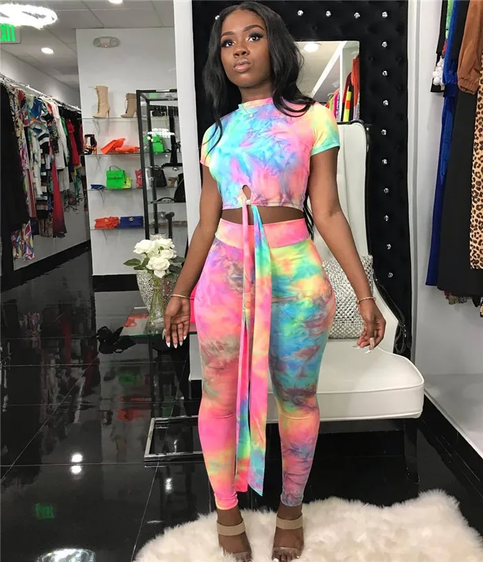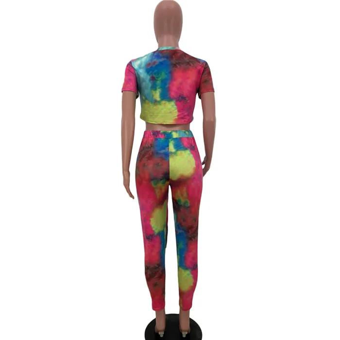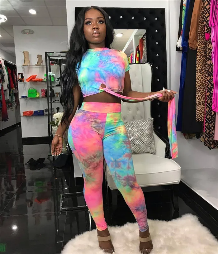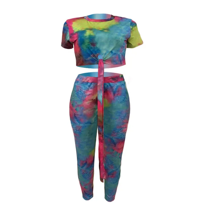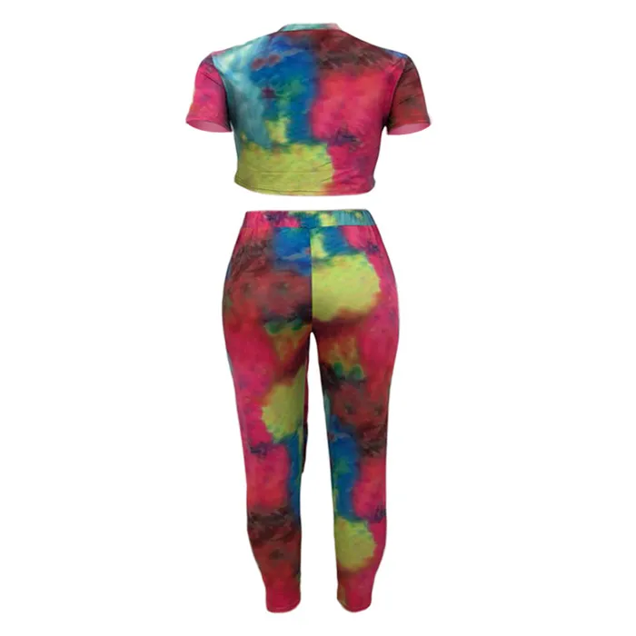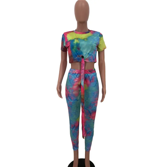 Casual Women Two Piece Set Top and Calf Length Pants Set Summer Tracksuit Sweat Suit Tie Dye Print Women 2 Piece Set Outfits