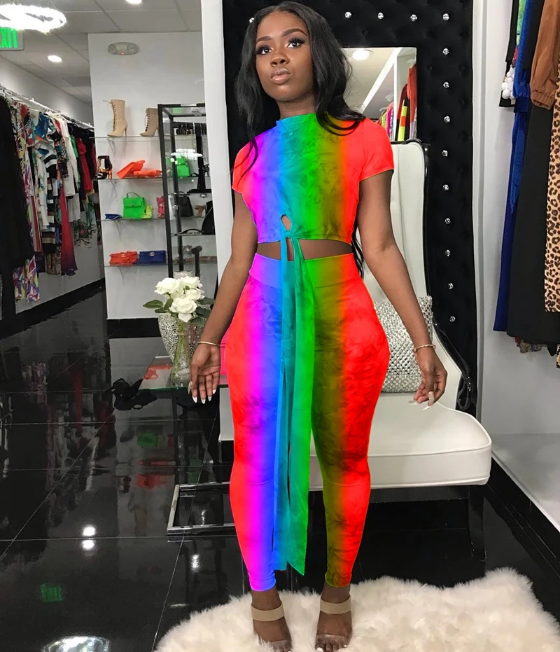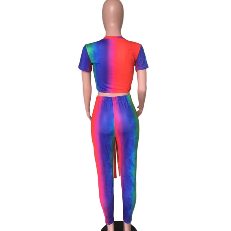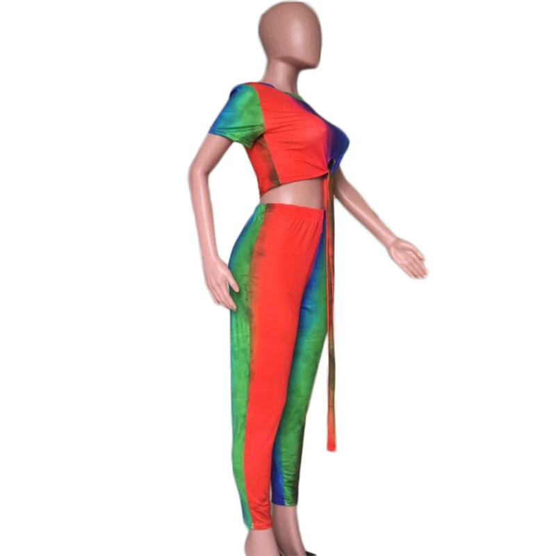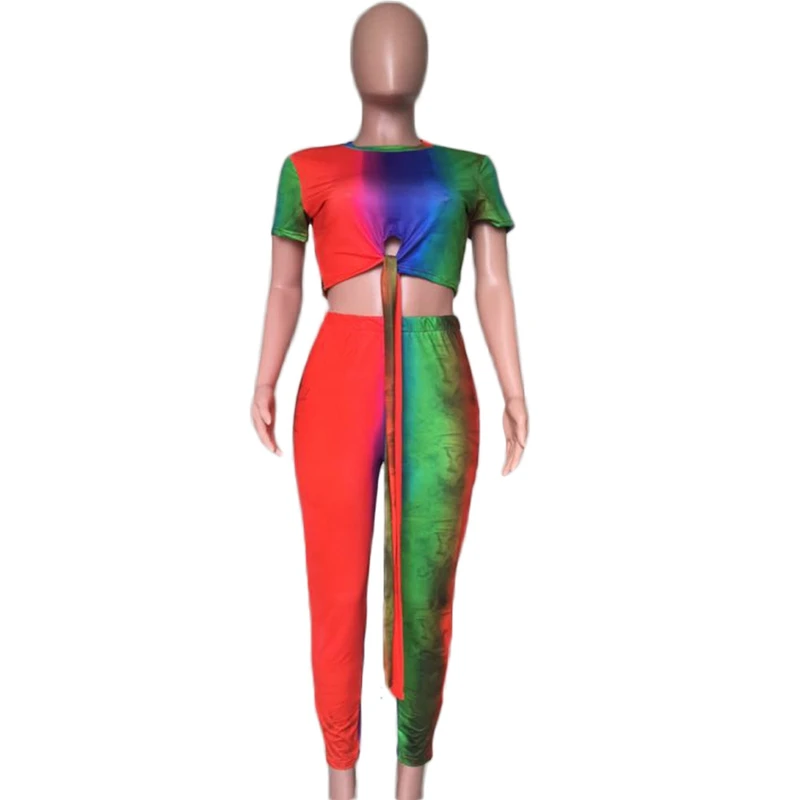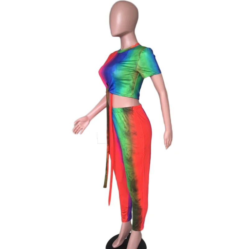 Casual Women Two Piece Set Top and Calf Length Pants Set Summer Tracksuit Sweat Suit Tie Dye Print Women 2 Piece Set Outfits