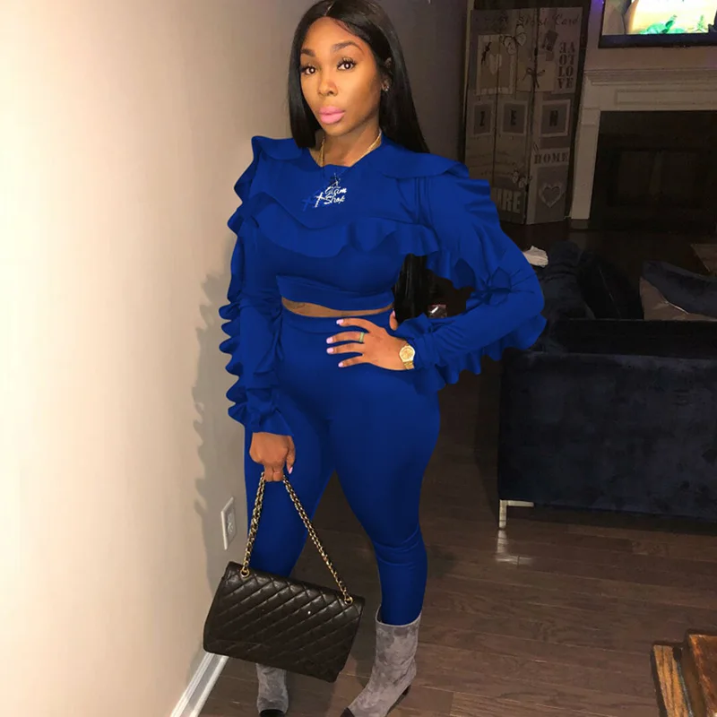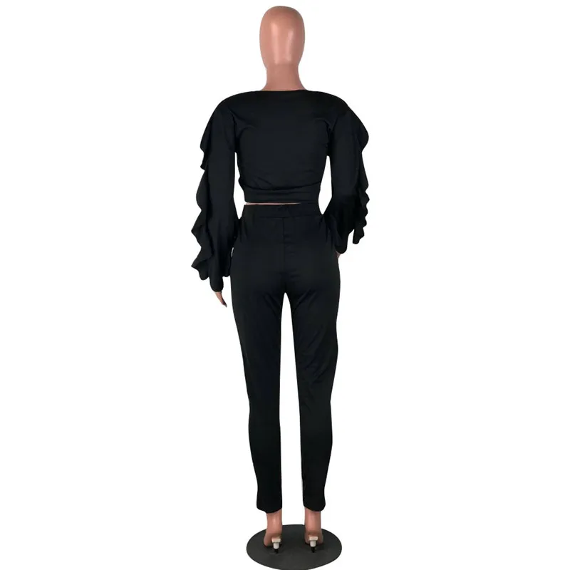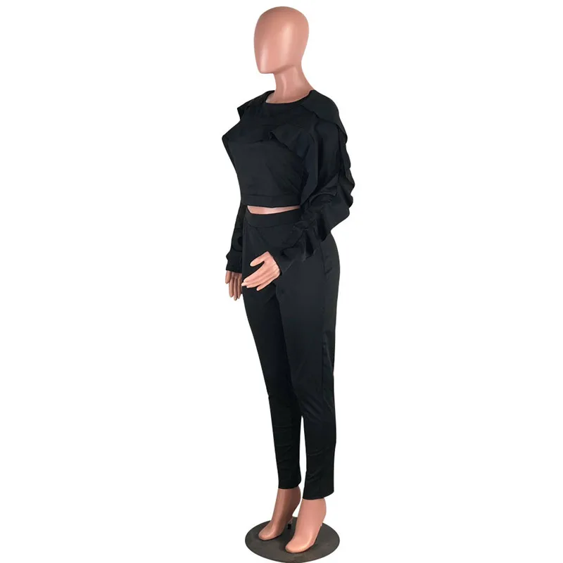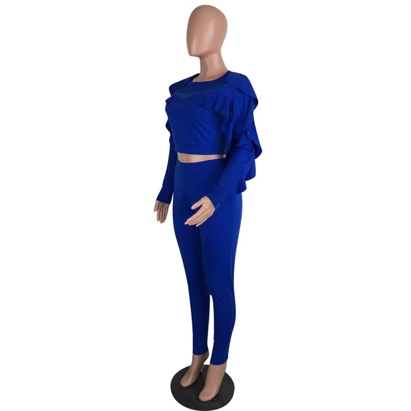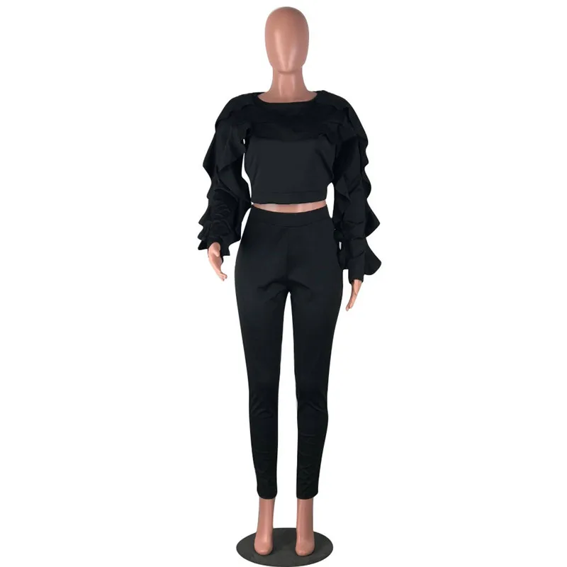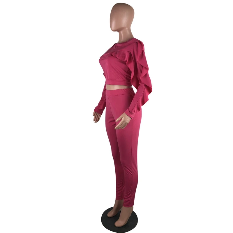 Ladies Autumn Winter Sweat Suits 2 Piece Set Women Long Sleeve Ruffle Crop Top and Pencil Pants Casual Tracksuit Two Piece Sets