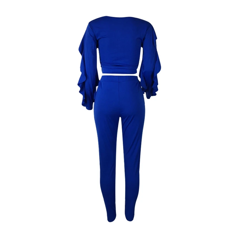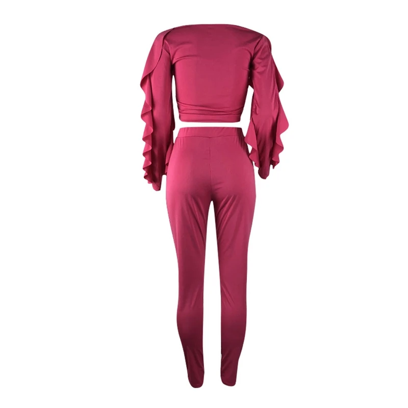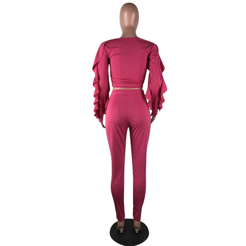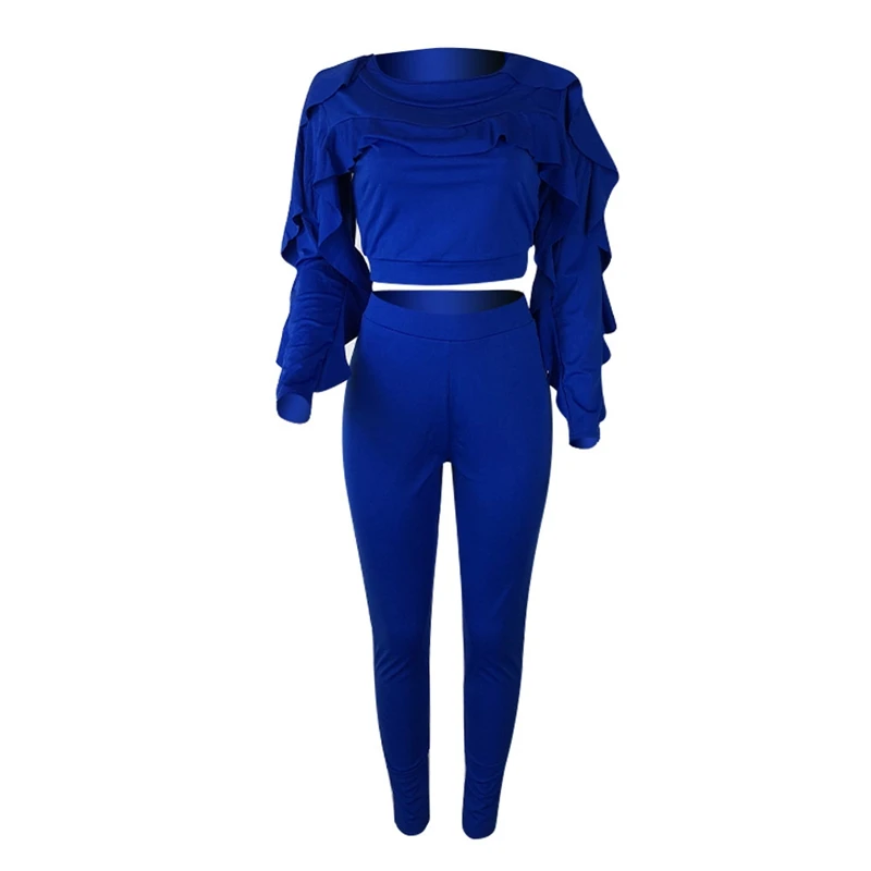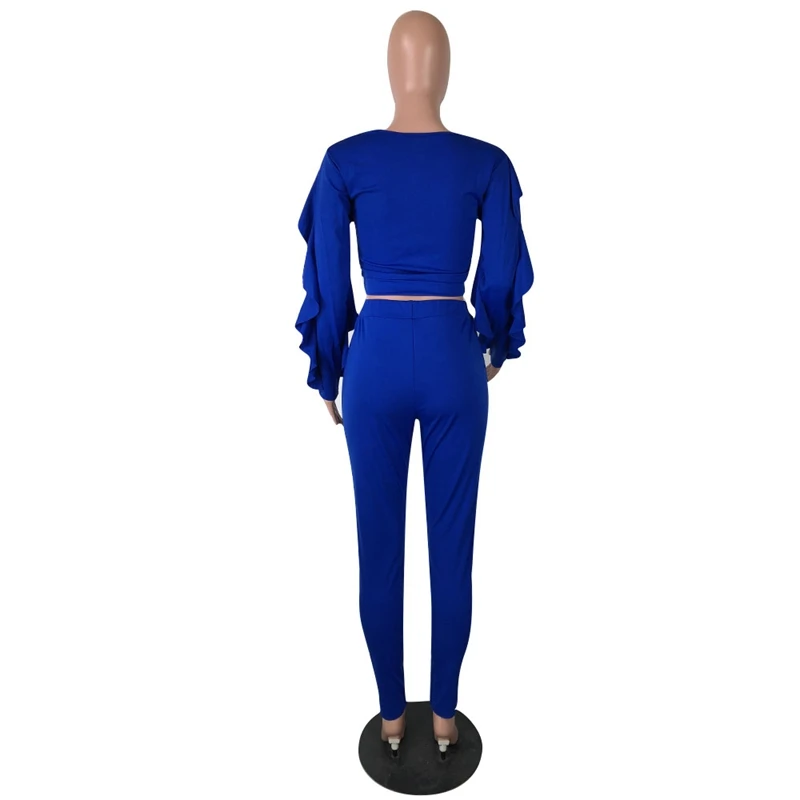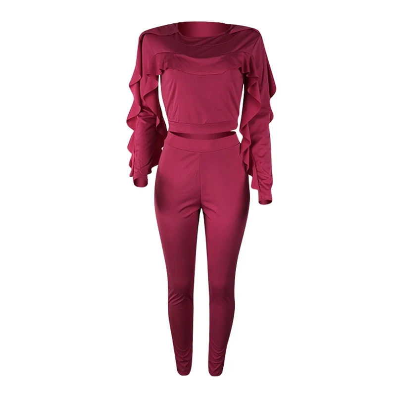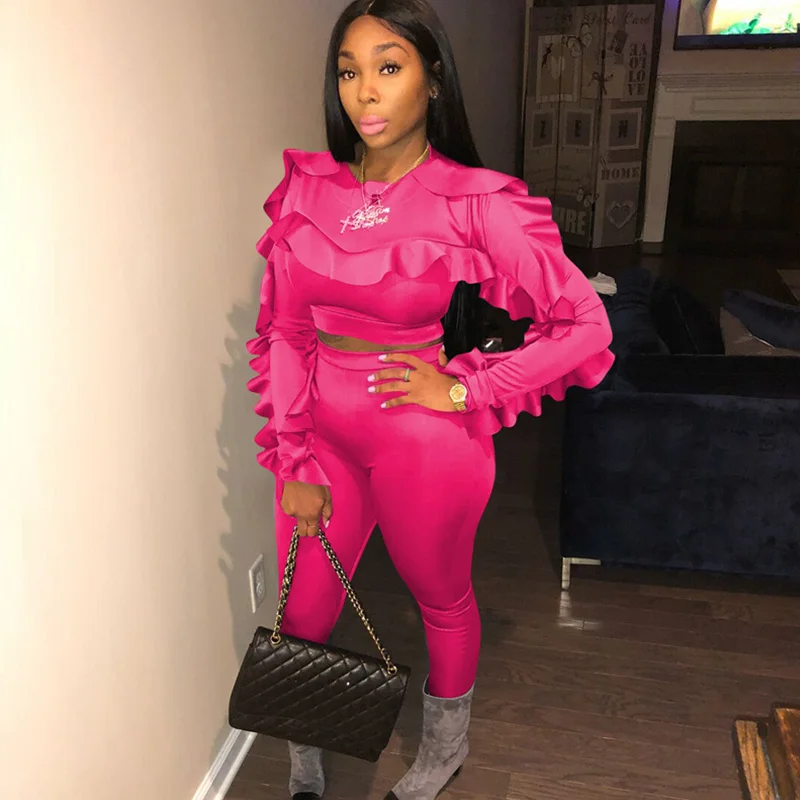 Ladies Autumn Winter Sweat Suits 2 Piece Set Women Long Sleeve Ruffle Crop Top and Pencil Pants Casual Tracksuit Two Piece Sets