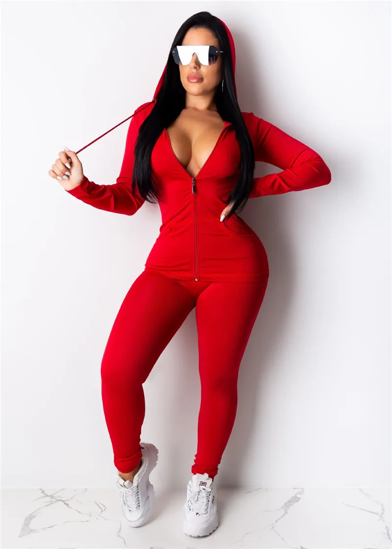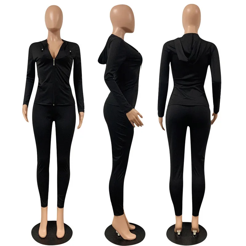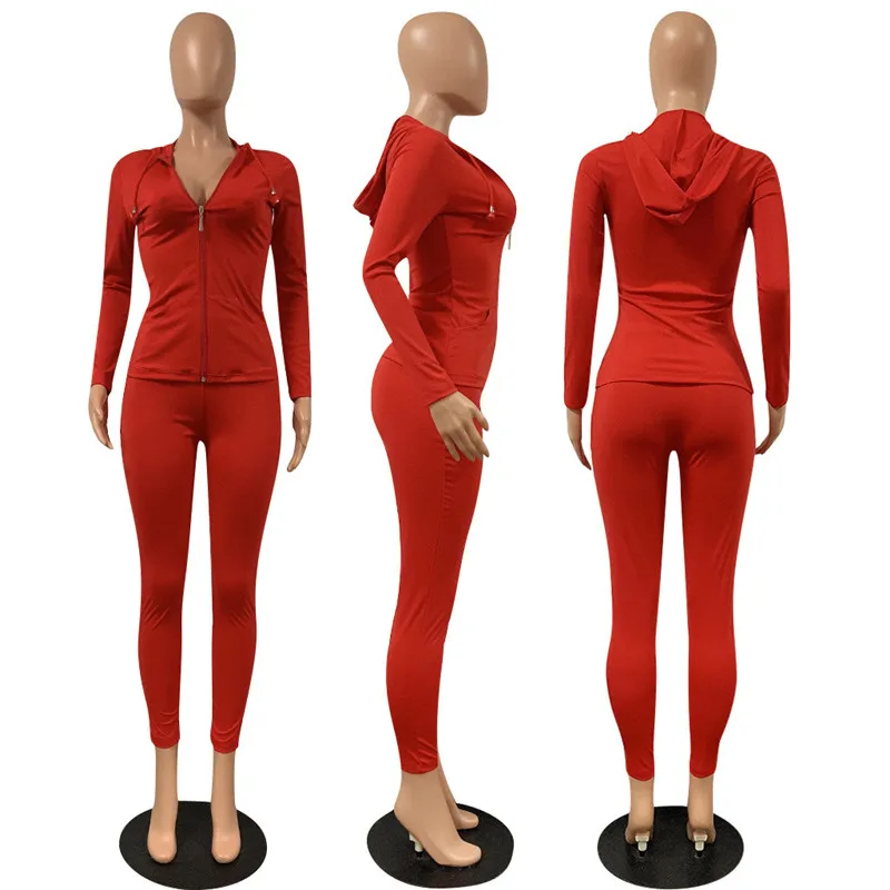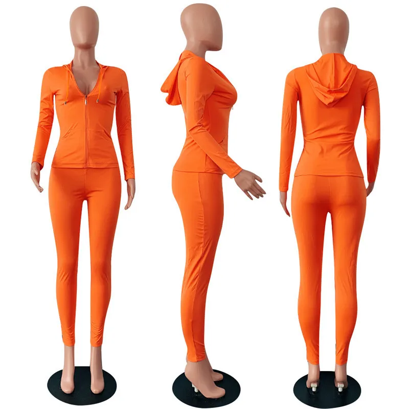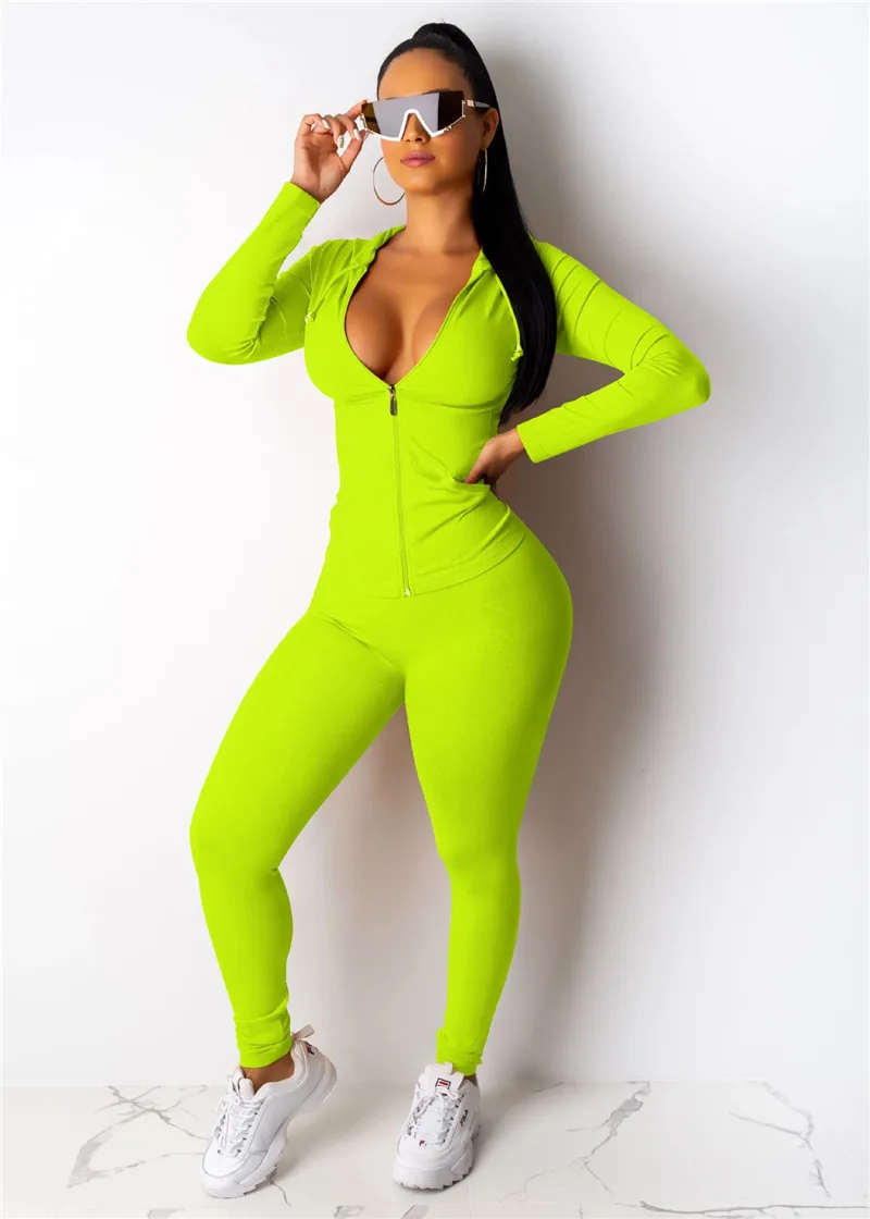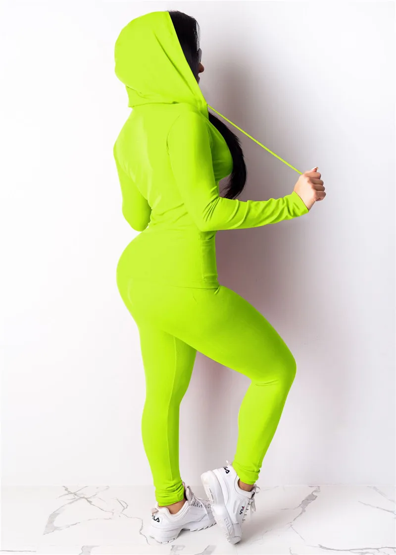 Neon Green Orange Women Two Piece Sets Long Sleeve Zipper Hooded Sweatshirt Tops and Tight Pants Female Jogger Casual Sweatsuit