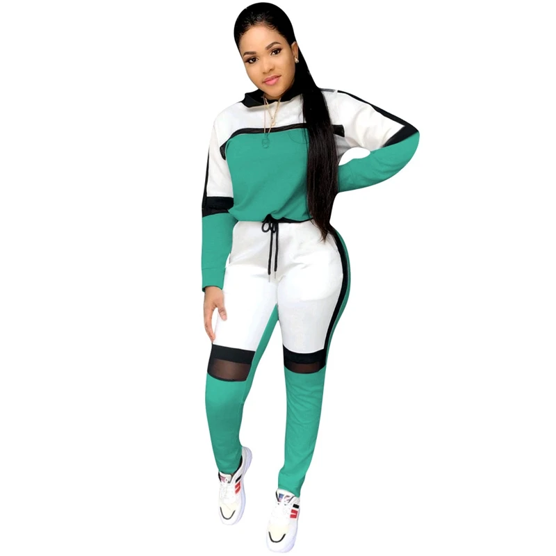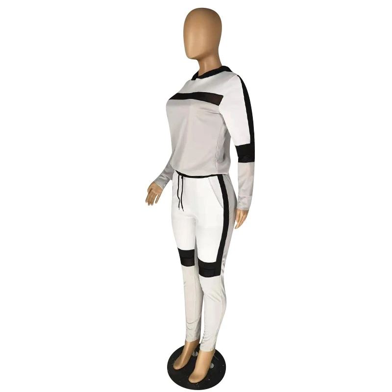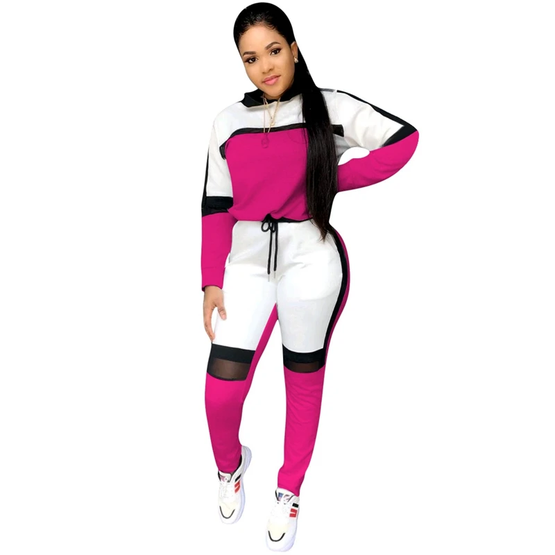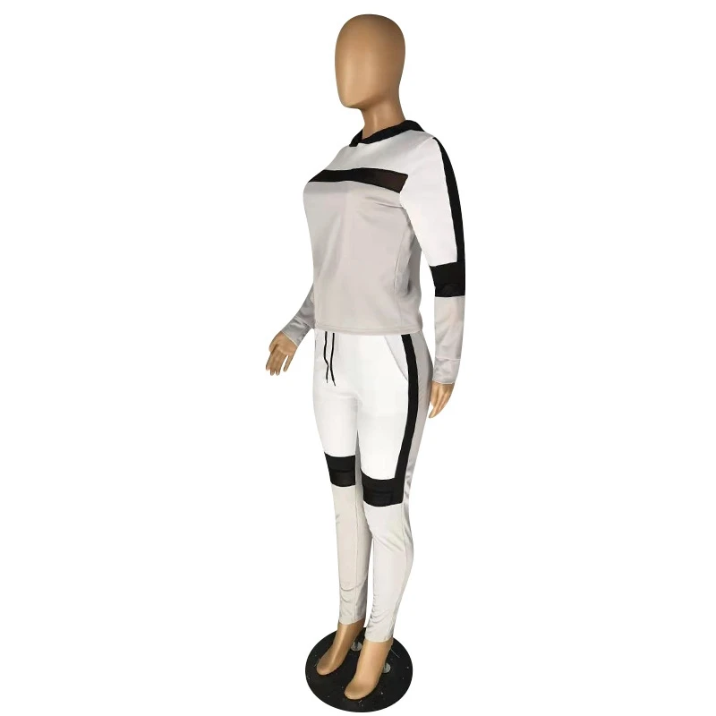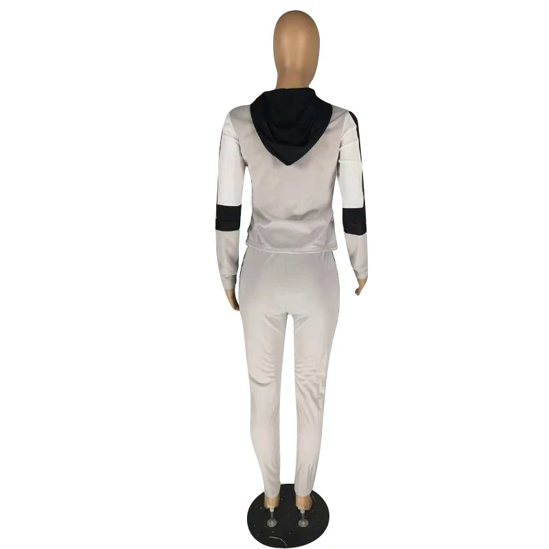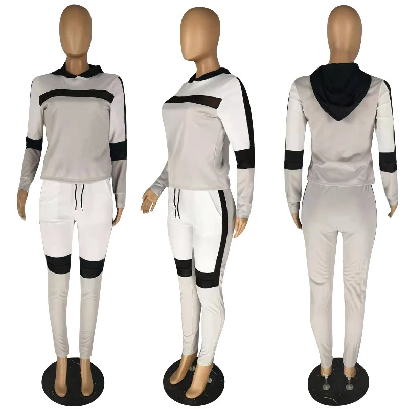 Patchwork Grey Casual Two Piece Set Tracksuit Women Hooded Crop Top and Pants Set Sweat Suit Women 2 Piece Tracksuit Sets