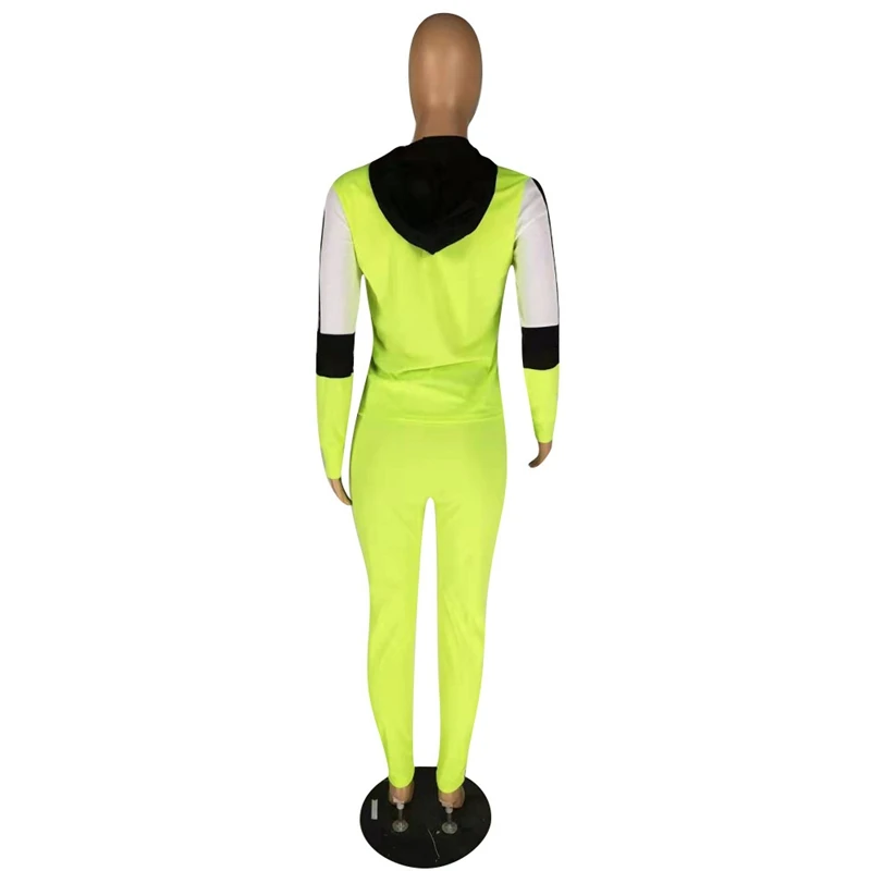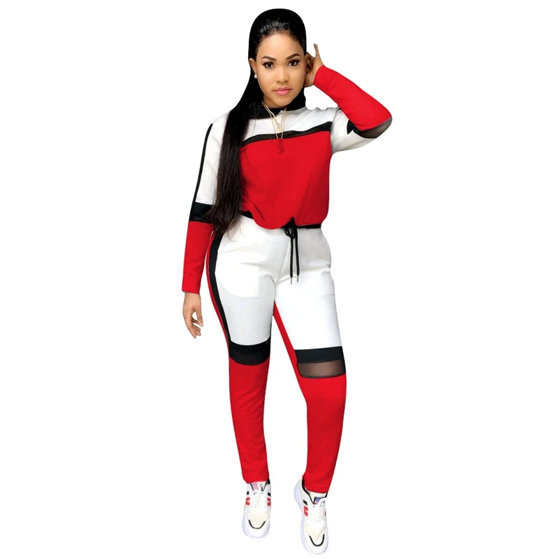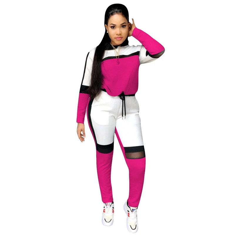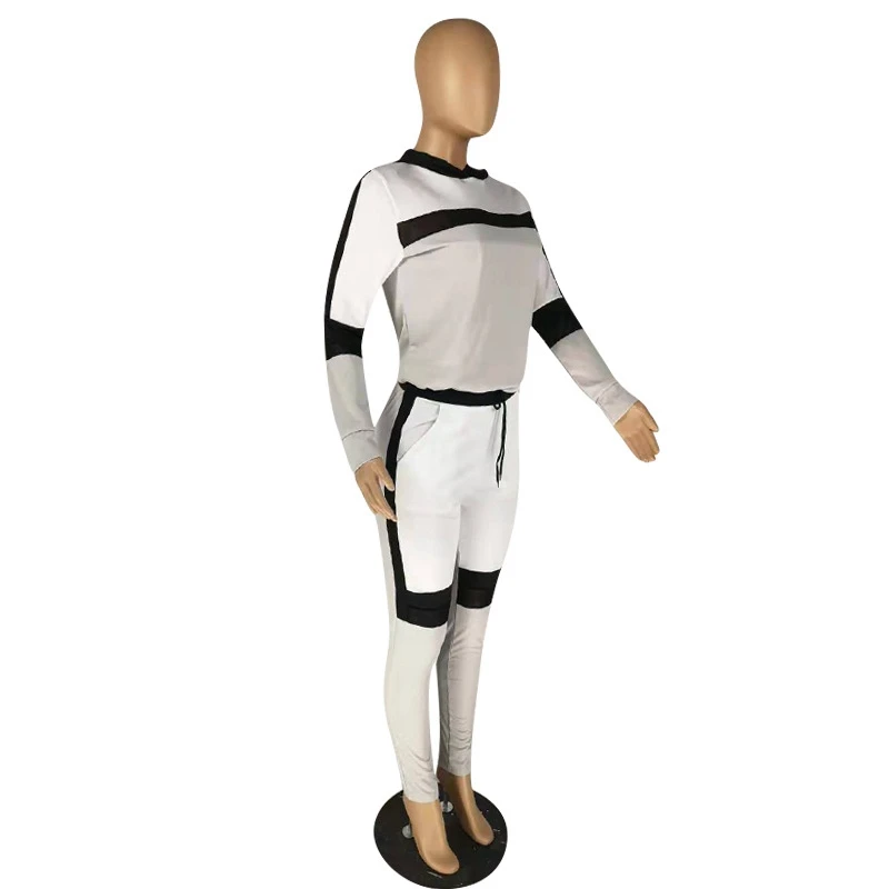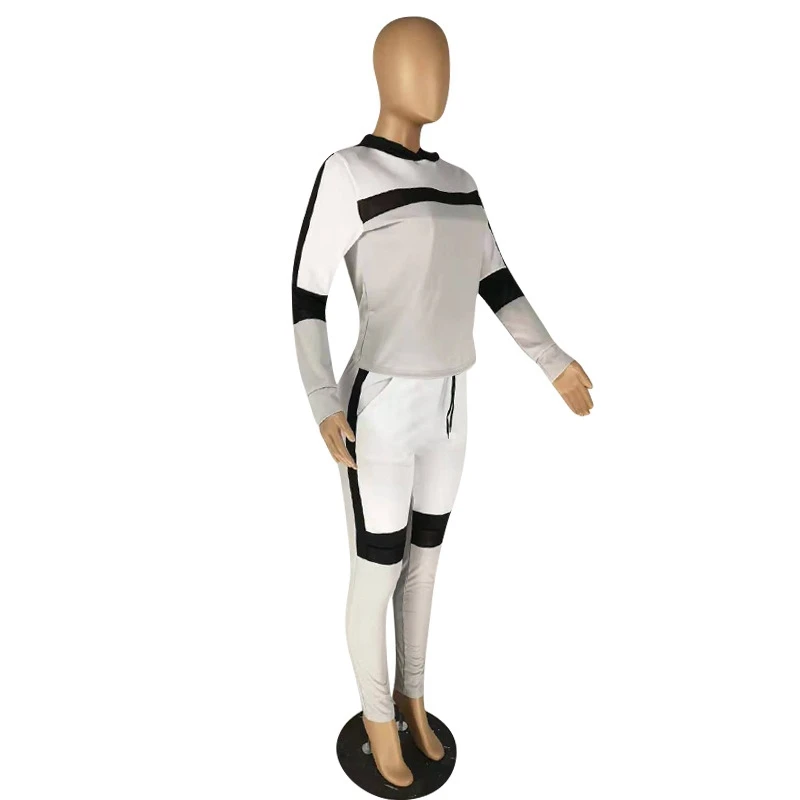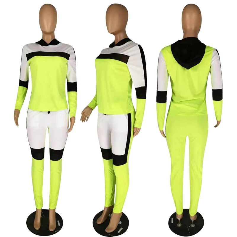 Patchwork Grey Casual Two Piece Set Tracksuit Women Hooded Crop Top and Pants Set Sweat Suit Women 2 Piece Tracksuit Sets