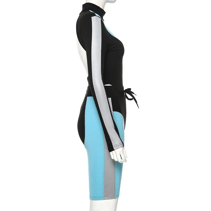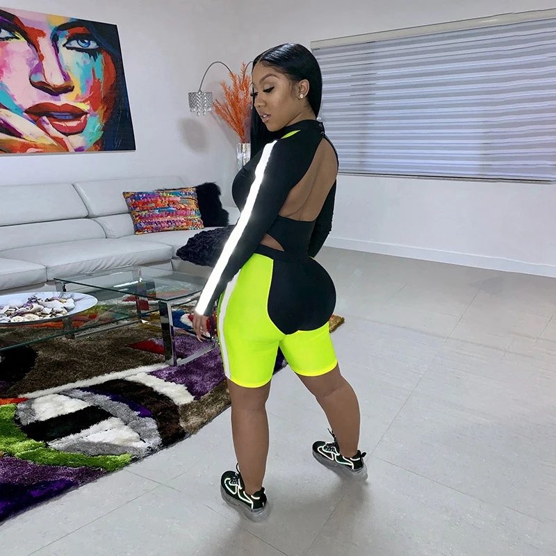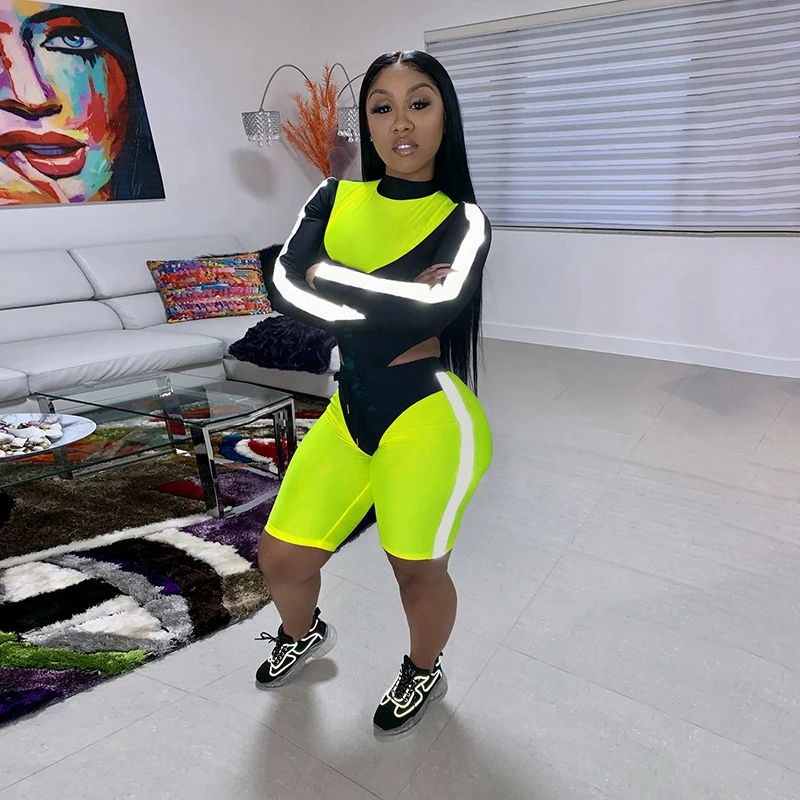 Reflective Tracksuit Women Casual Two Piece Set Shorts Sport Suit Bodysuit Top Biker Shorts Set Bodycon 2 Piece Matching Set
